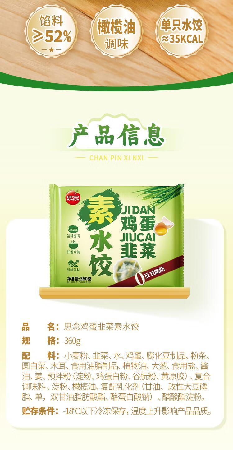 思念360g素水饺韭菜鸡蛋粉条素三鲜速冻水饺早餐方便速食饺子京东冷链 360g韭菜鸡蛋水饺*3+素三鲜*3