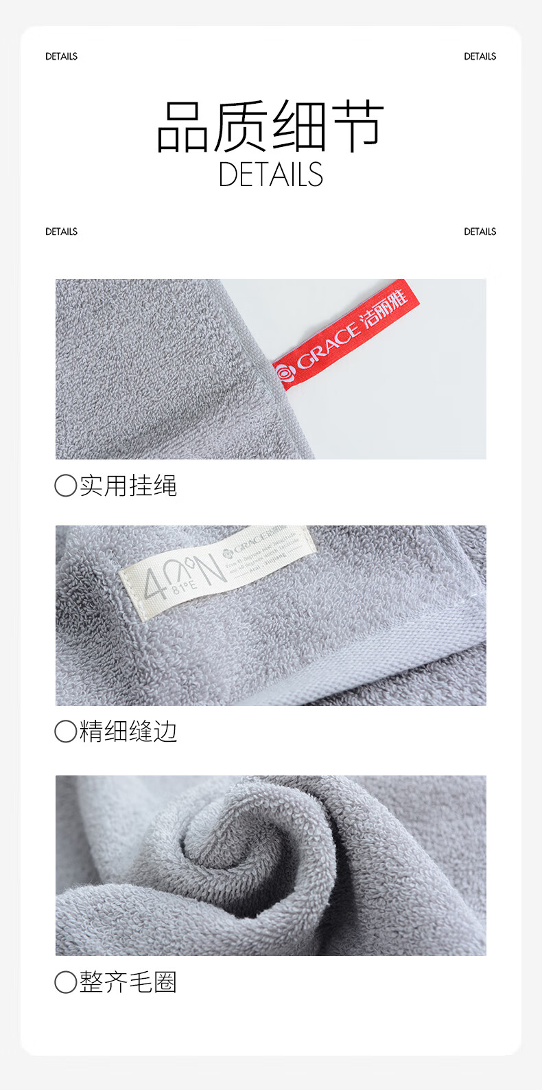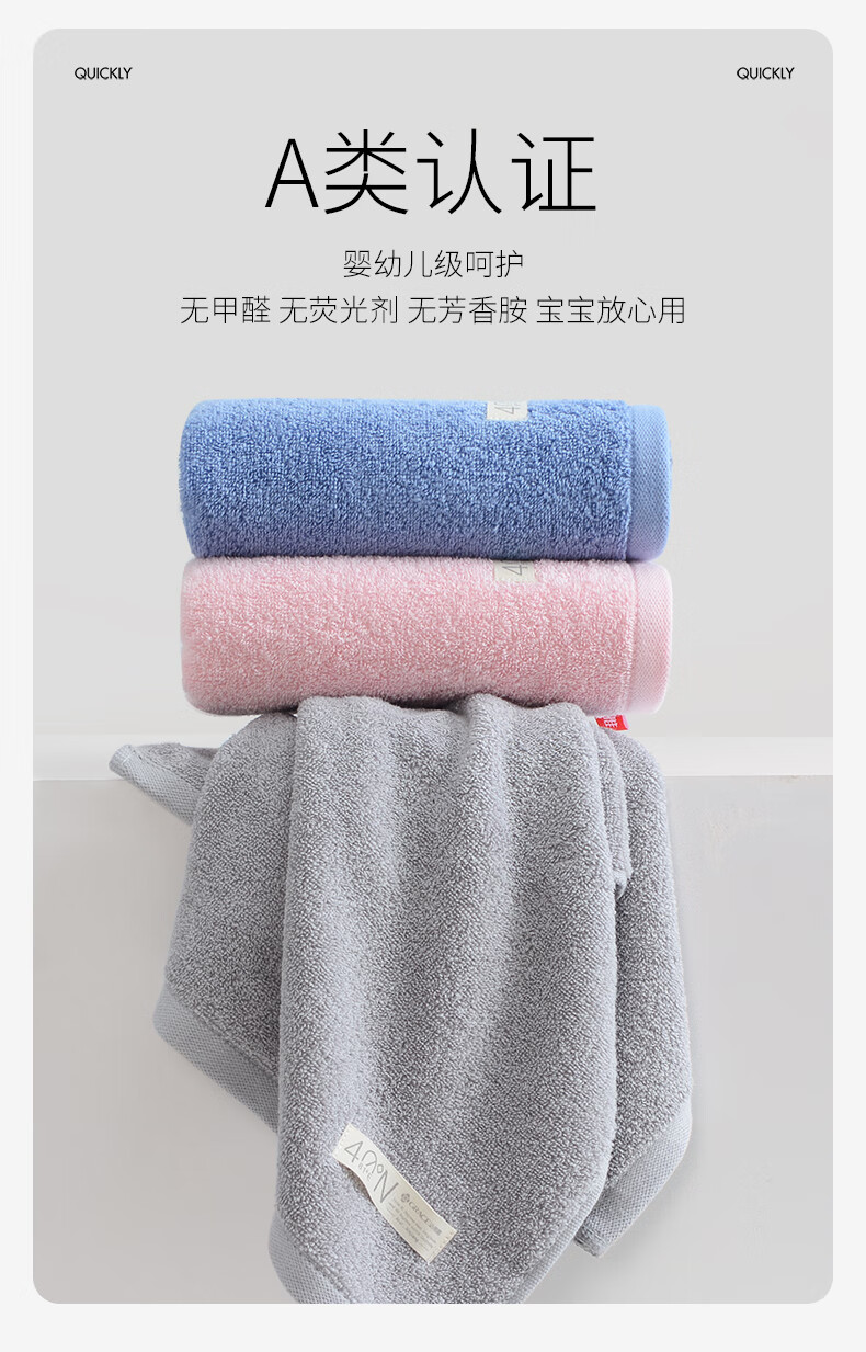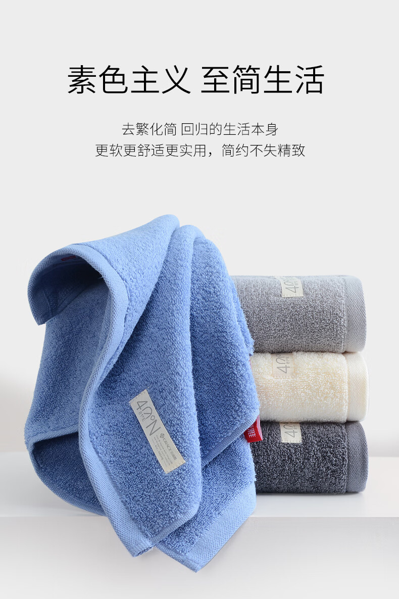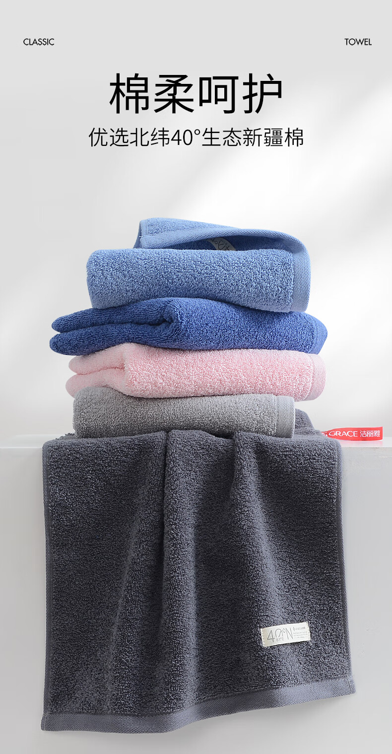 洁丽雅(grace)A类毛巾纯棉加厚洗脸洗澡巾男女士全棉柔软吸水成人情侣擦脸面巾 【A类新疆棉】深蓝+深灰 2条
