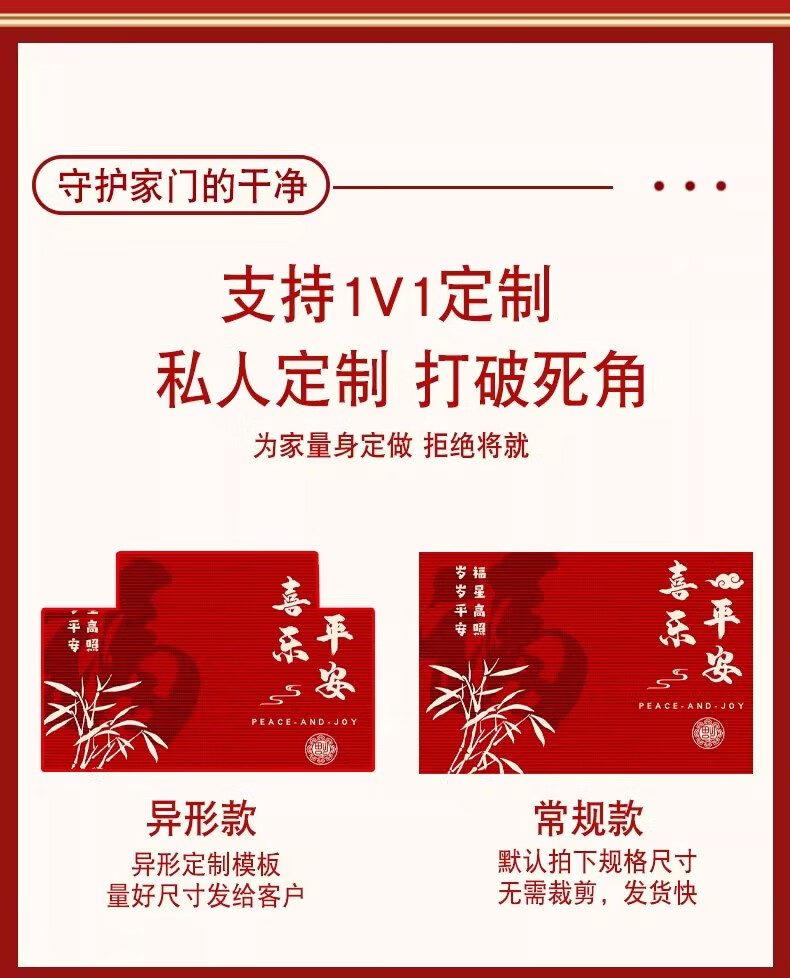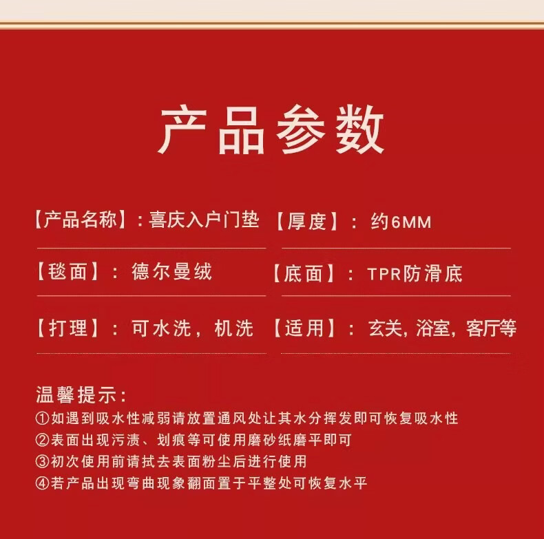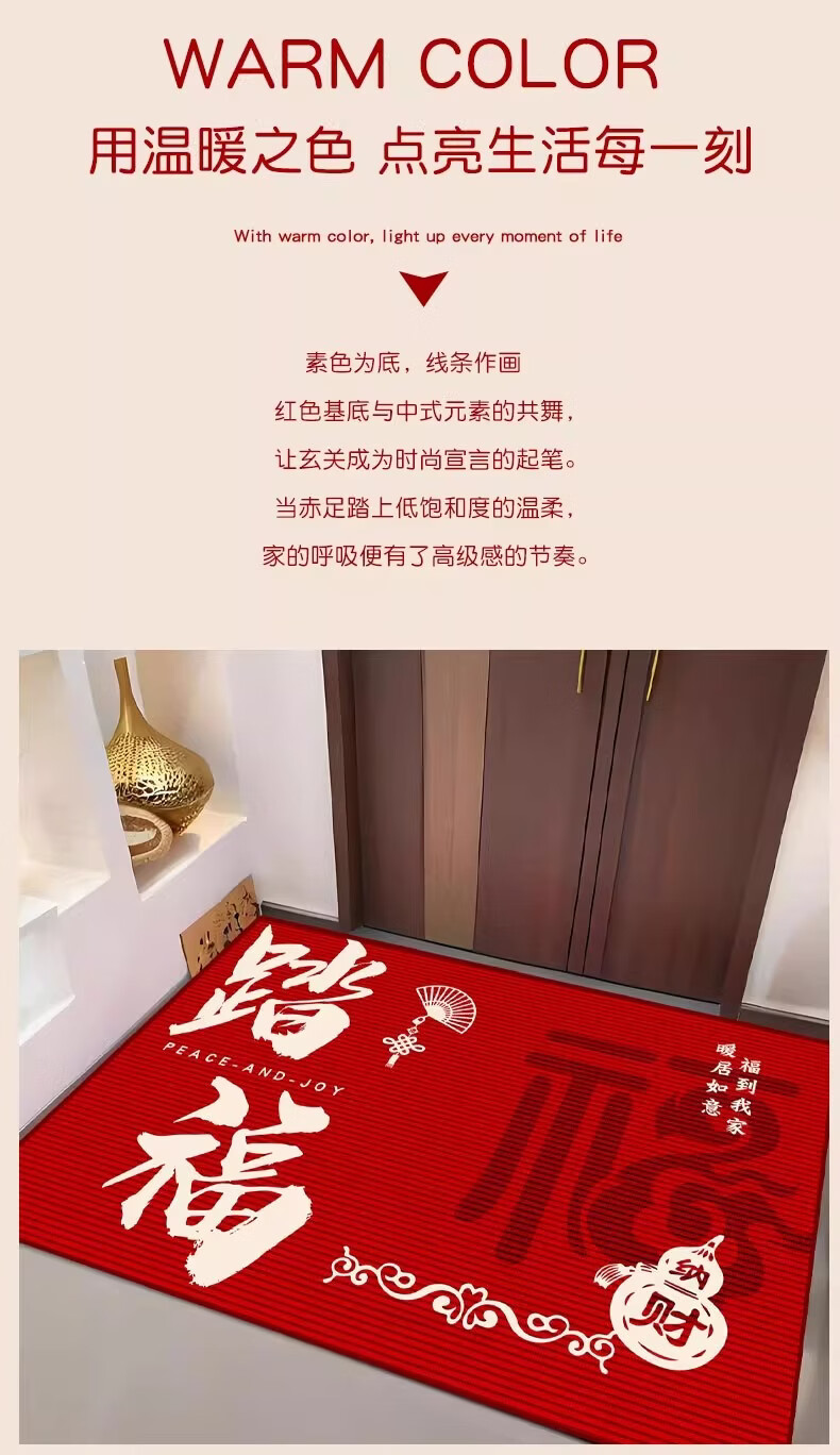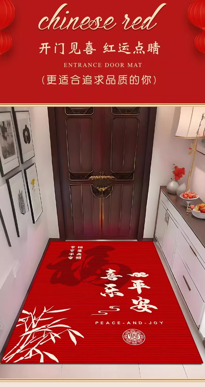 香巴赫德国入户门垫喜庆红色乔迁新居进门地垫家用耐脏玄关地毯防滑垫 诸事皆顺 定制联系客服【升级版TPR防滑底】