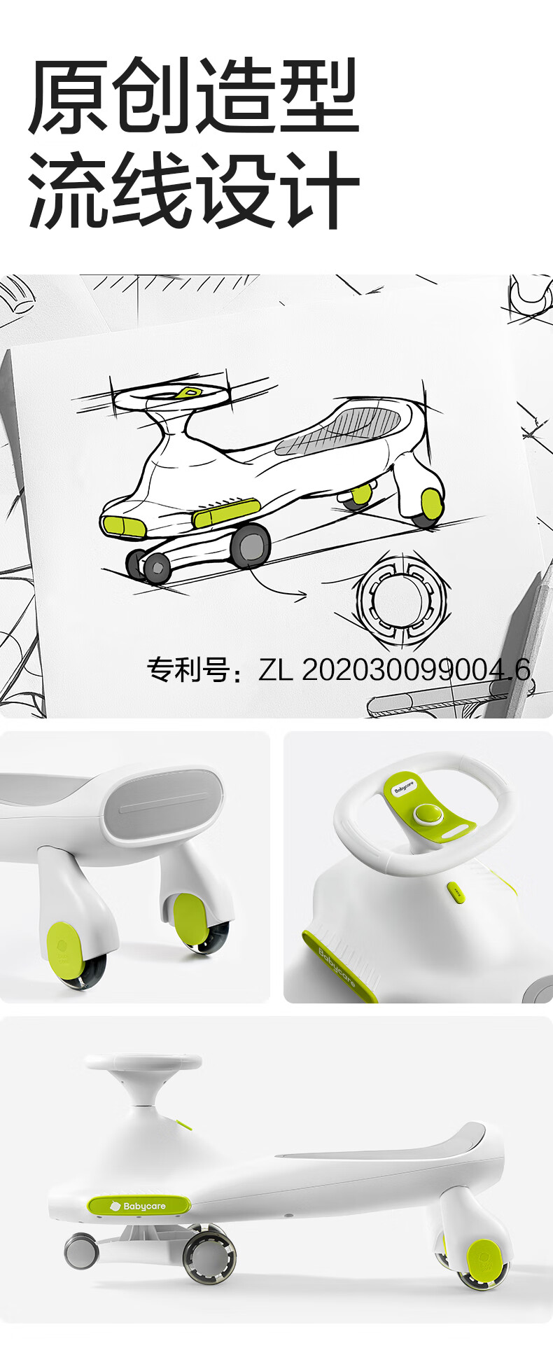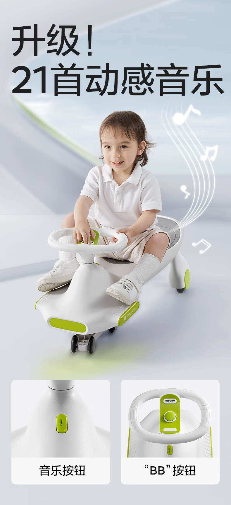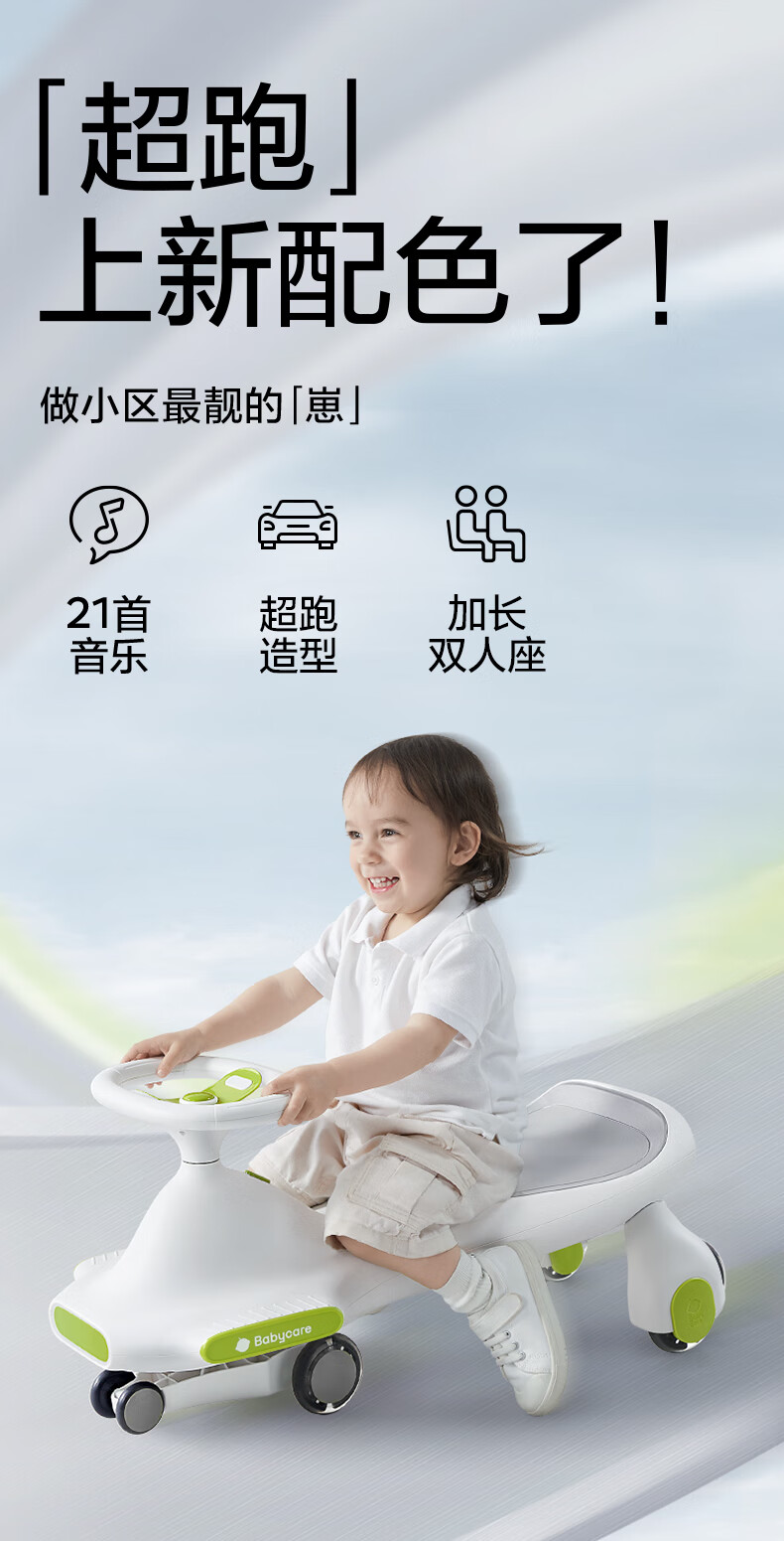 babycare扭扭车防侧翻儿童溜溜车摇摇车宝宝滑行玩具车3-6岁 辛德白音乐款