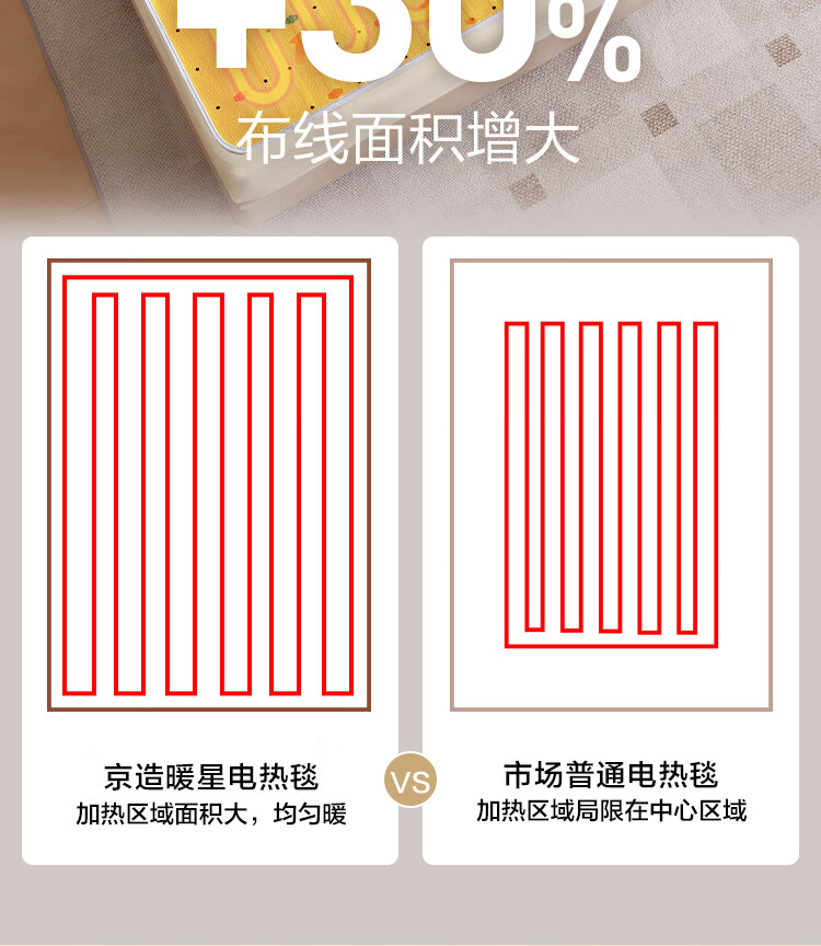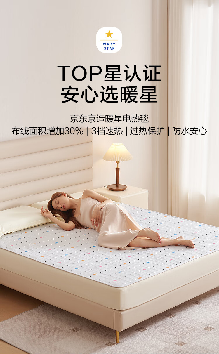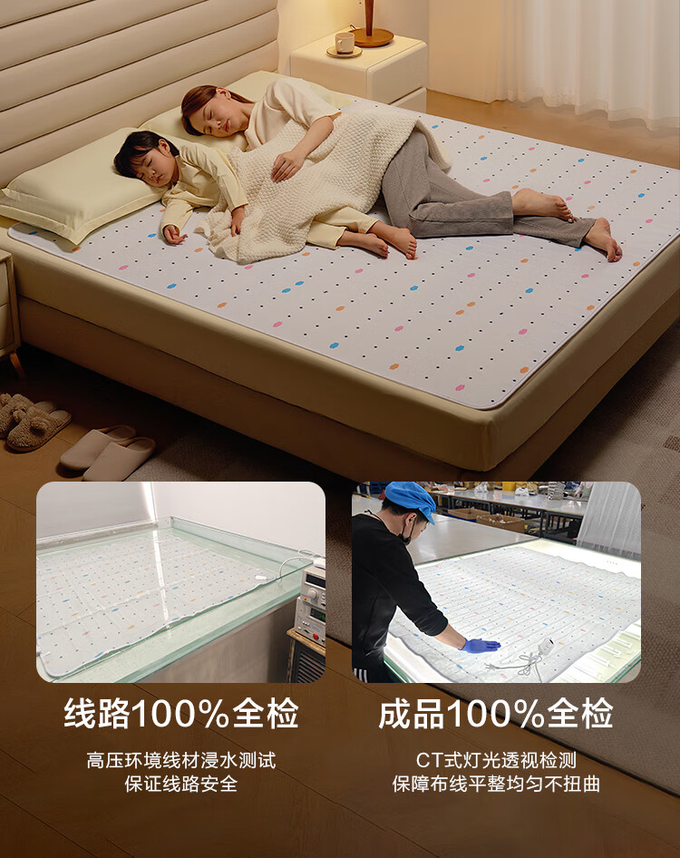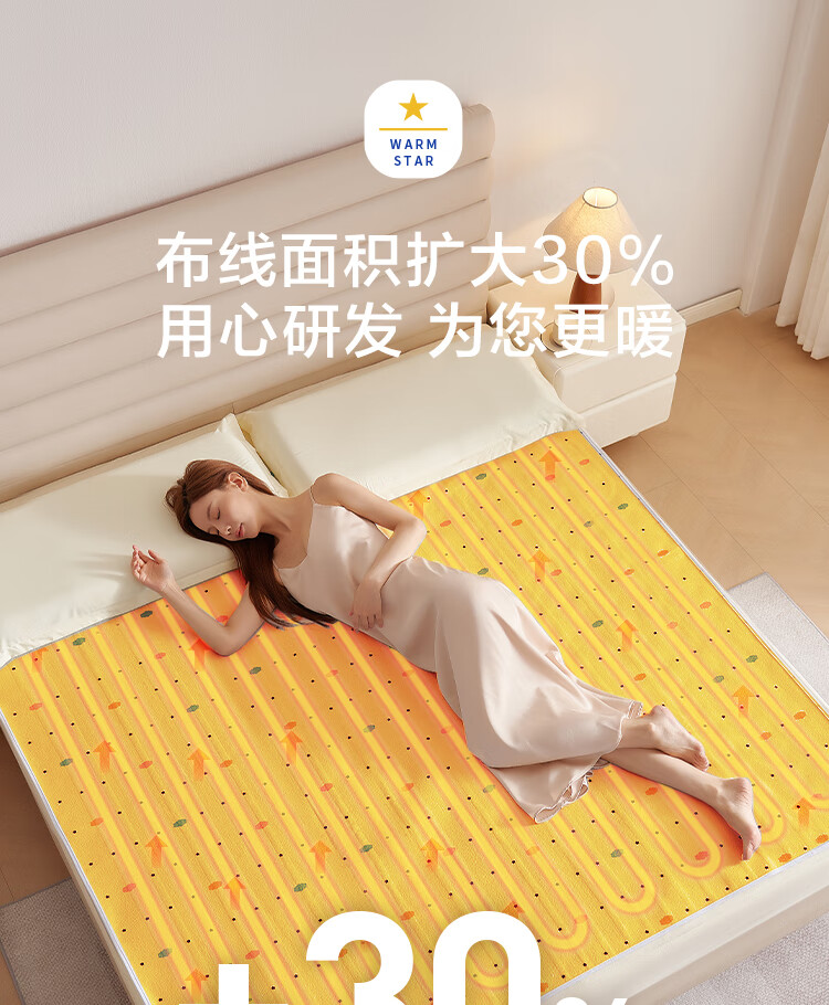 京东京造【高温断电】排潮取暖电热毯电褥子宿舍家用-双人1.5x1.8m