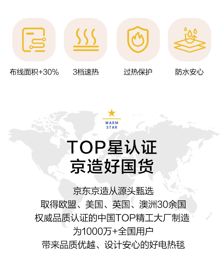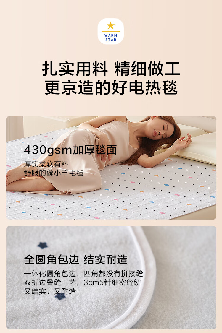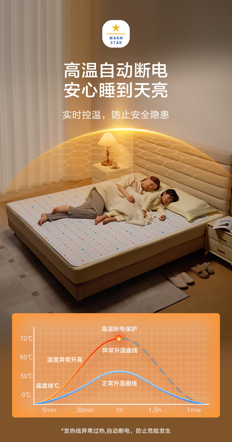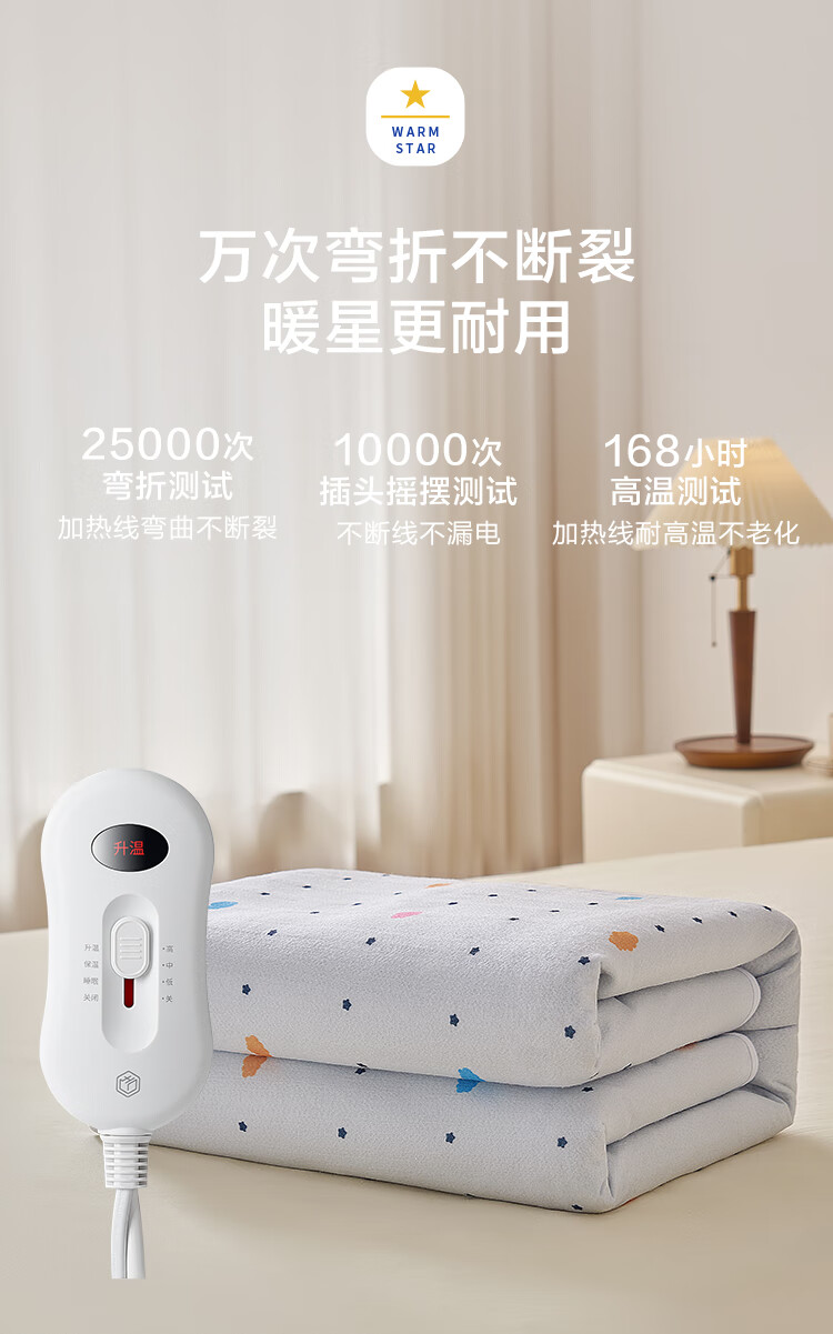 京东京造【高温断电】排潮取暖电热毯电褥子宿舍家用-双人1.5x1.8m