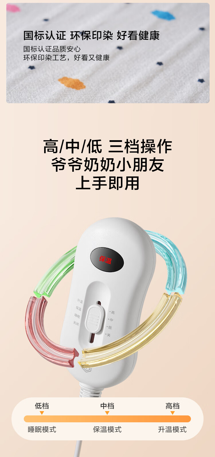 彩虹【高温断电】双人定时双温双控除螨无纺布电热毯电褥子1.8*1.5米