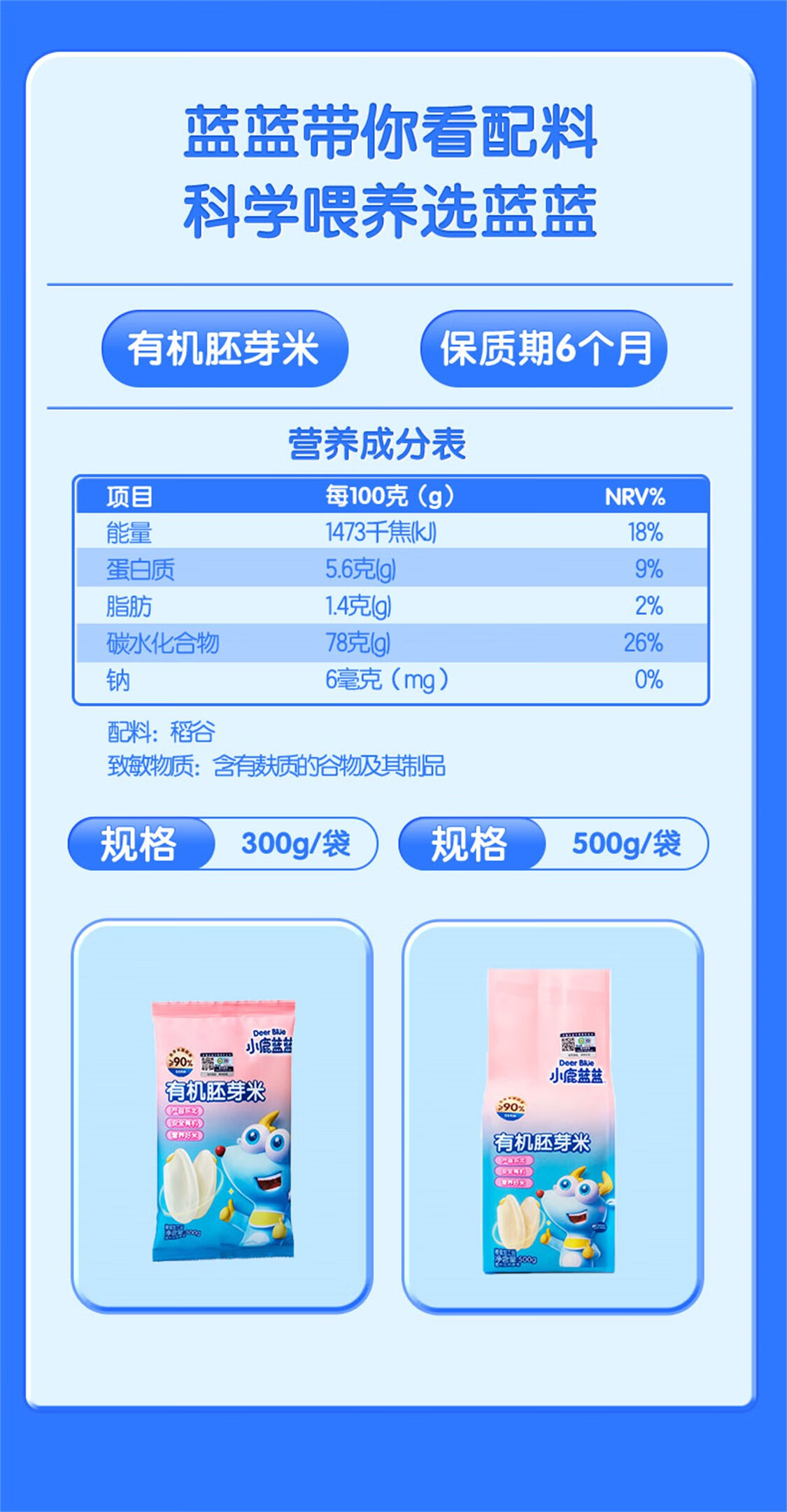 小鹿蓝蓝_有机胚芽米谷物米500g 营养搭配儿童宝宝米粥