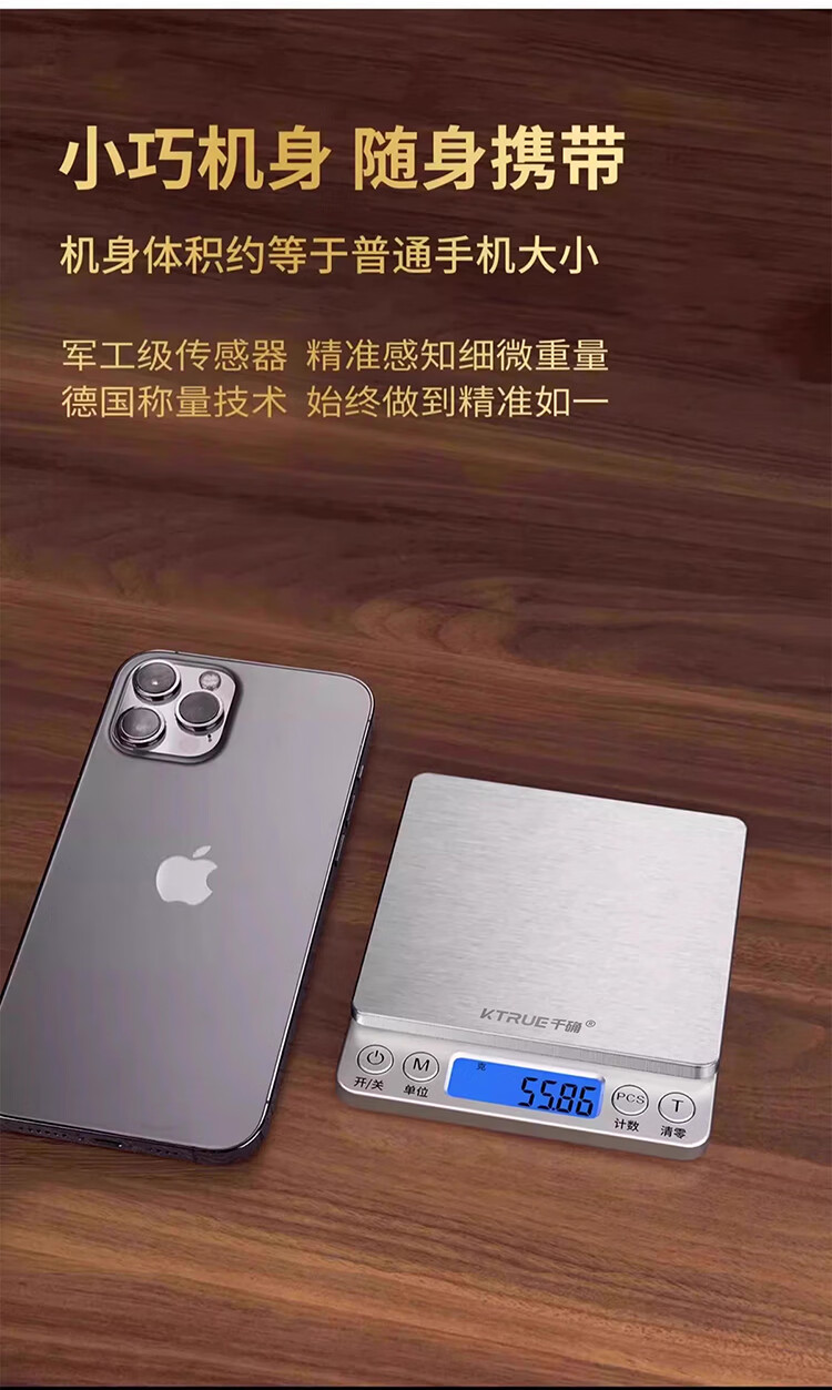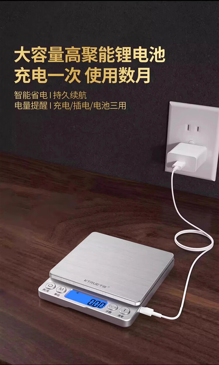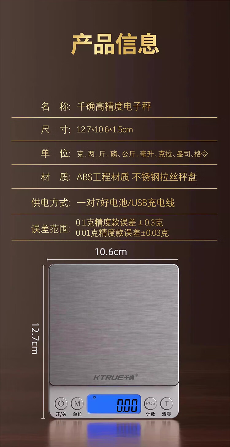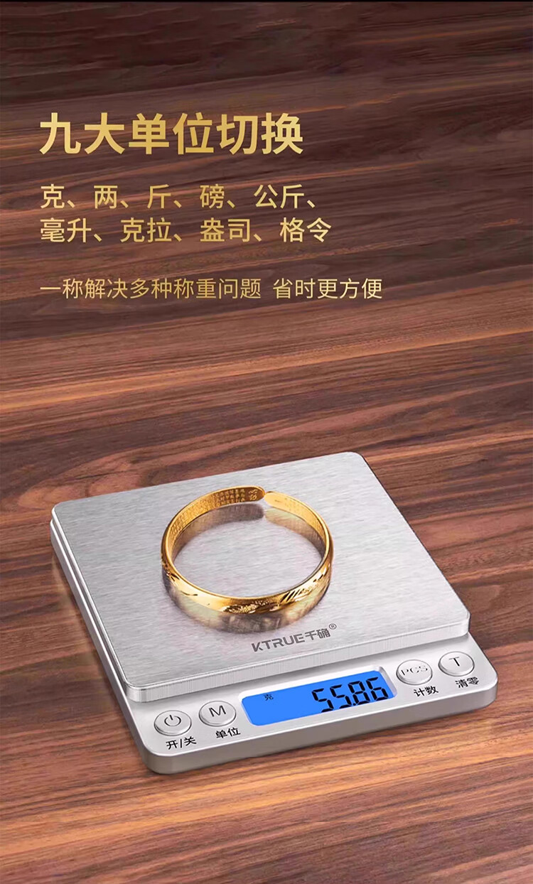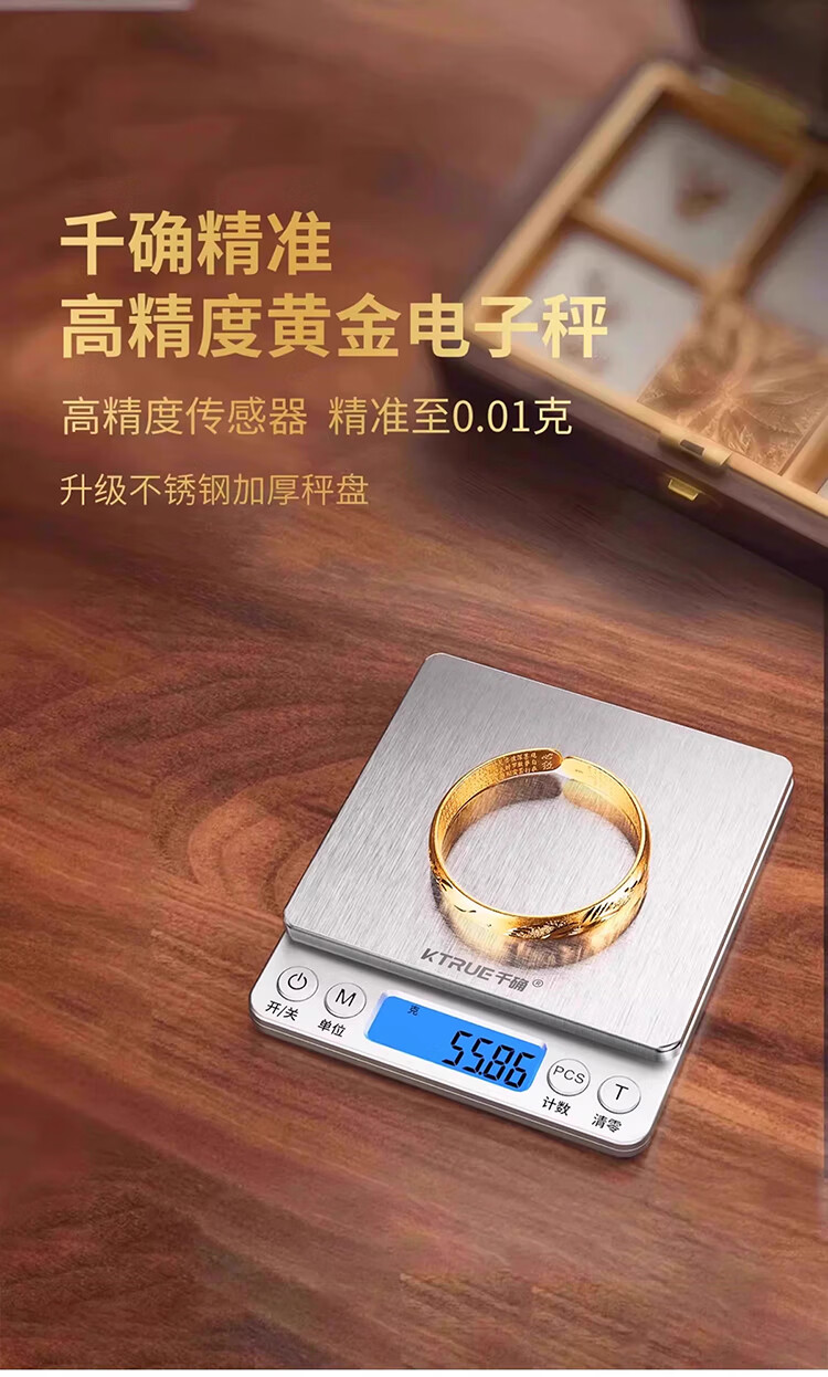 千确0.01g高精度电子秤珠宝黄金秤厨房秤不锈钢秤面烘培秤克重称