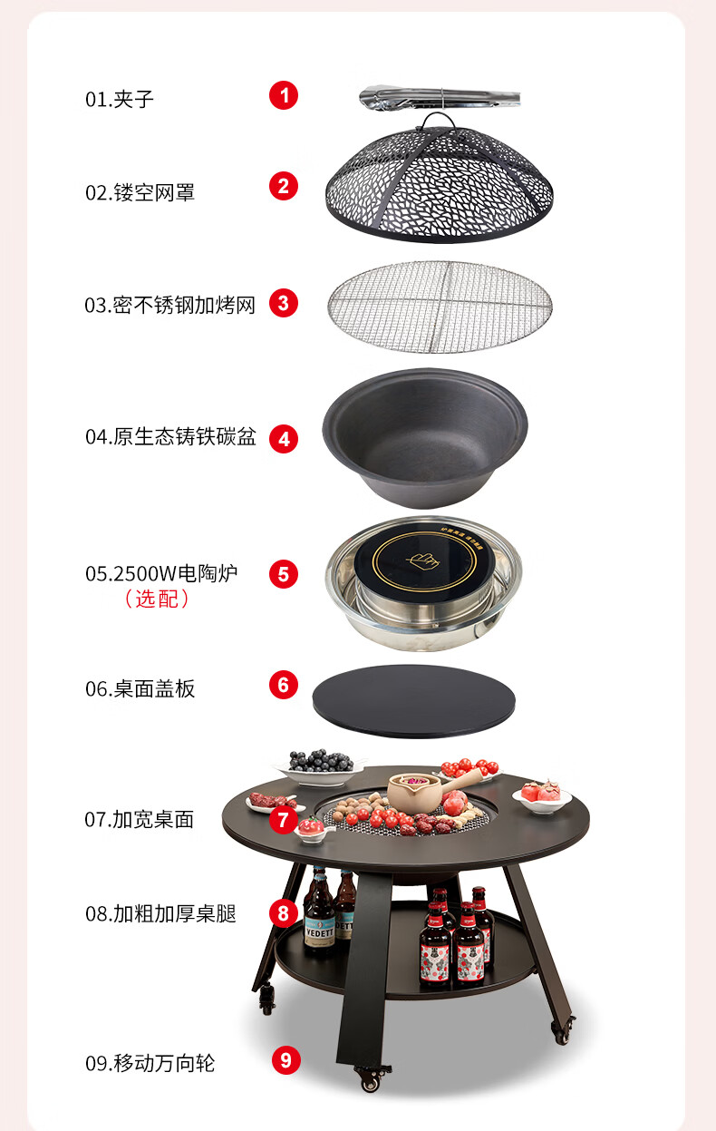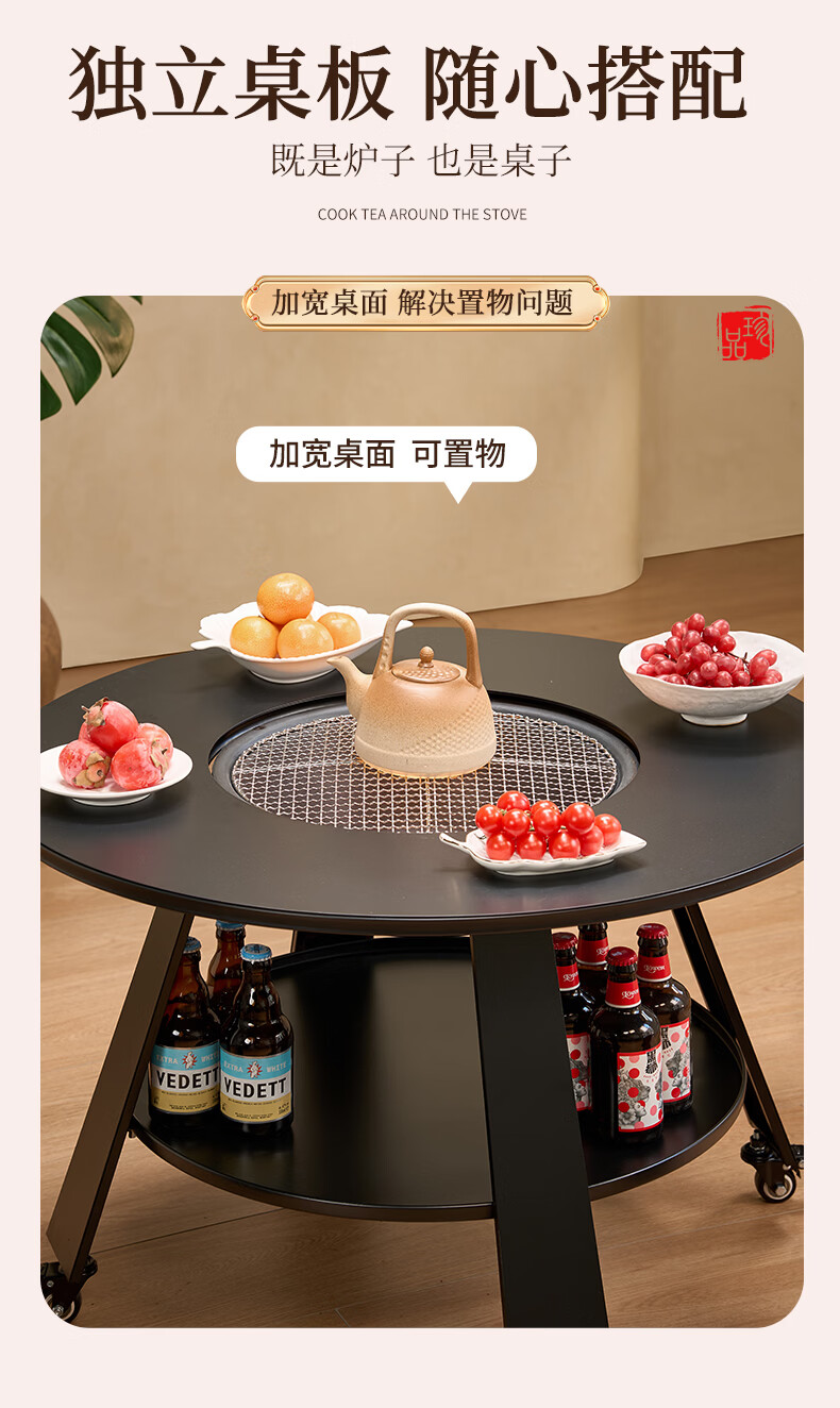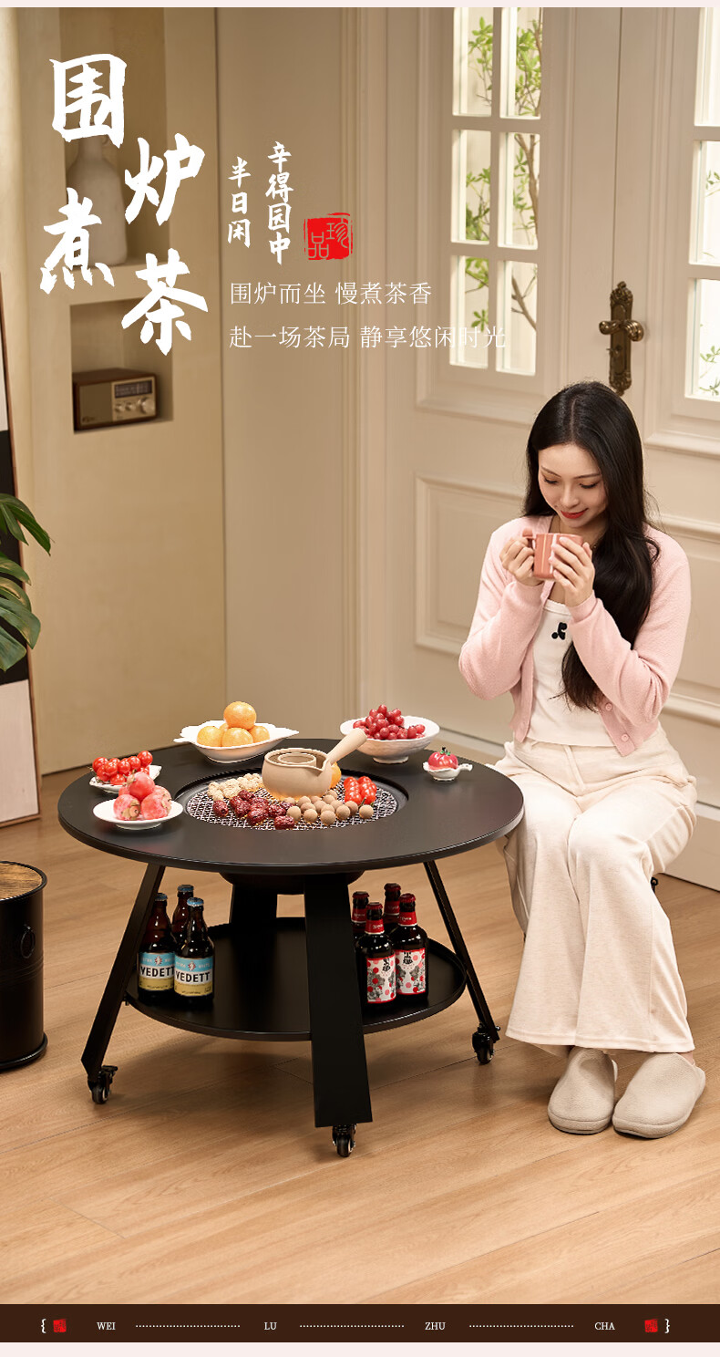 嘻由围炉煮茶一整套新款户外烧烤桌庭院烤火炉烧烤架取暖火盆炭火炉 【120CM烧烤桌+电磁炉】+【烤网】+烧烤配件 【100CM烧烤桌】