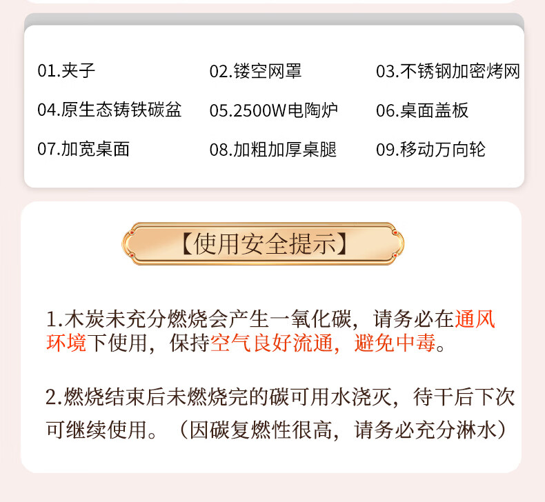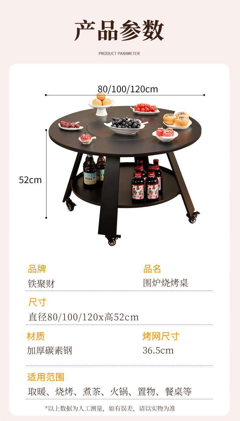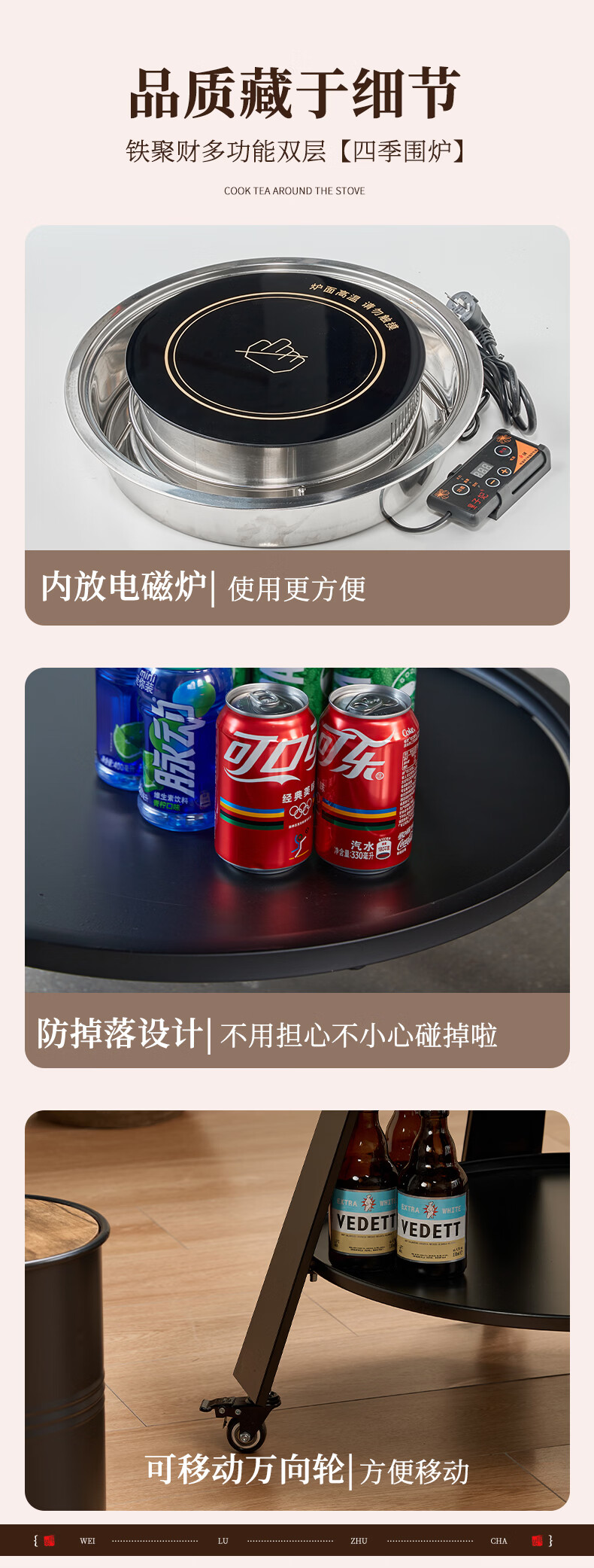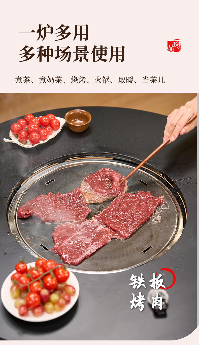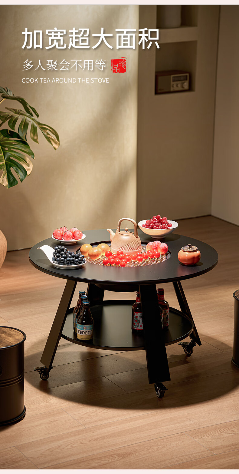 嘻由围炉煮茶电碳两用烧烤炉室内插电烧烤炉架桌户外庭院取暖碳烤火炉 【120CM烧烤桌+电磁炉=+【烤网+椅子*4+烤盘】【赠品】 【防风/防水/防锈】