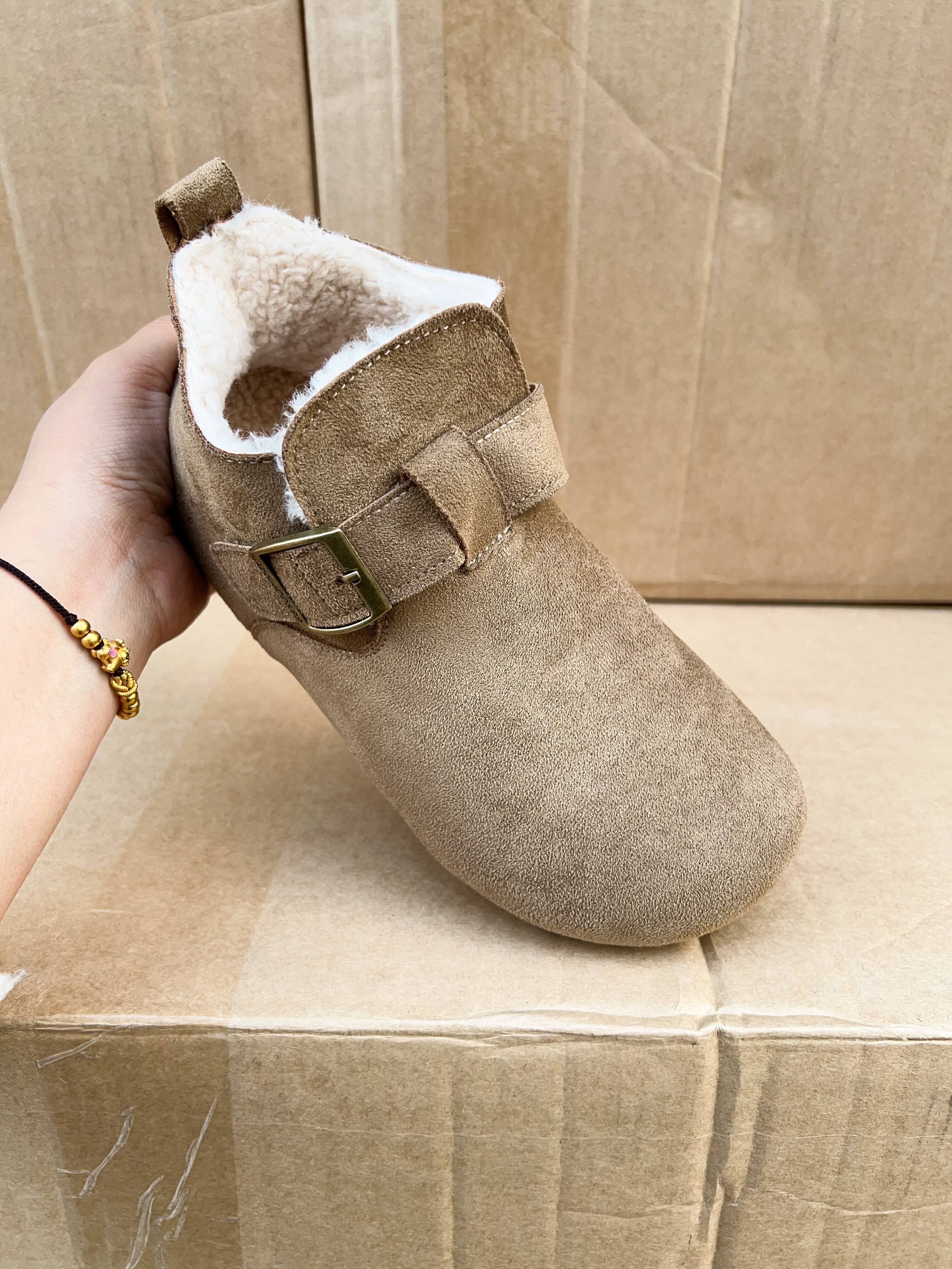 稻草人(MEXICAN)又暖又软又百搭加绒加厚勃肯鞋厚底增高显瘦保暖雪地靴女棉鞋 咖啡色全包 35