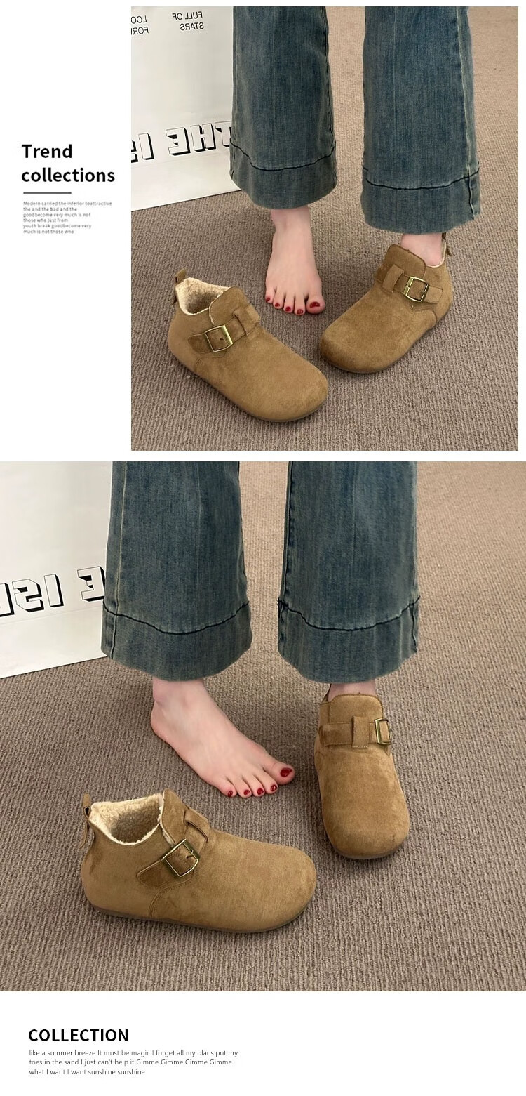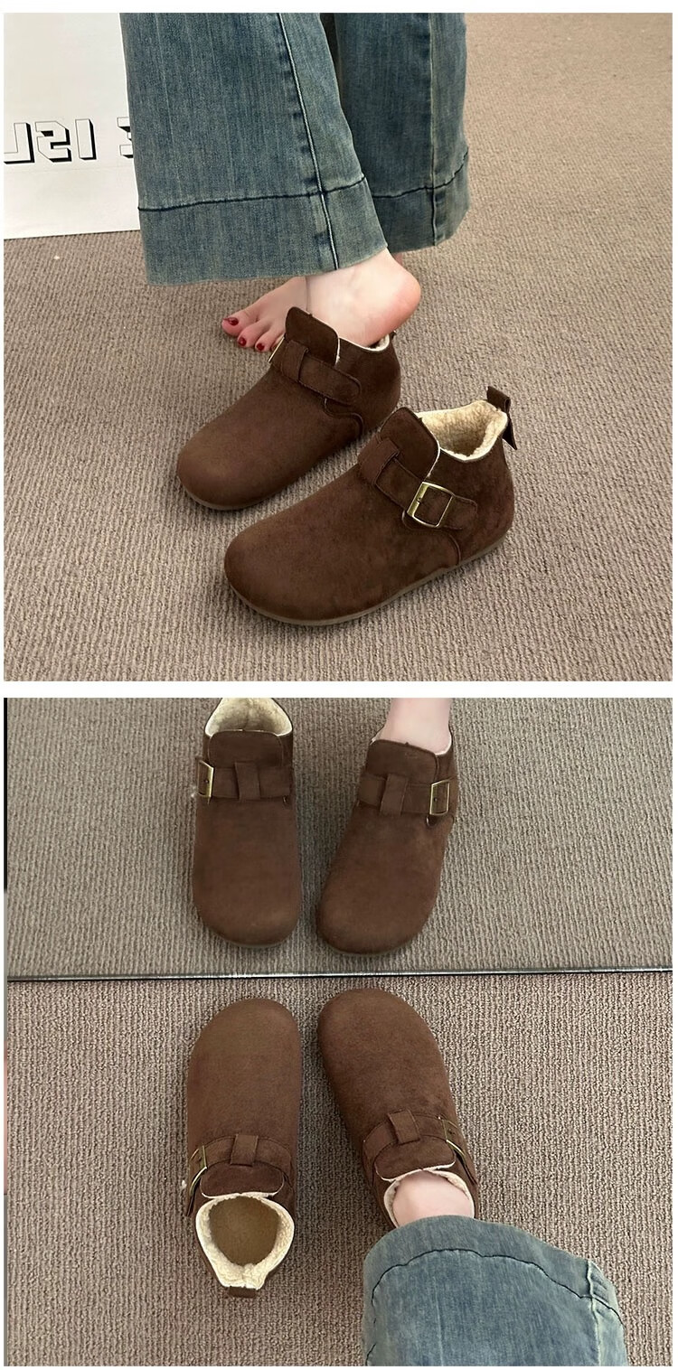 星期六绒面厚底勃肯半拖鞋女2025年秋冬季加绒女鞋一脚蹬懒人棉拖毛毛鞋 深灰 【绒面保暖】跟高3cm 35
