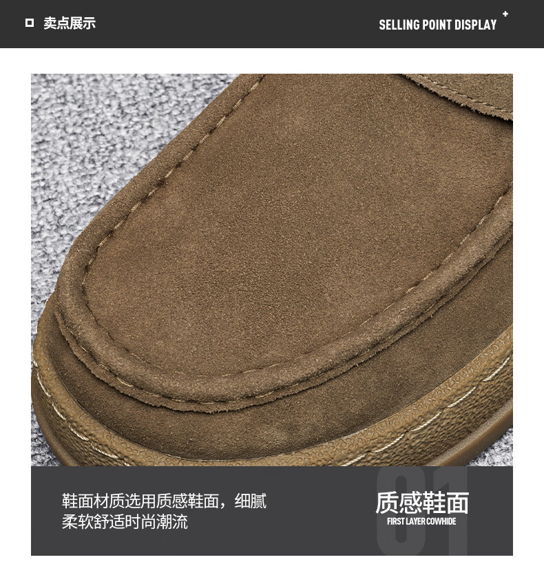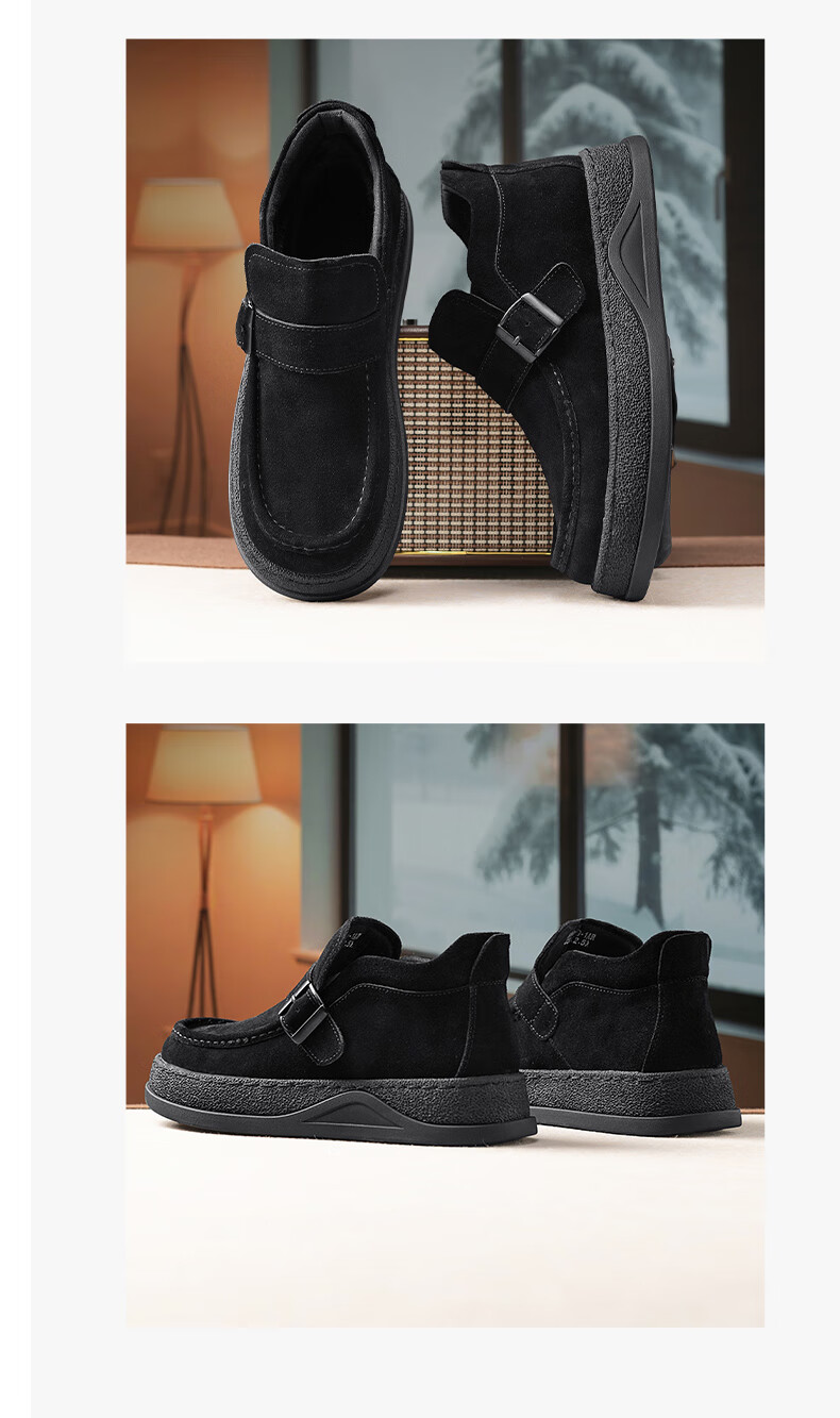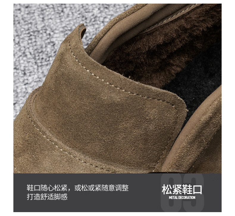 稻草人(MEXICAN)勃肯鞋男鞋冬季增高加绒老钱风软底翻毛皮休闲板鞋保暖二棉鞋男士 卡其色 39 【收藏加购 现货立发】