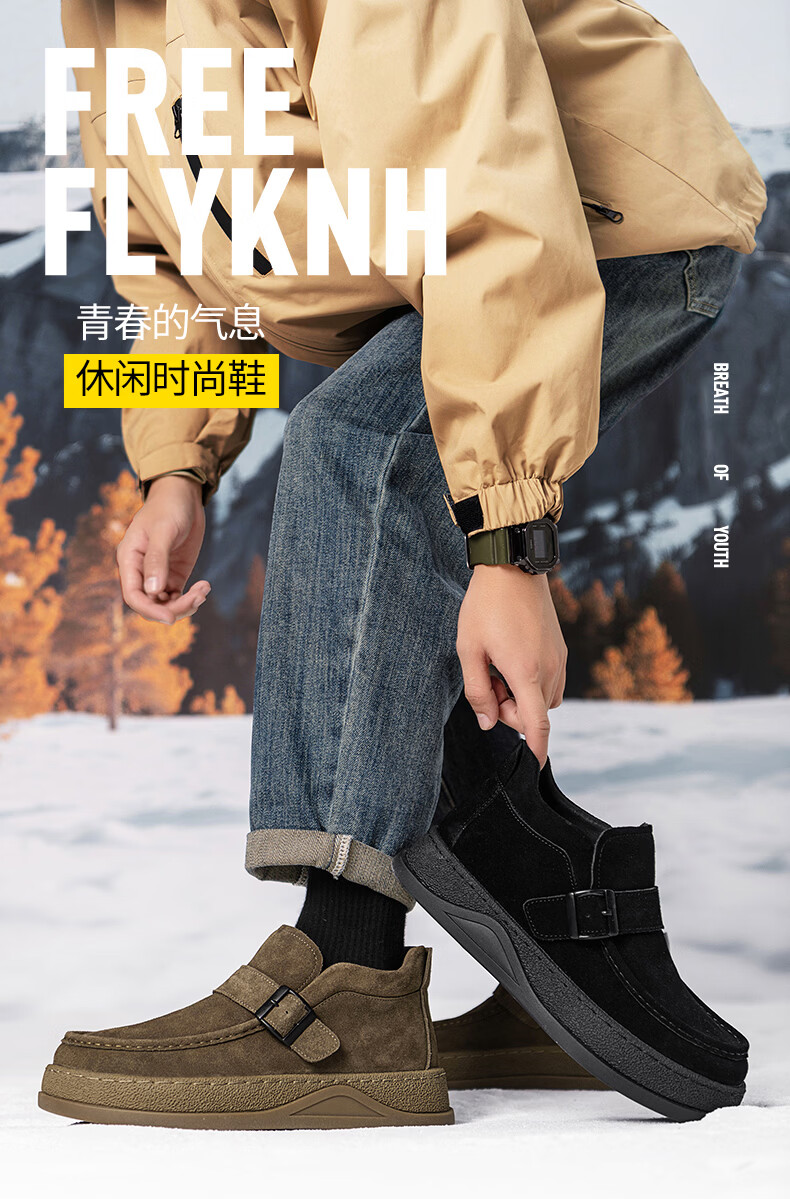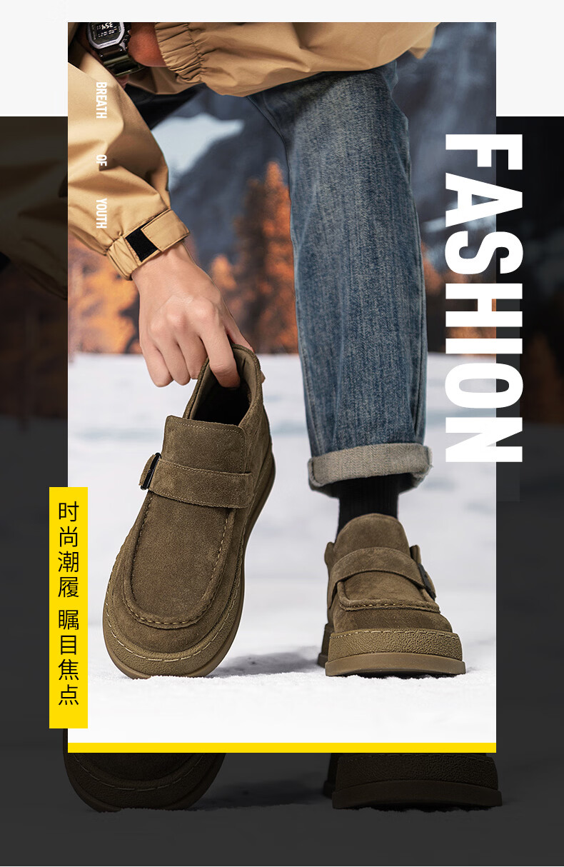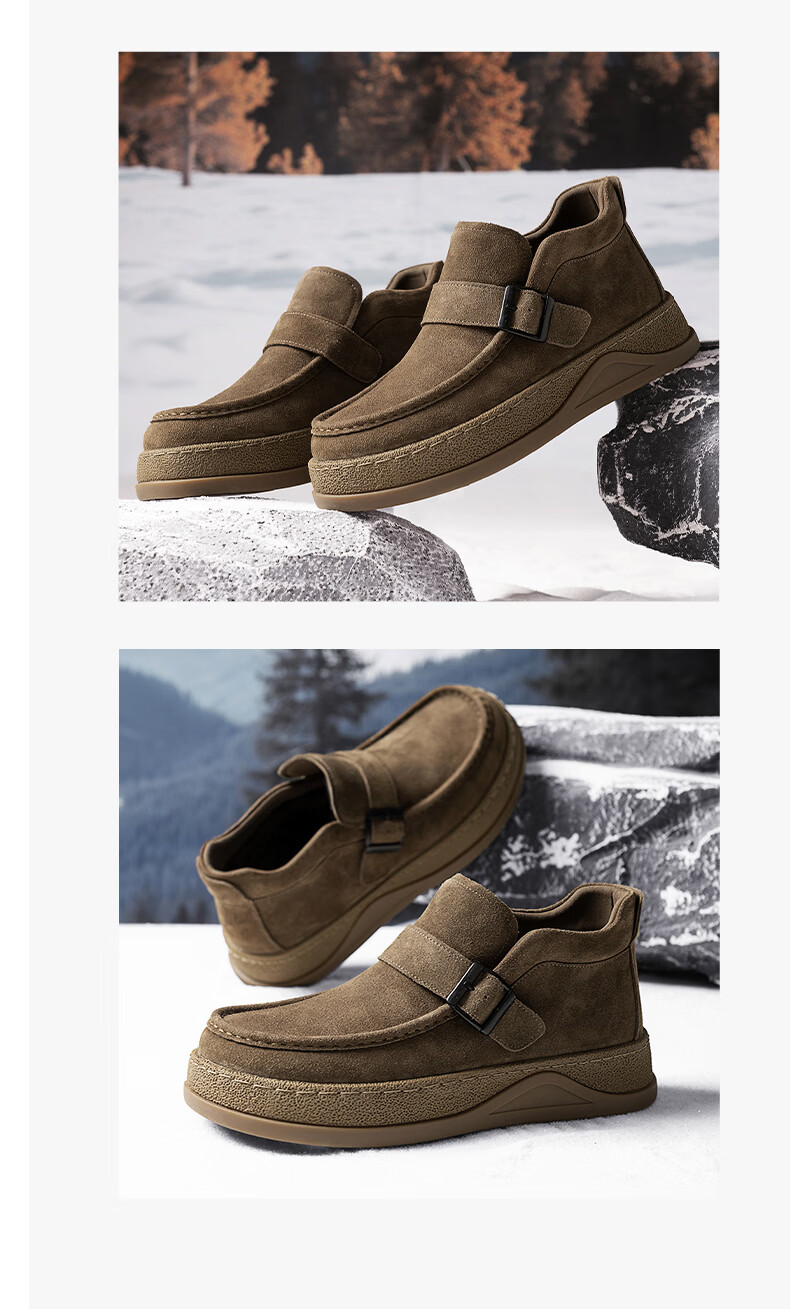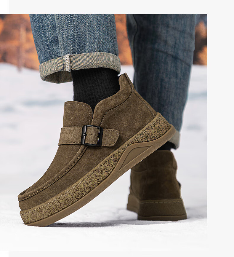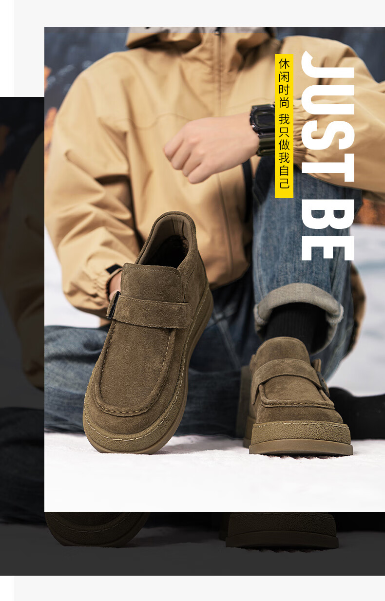 沙驰(SATCHI)男鞋【羊毛皮】防寒保暖雪地靴秋冬棉鞋舒适轻底休闲鞋男靴 卡其(H12A9G0320) 加绒 38 欧码(选小一码)