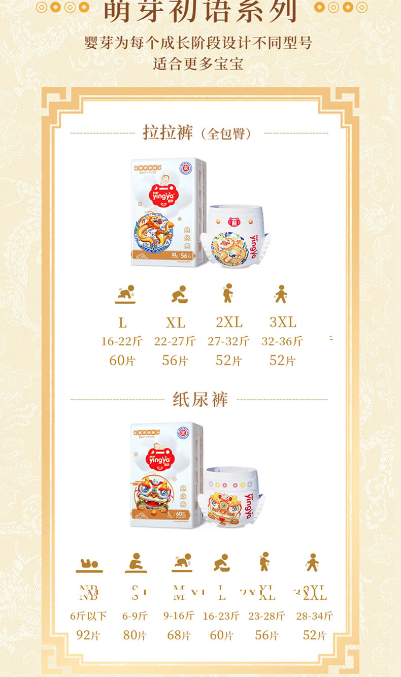婴芽(YINGYA)萌芽拉拉裤XXXL码52片【16-18kg】婴儿超薄干爽尿不湿男女宝尿裤