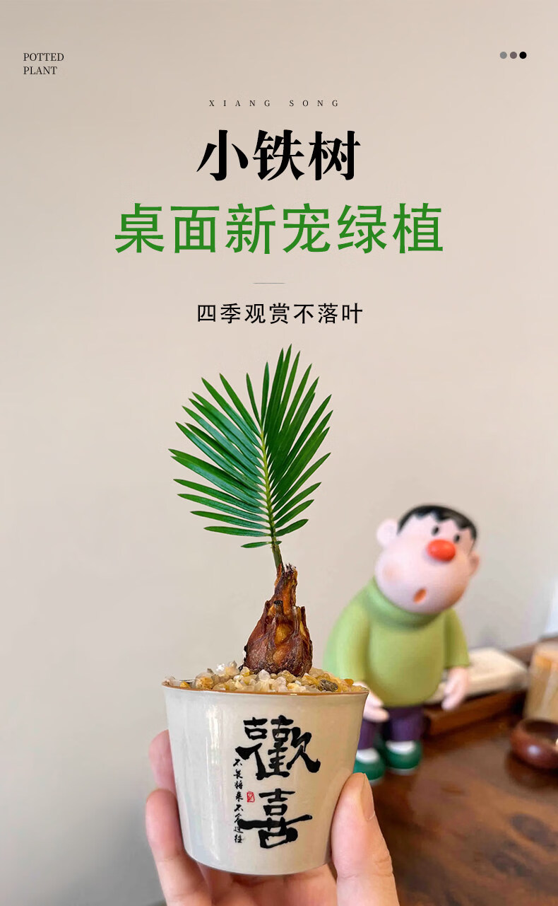 胖东来同款迷你茶桌绿植盆栽铁树禅意小禅意摆件盆景办公室内物客 A级 铁树+D250欢喜 带盆栽好