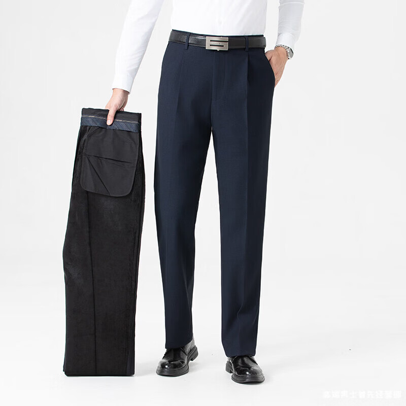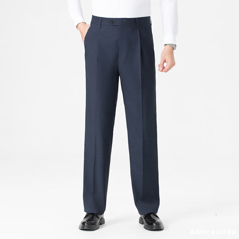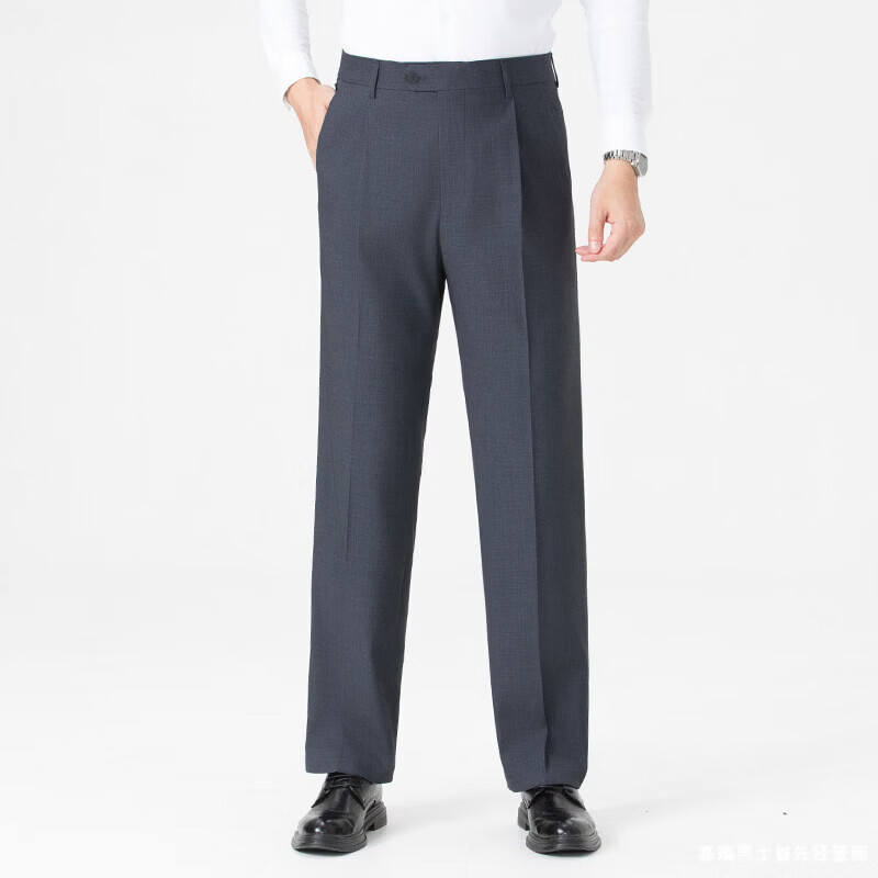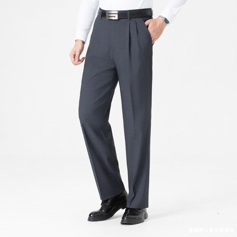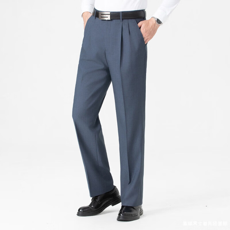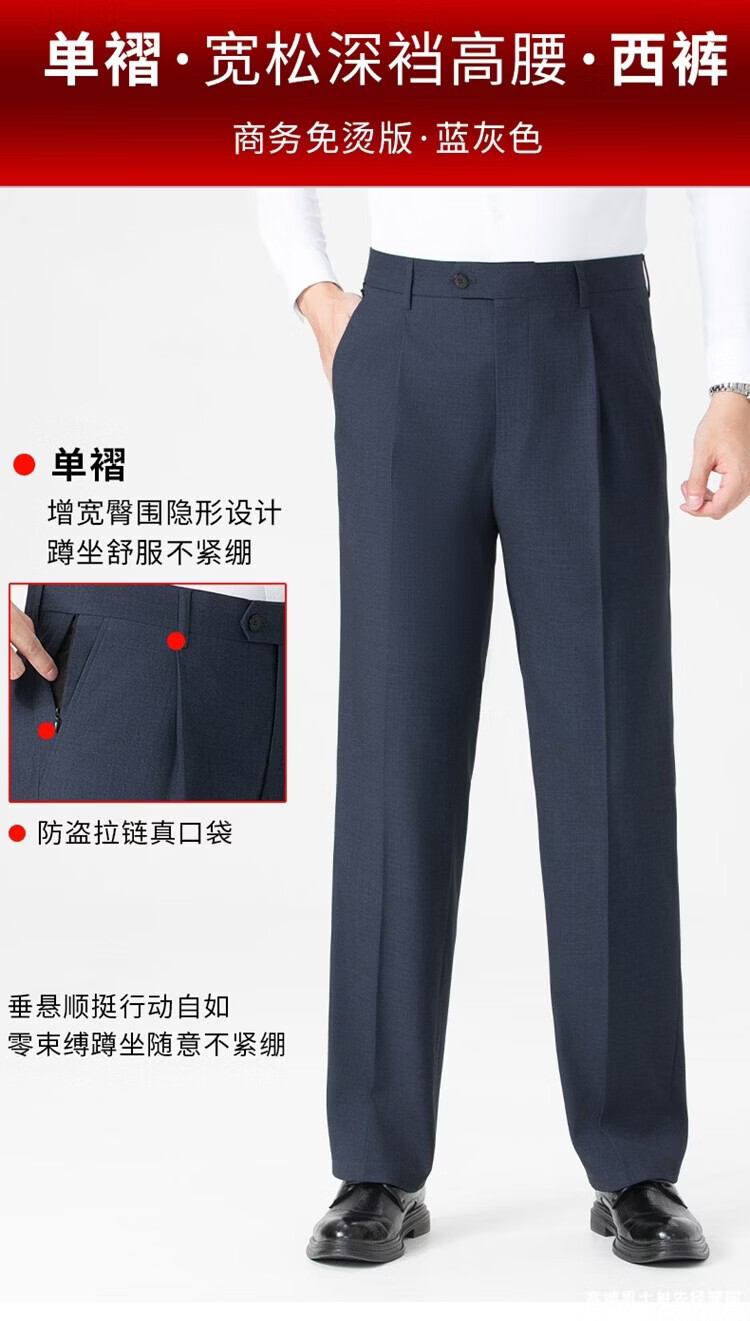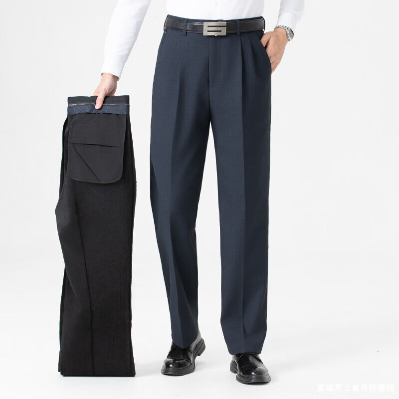LILANG利郎羊毛西裤男高腰宽松直筒商务休闲加绒防盗口袋中老年裤 单褶蓝灰色【厚款】 常规 42 【腰围3尺2】