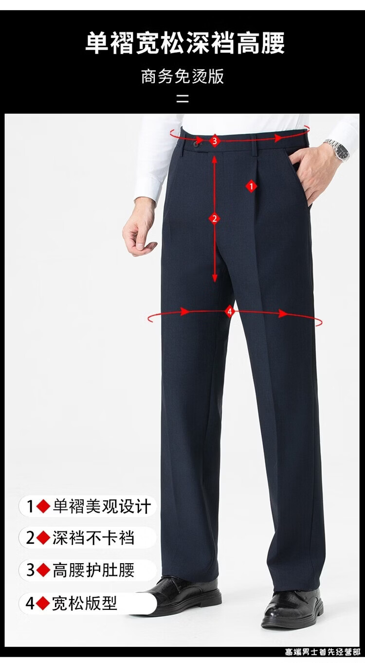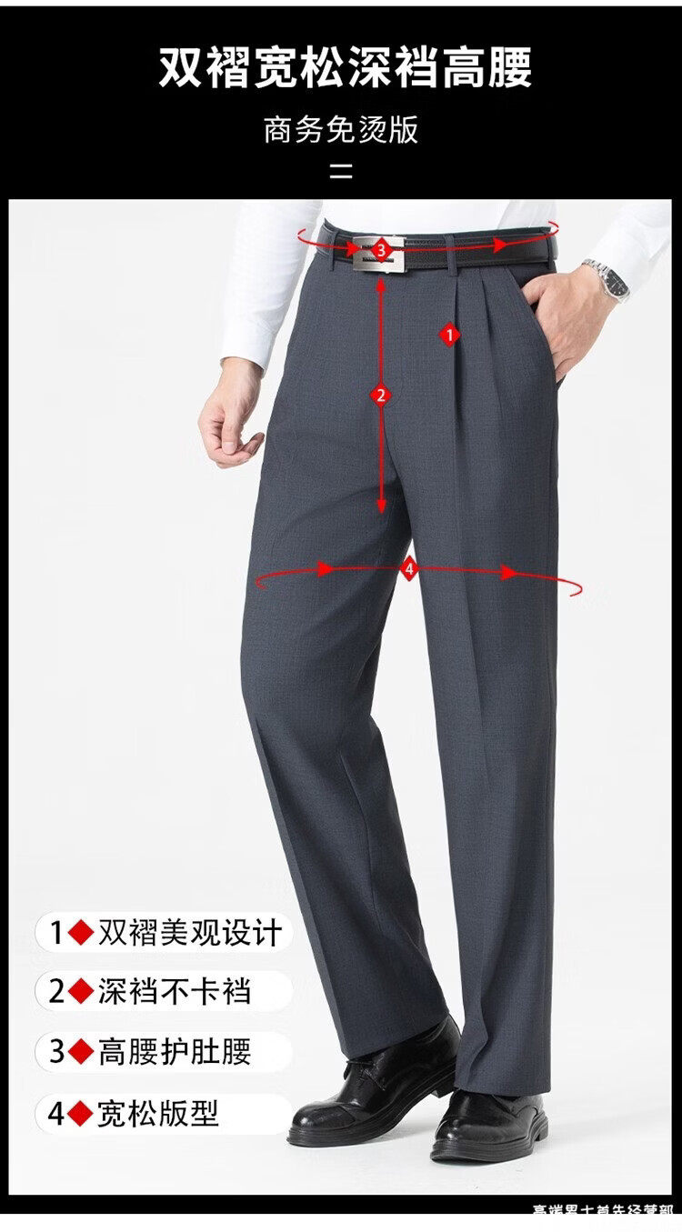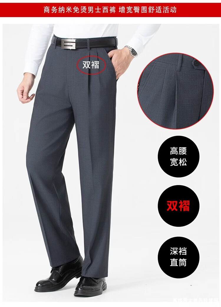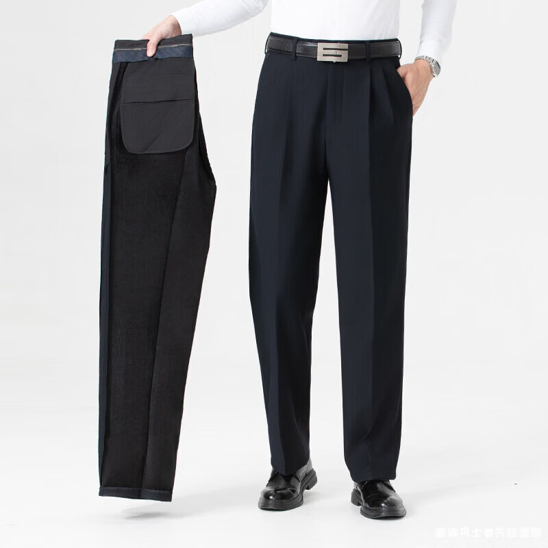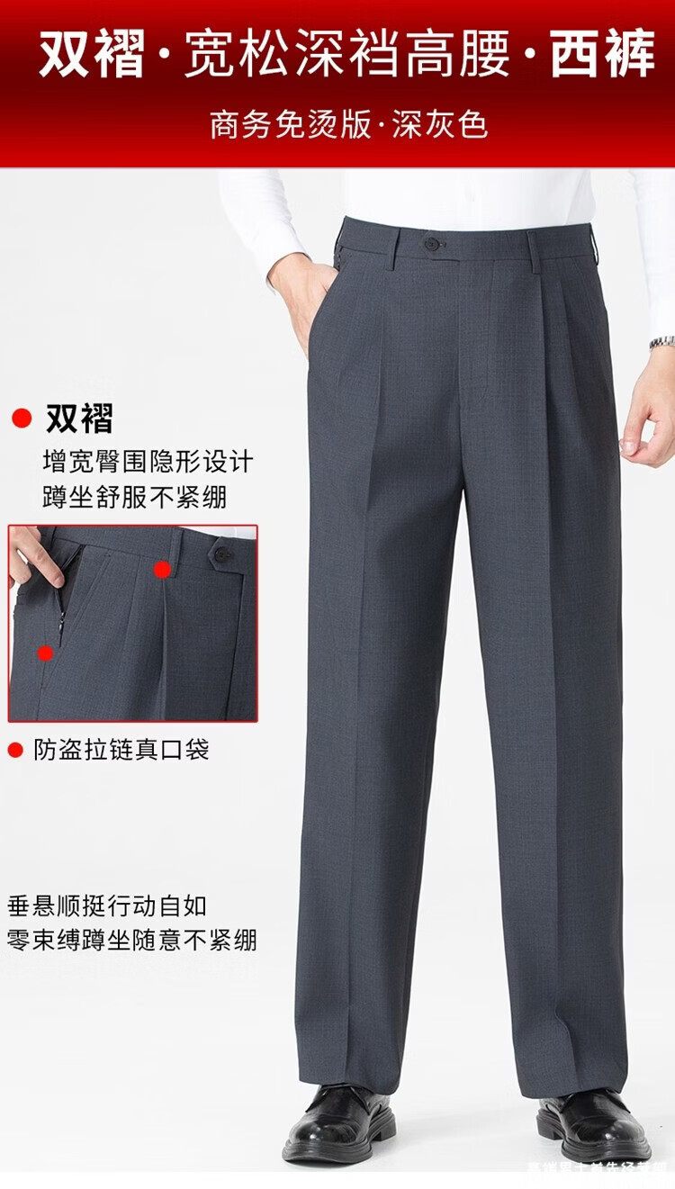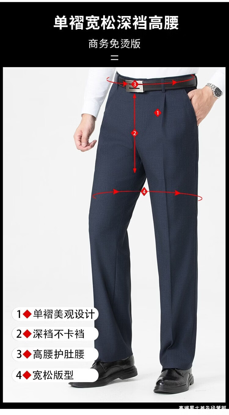 LILANG利郎羊毛西裤男高腰宽松直筒商务休闲加绒防盗口袋中老年裤 单褶蓝灰色【厚款】 常规 42 【腰围3尺2】