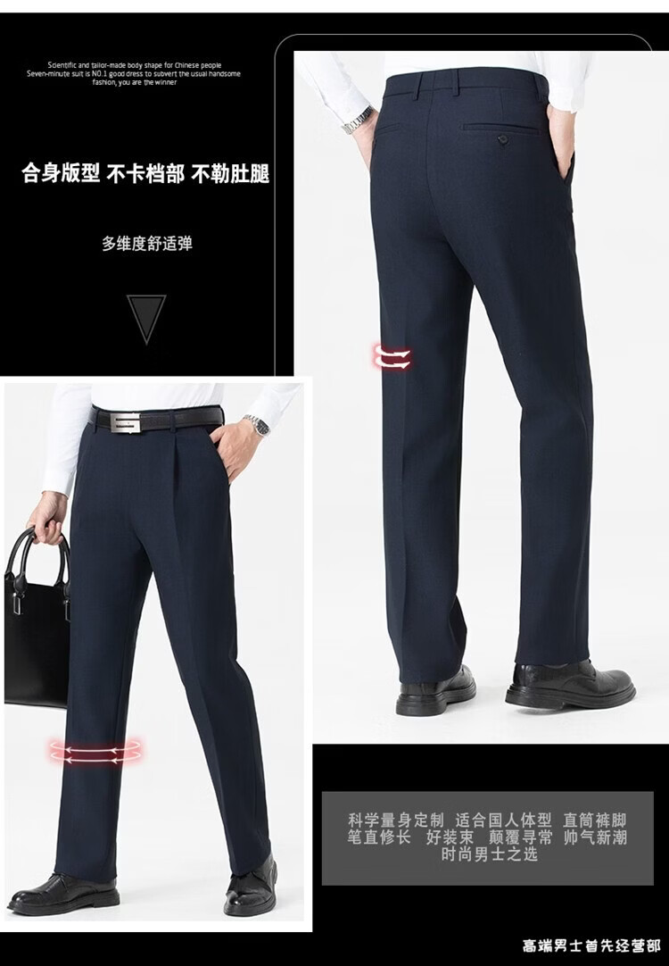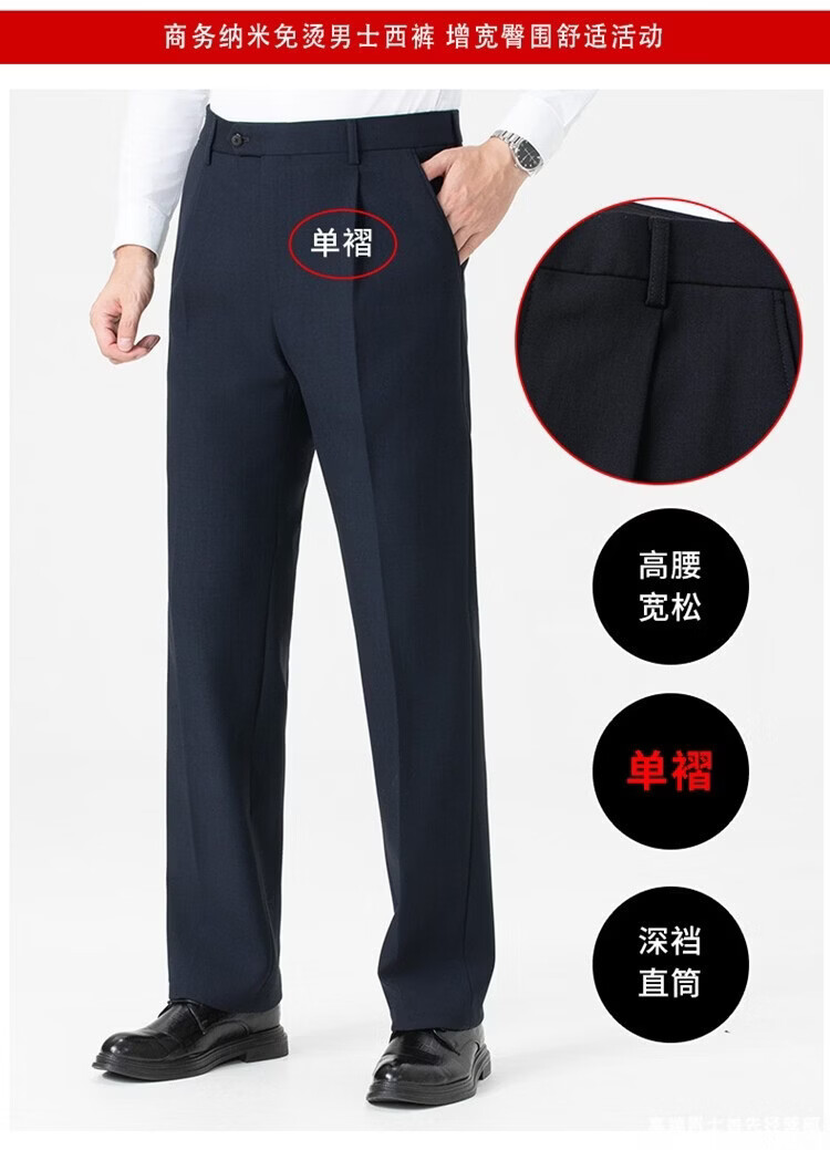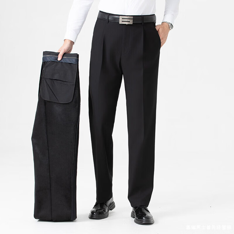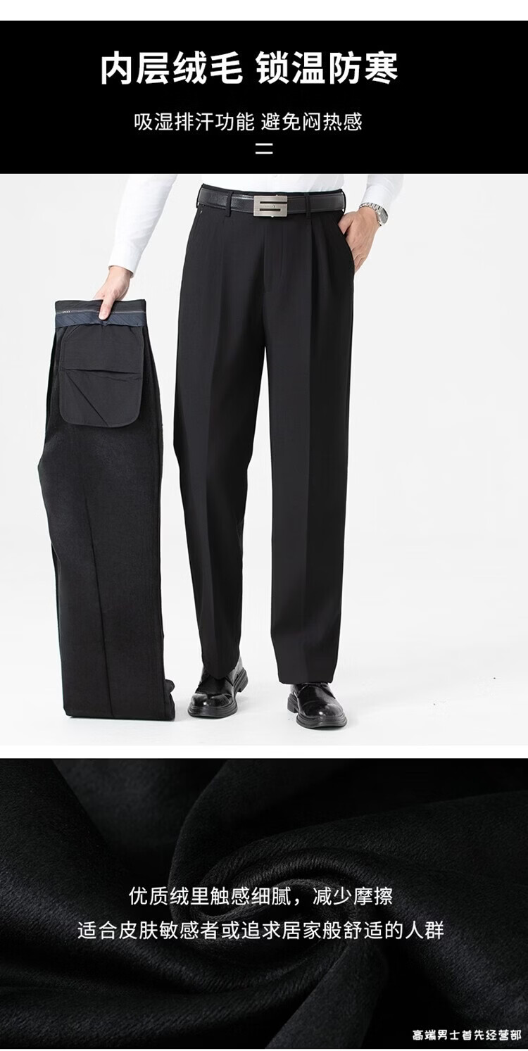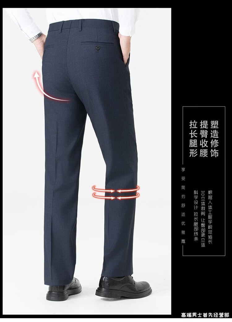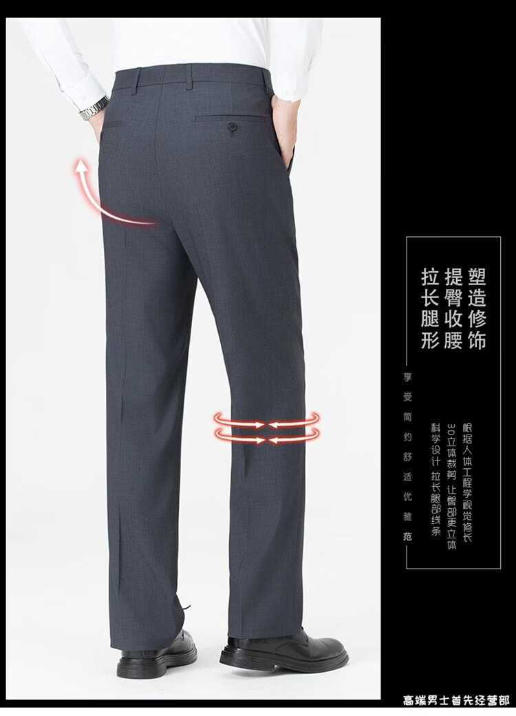 LILANG利郎羊毛西裤男高腰宽松直筒商务休闲加绒防盗口袋中老年裤 单褶蓝灰色【厚款】 常规 42 【腰围3尺2】