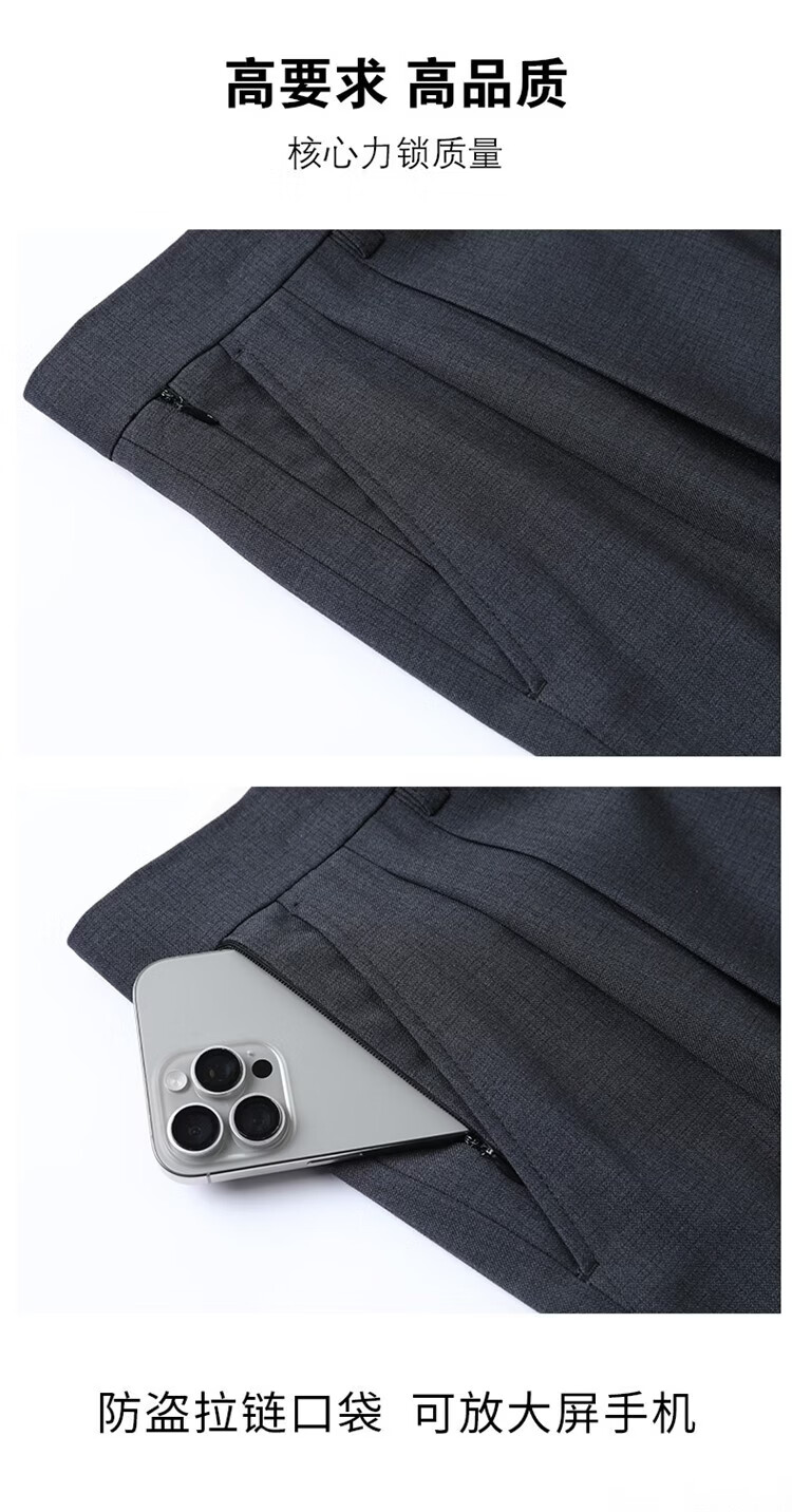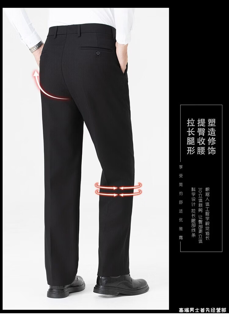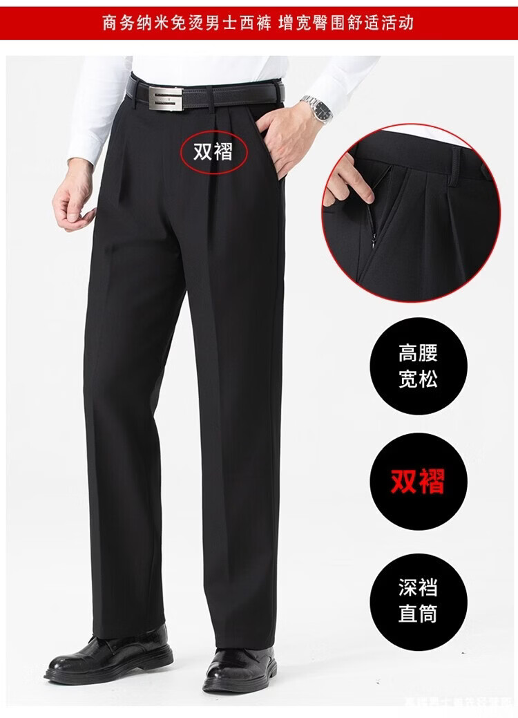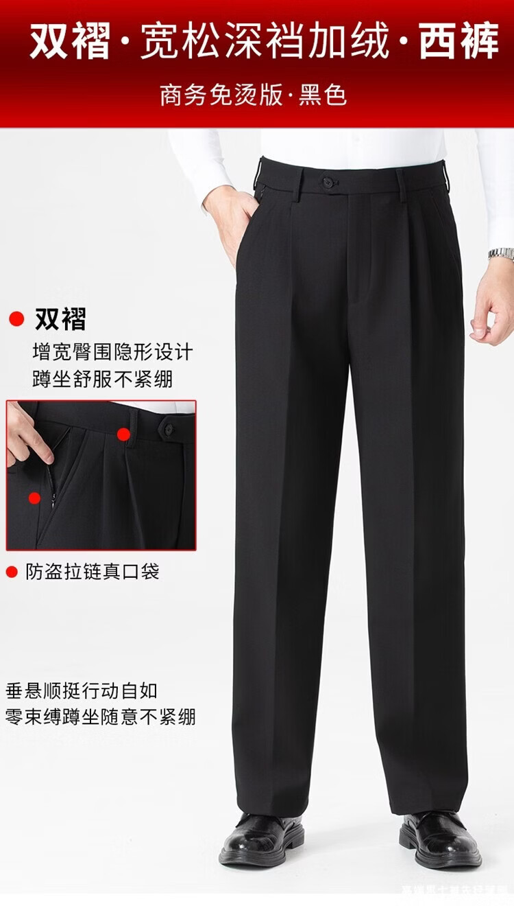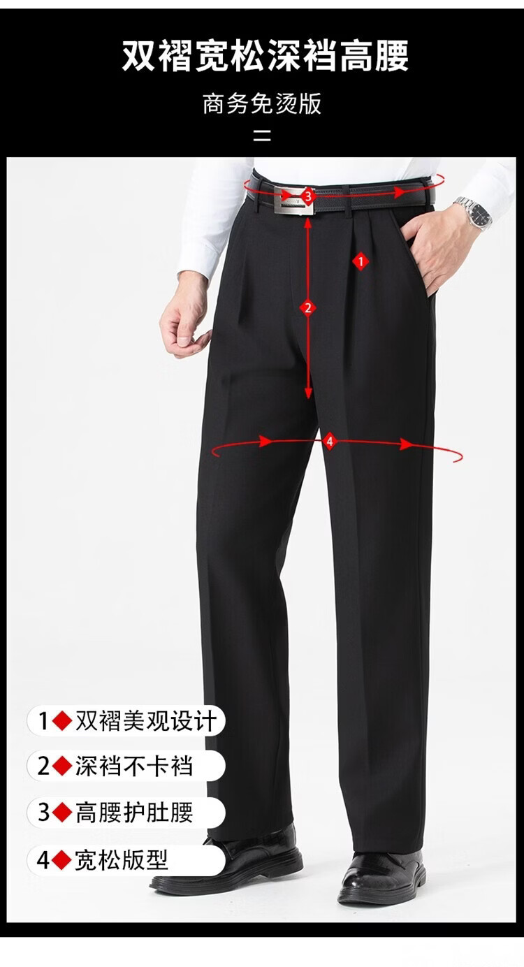 LILANG利郎羊毛西裤男高腰宽松直筒商务休闲加绒防盗口袋中老年裤 单褶蓝灰色【厚款】 常规 42 【腰围3尺2】