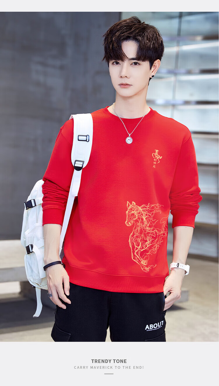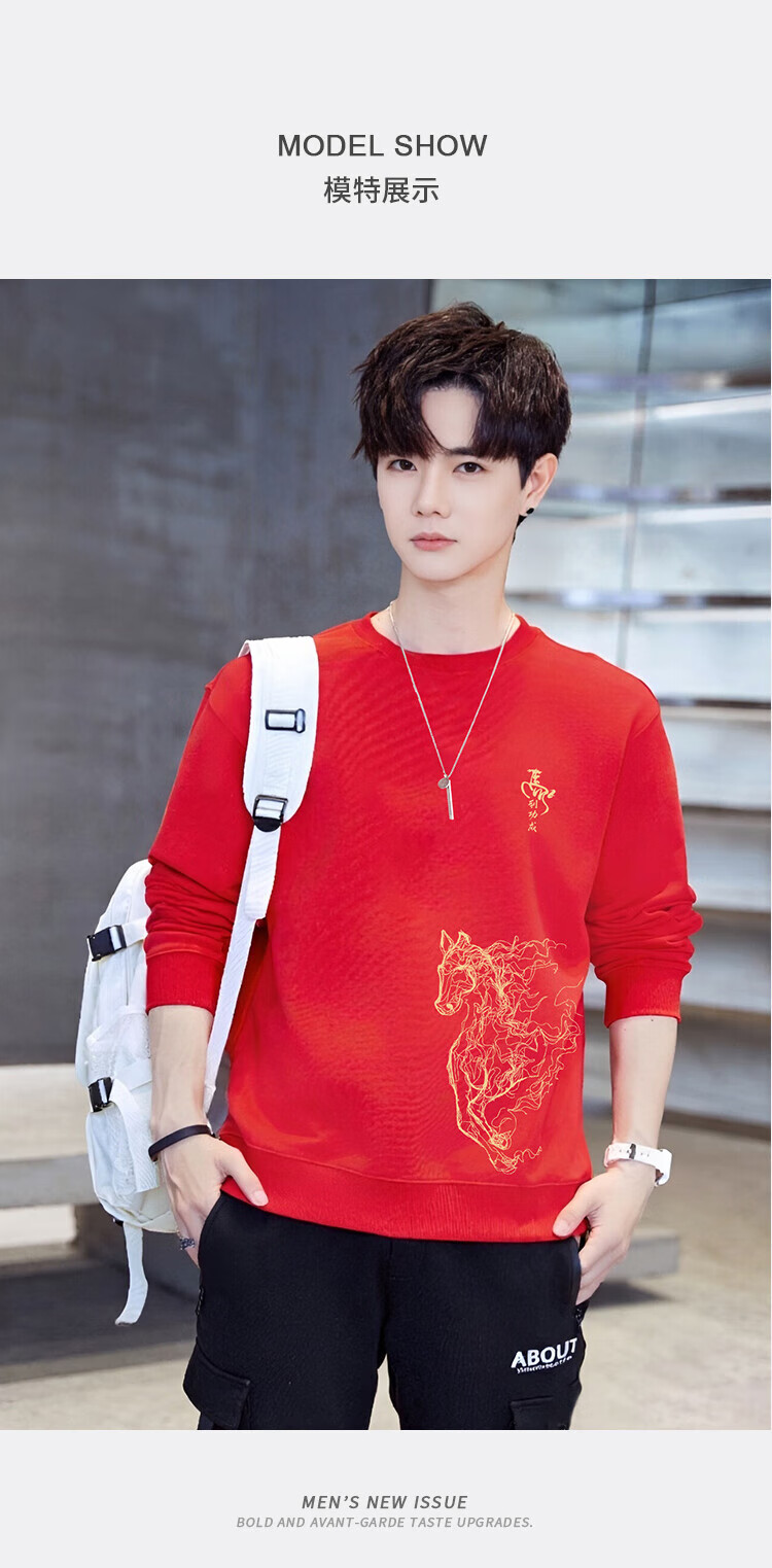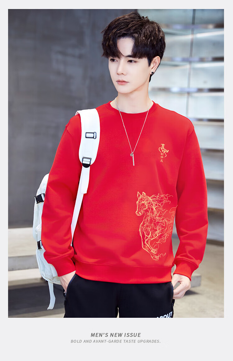 TEEK2026马年本命年衣服宽松男士卫衣国潮纯棉骏马生肖款拜年贺岁上衣 【常规款】YW2897红色 L
