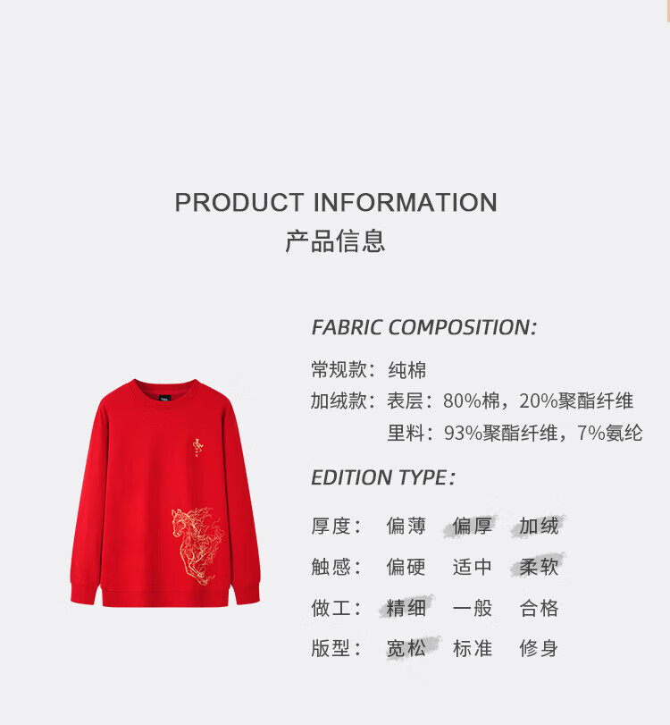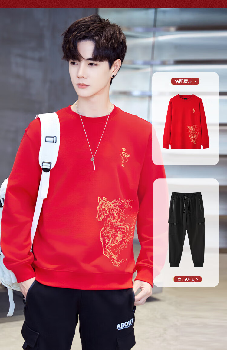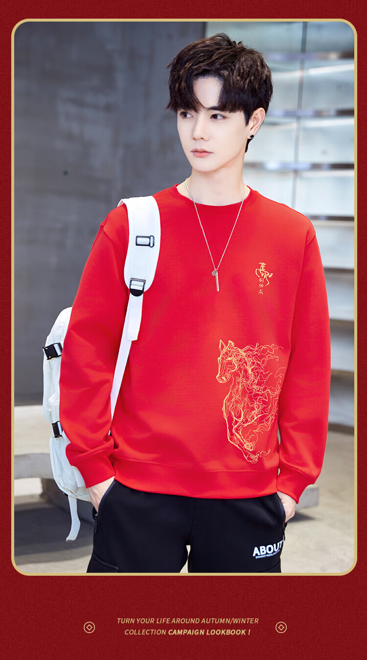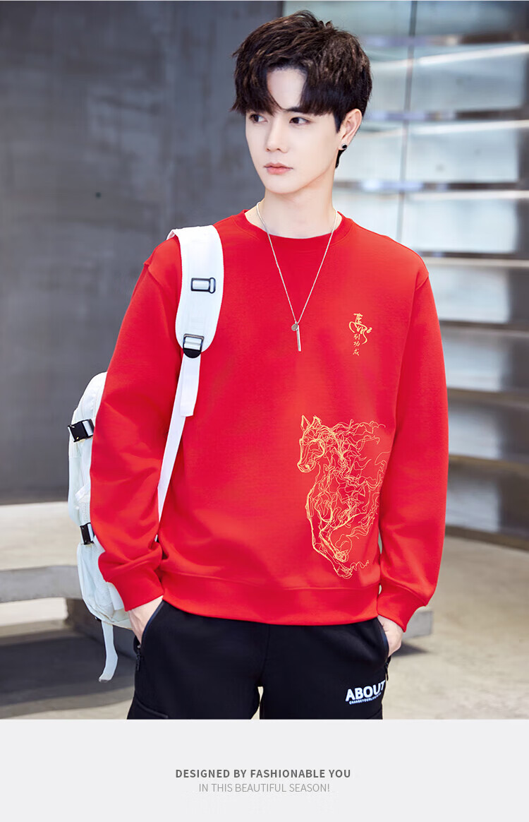 TEEK2026马年本命年衣服宽松男士卫衣国潮纯棉骏马生肖款拜年贺岁上衣 【常规款】YW2897红色 L