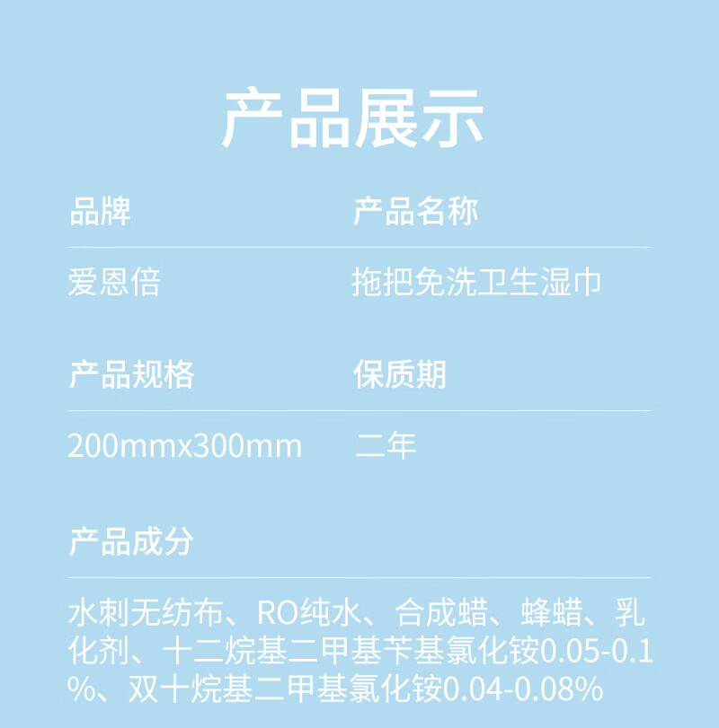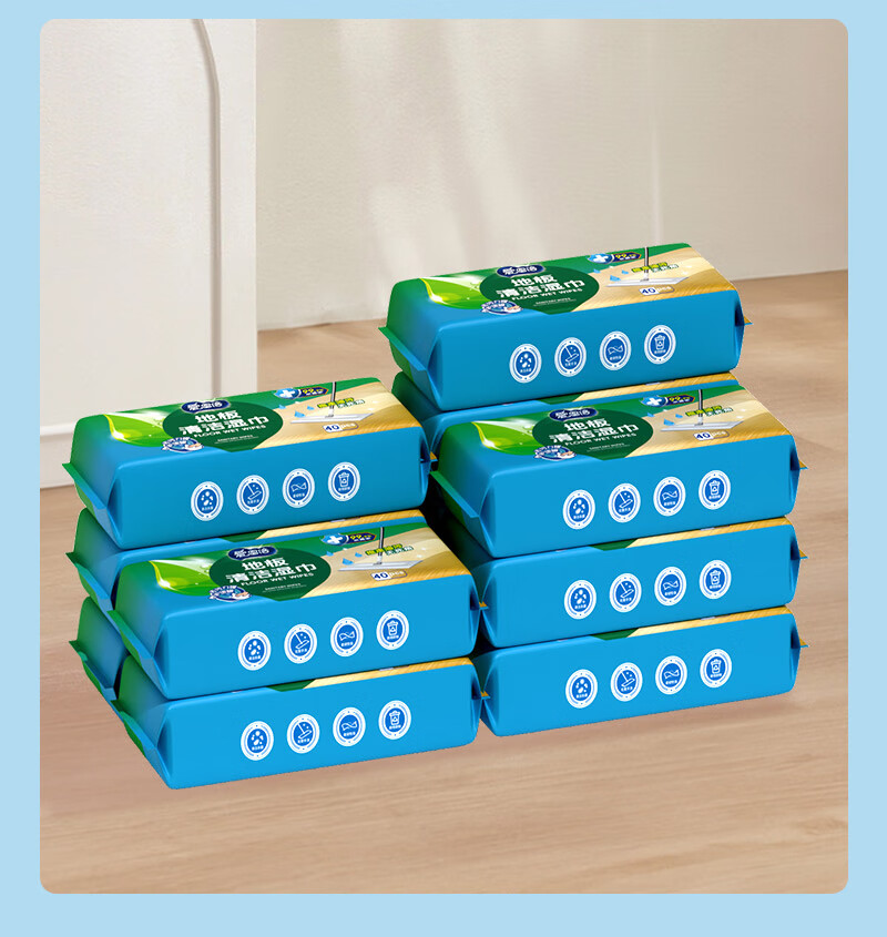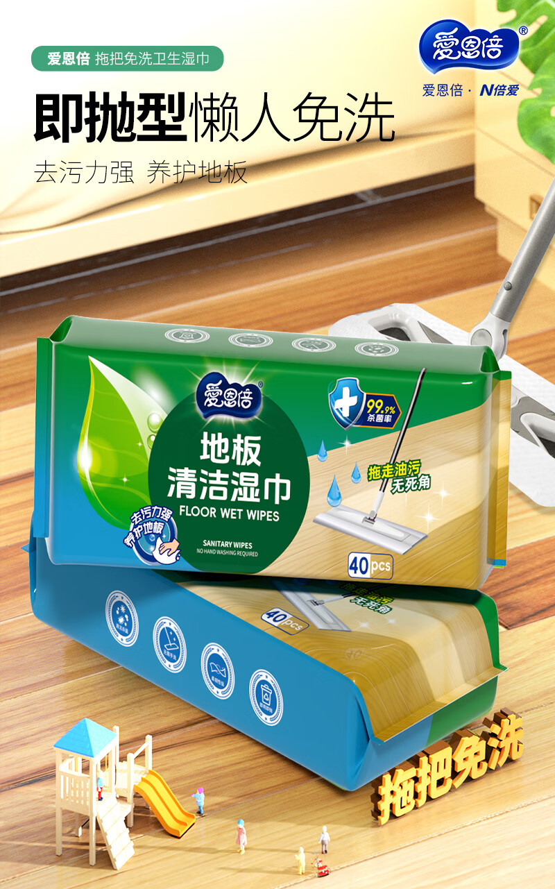 爱恩倍拖地湿巾地板清洁懒人拖把纸免洗抹布除尘一次性擦地湿纸巾 40片*2包