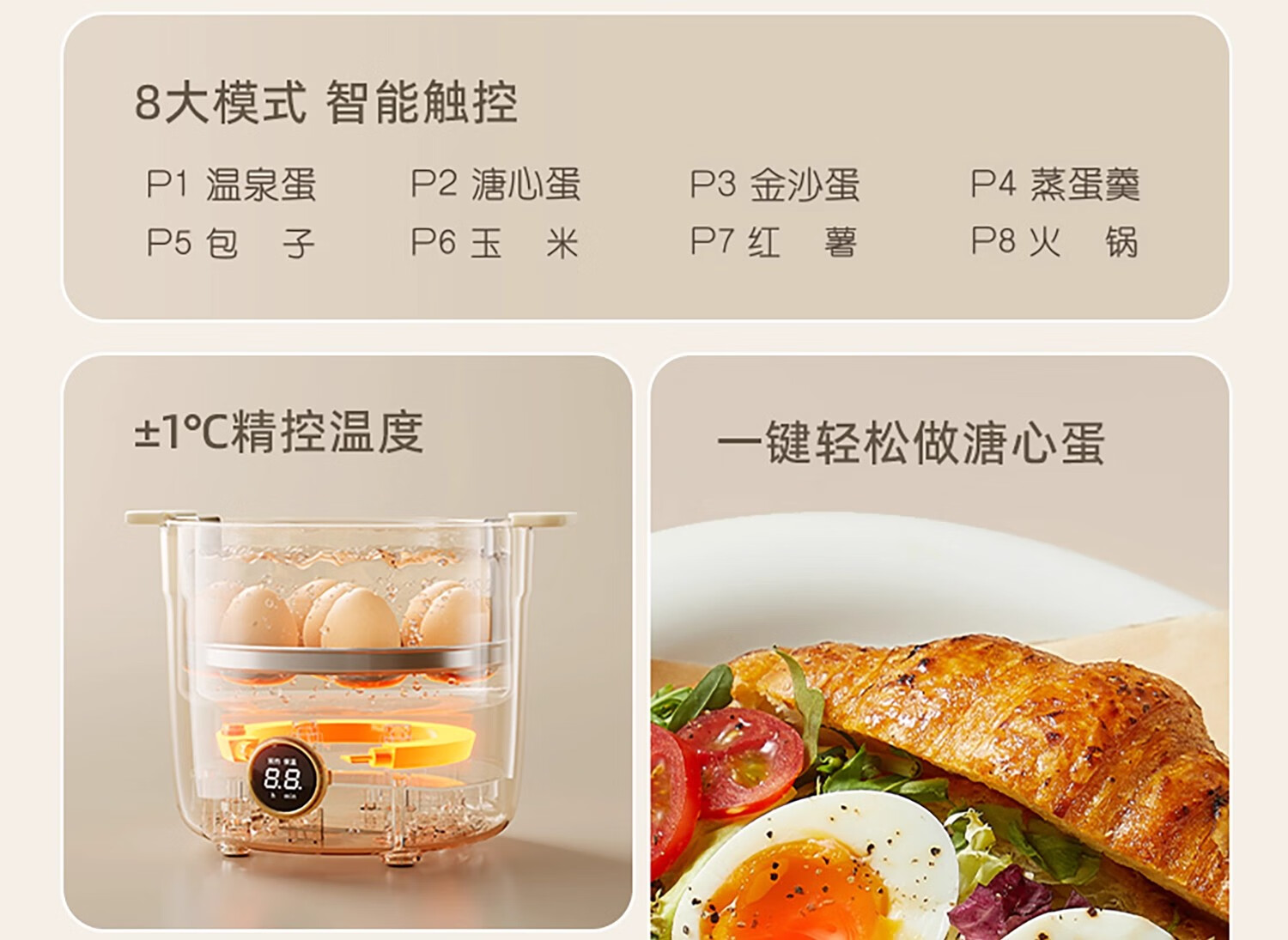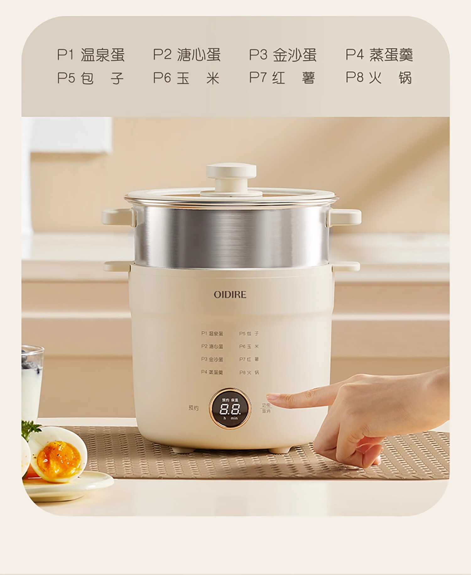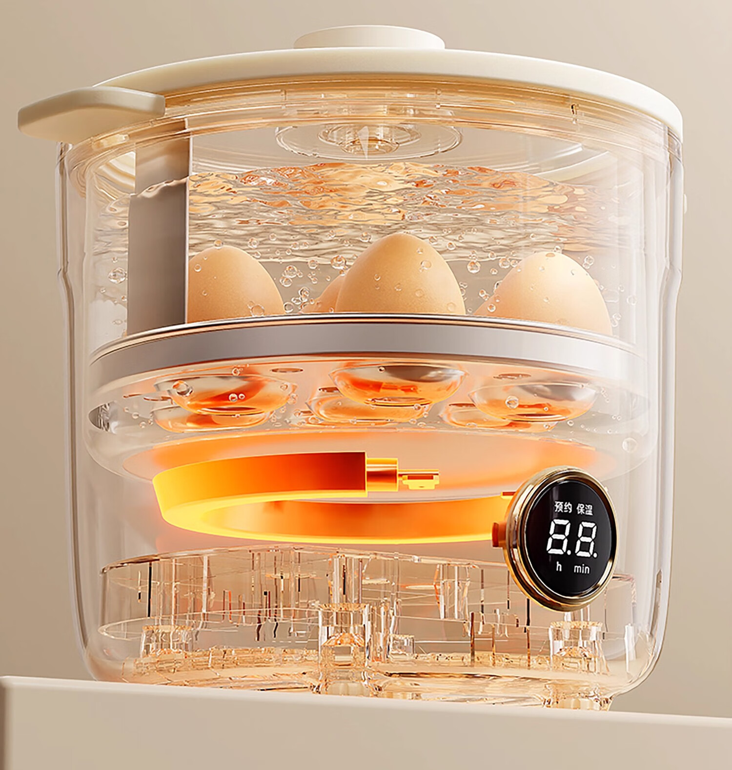 SEBAMHO 香巴赫德国煮蛋器自动断电家用小型烹饪机煮鸡蛋机神器2025新款蒸蛋器 双层 蒸笼款【一键溏心蛋-304无缝内胆-预约定时】