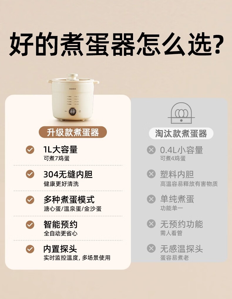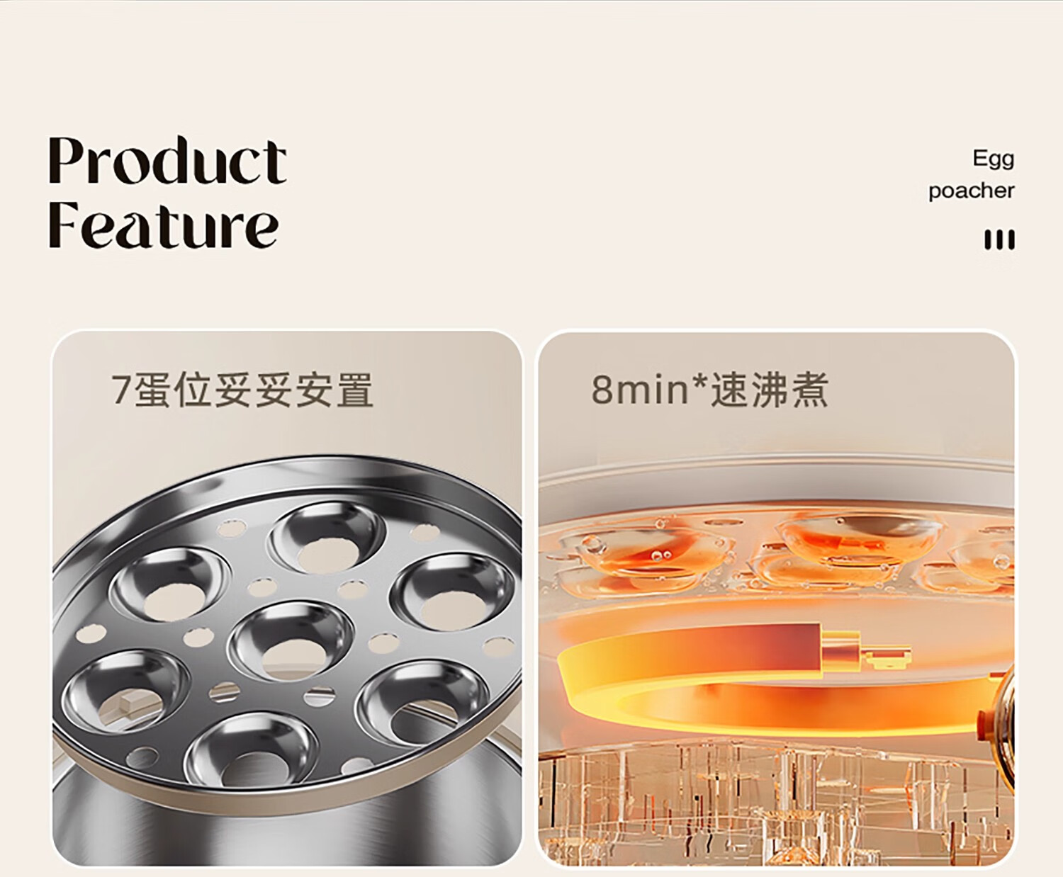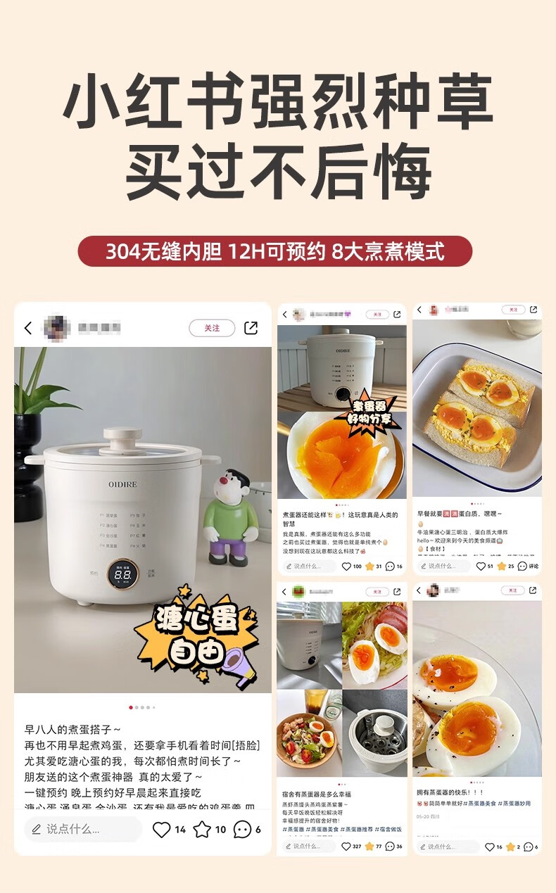 SEBAMHO 香巴赫德国煮蛋器自动断电家用小型烹饪机煮鸡蛋机神器2025新款蒸蛋器 双层 蒸笼款【一键溏心蛋-304无缝内胆-预约定时】