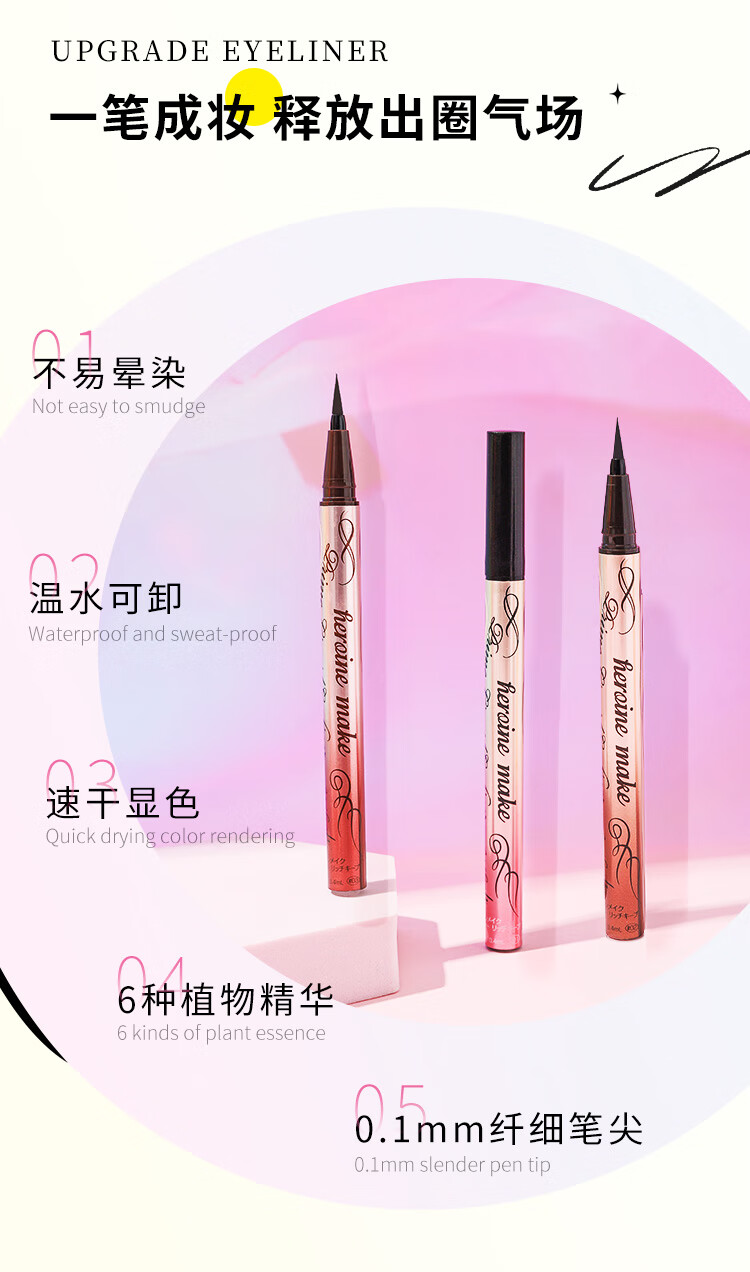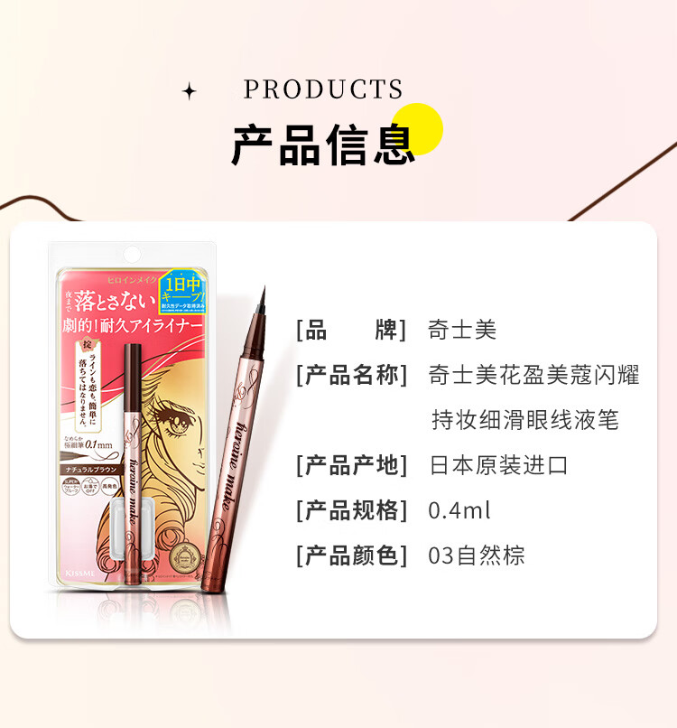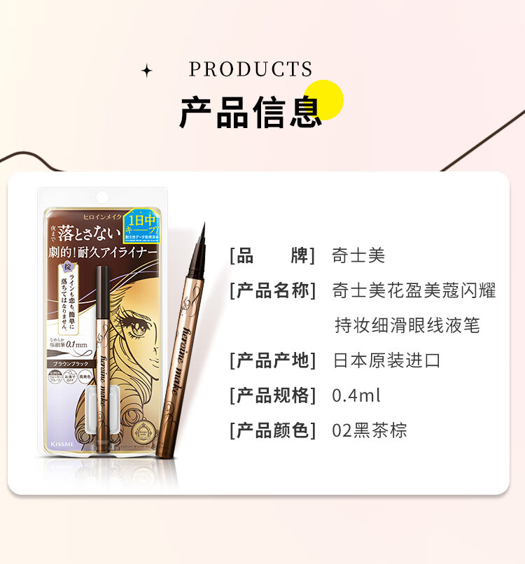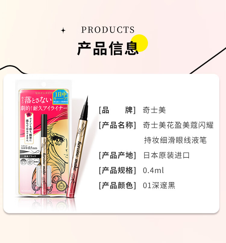 奇士美(kiss me)花盈美蔻闪耀持妆细滑眼线液笔0.4ml(日本进口) 01深邃黑