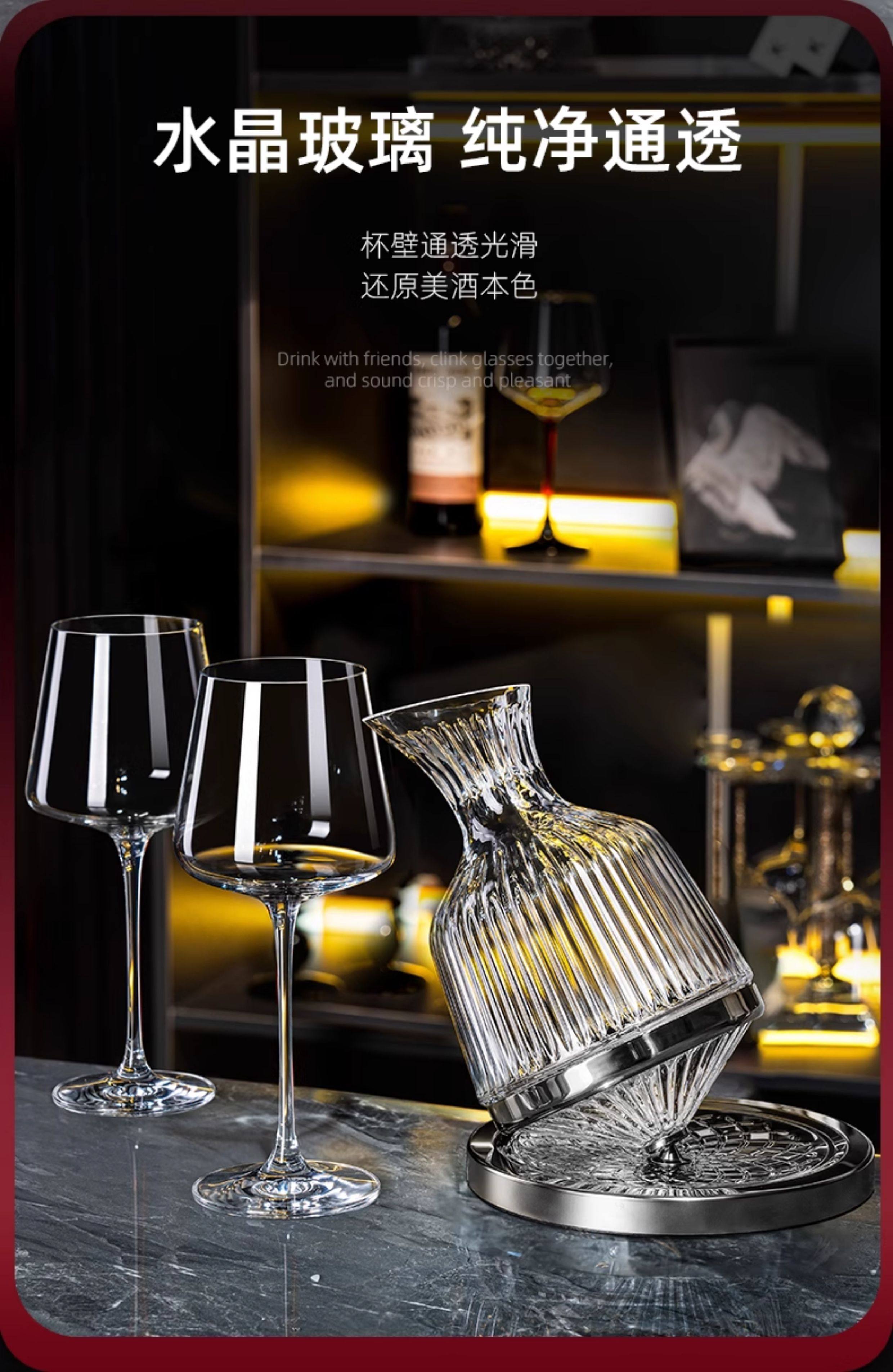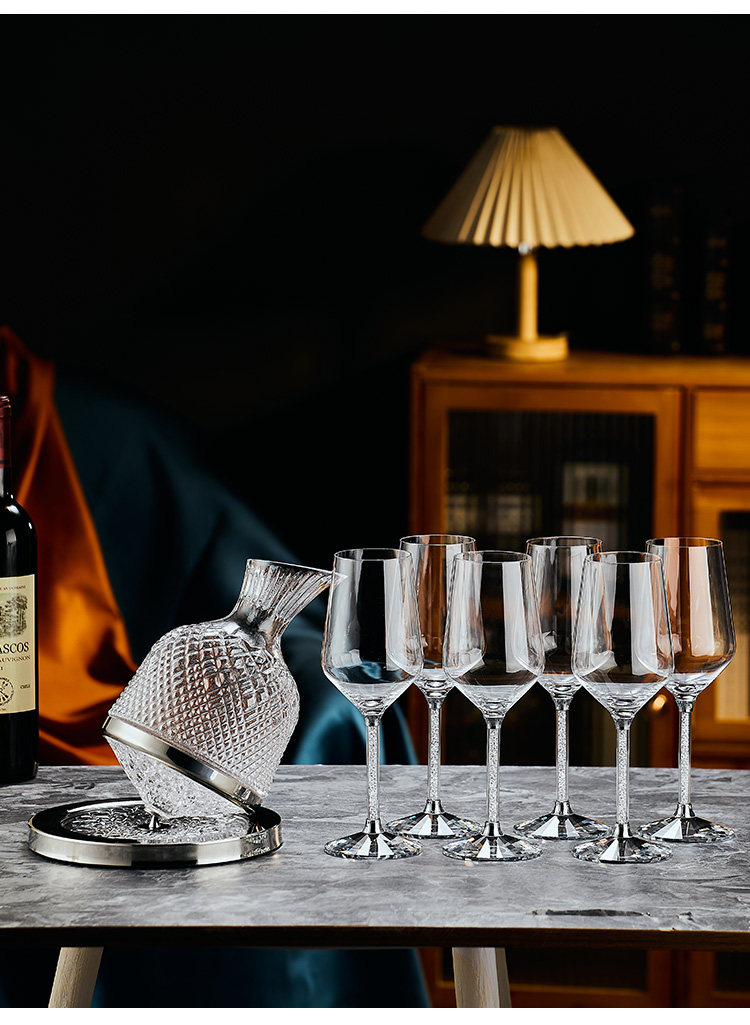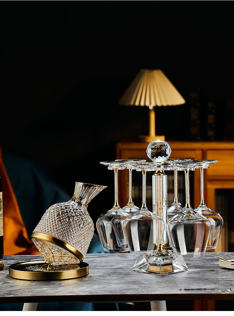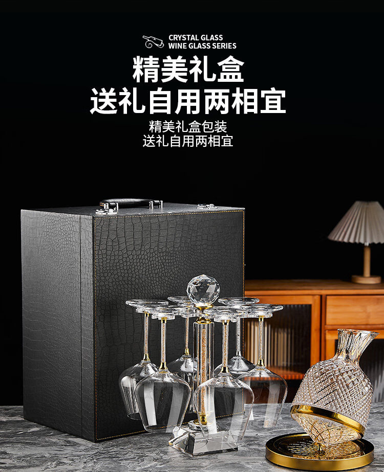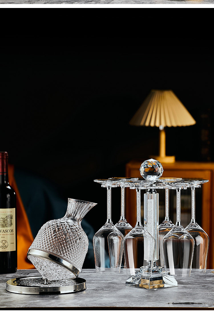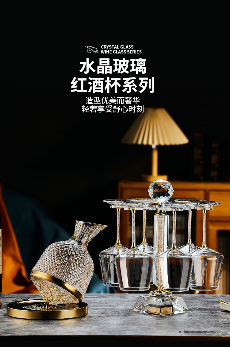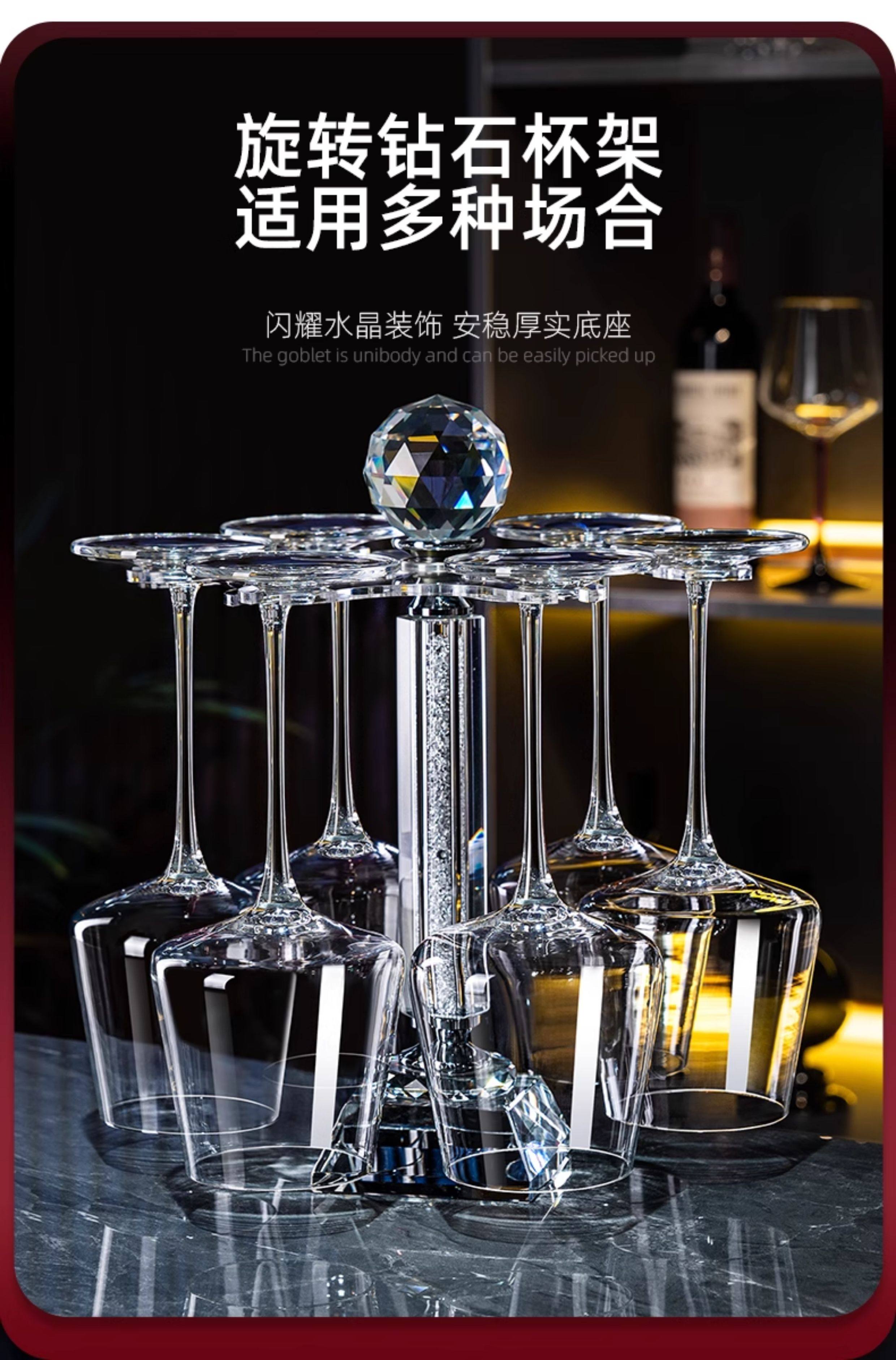 禾达拉高档红酒杯套装水晶玻璃酒杯高脚杯家用酒具高颜值醒酒器三件套 水晶450ml红酒杯6只+白钻杯架+陀螺醒酒器