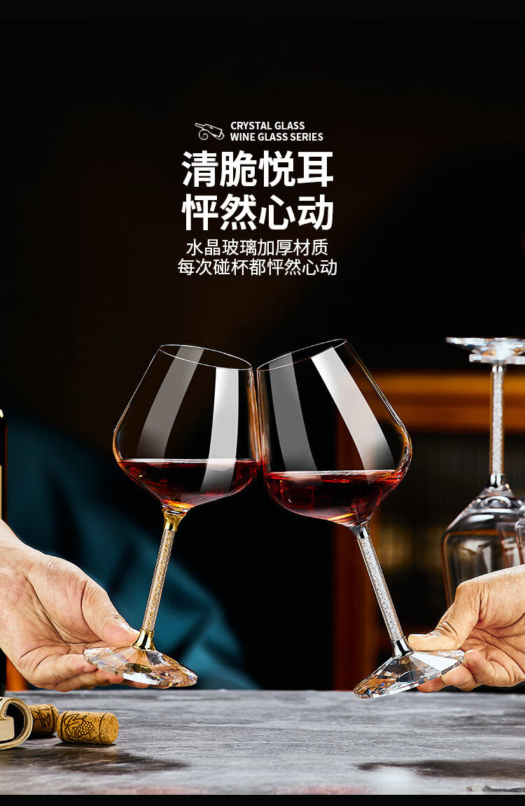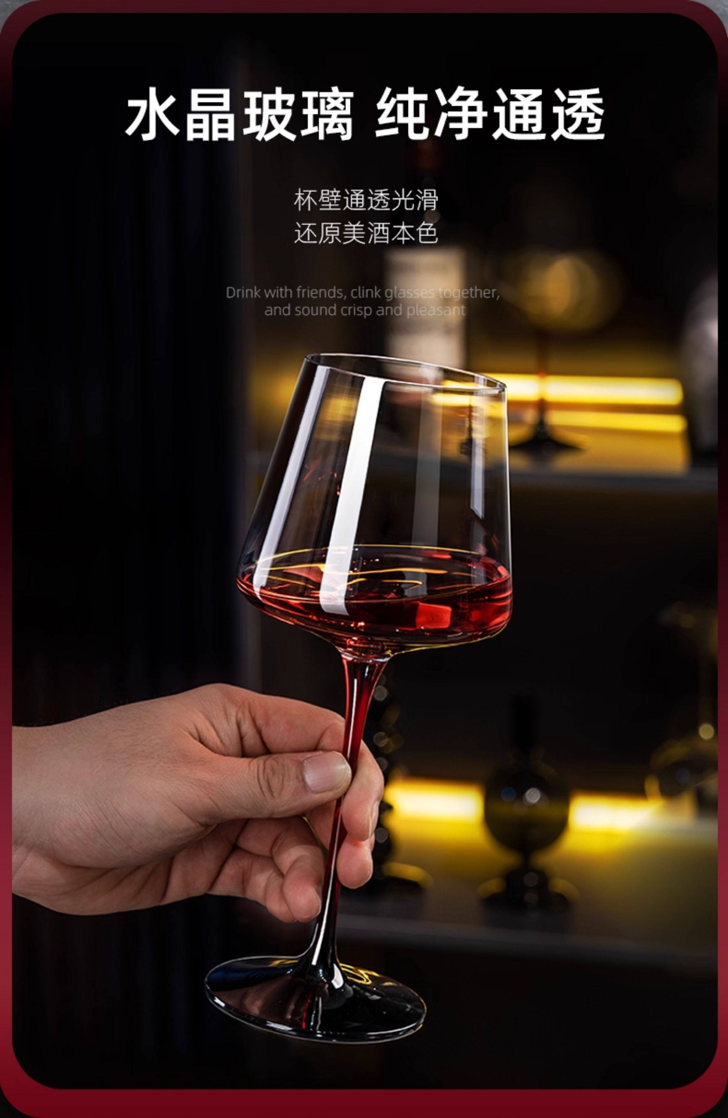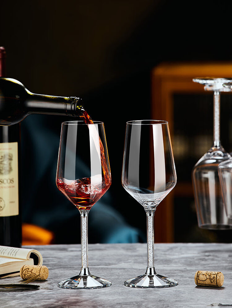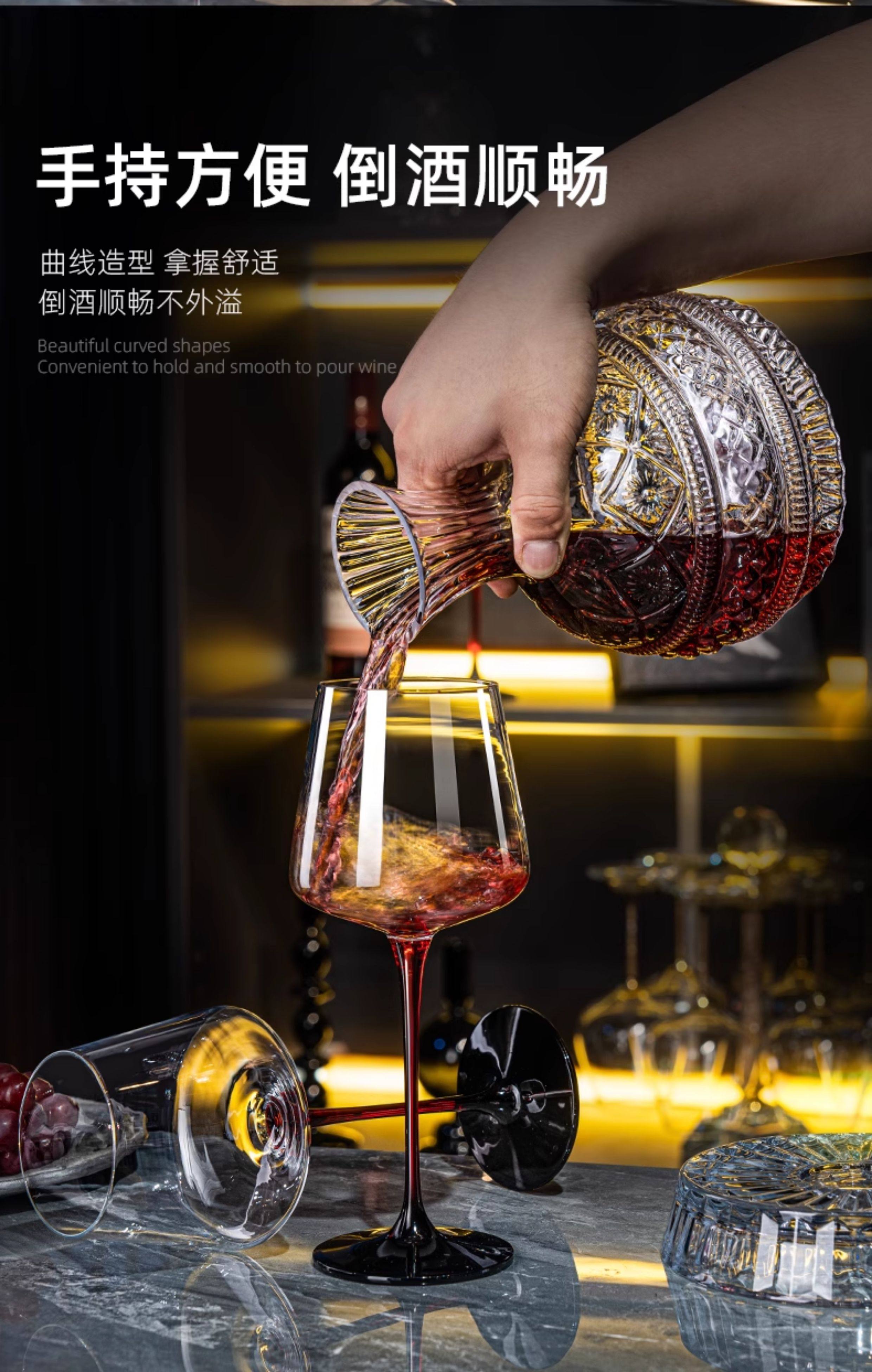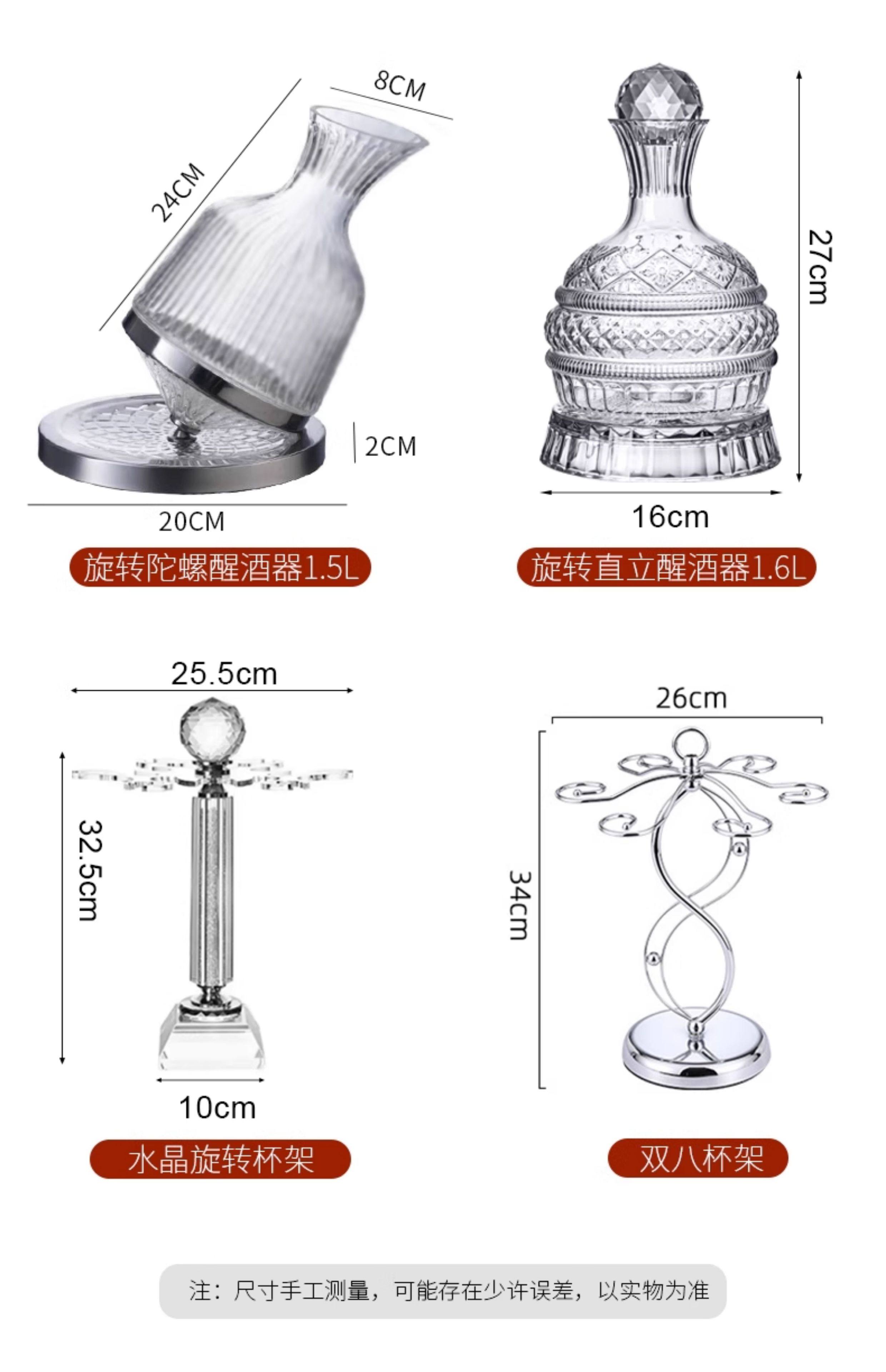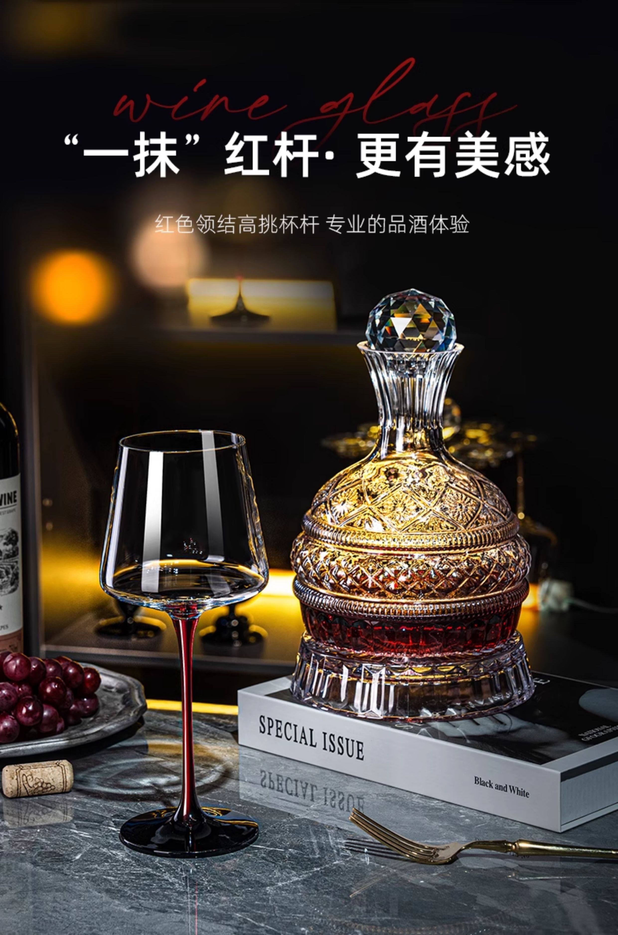 禾达拉高档红酒杯套装水晶玻璃酒杯高脚杯家用酒具高颜值醒酒器三件套 水晶450ml红酒杯6只+白钻杯架+陀螺醒酒器