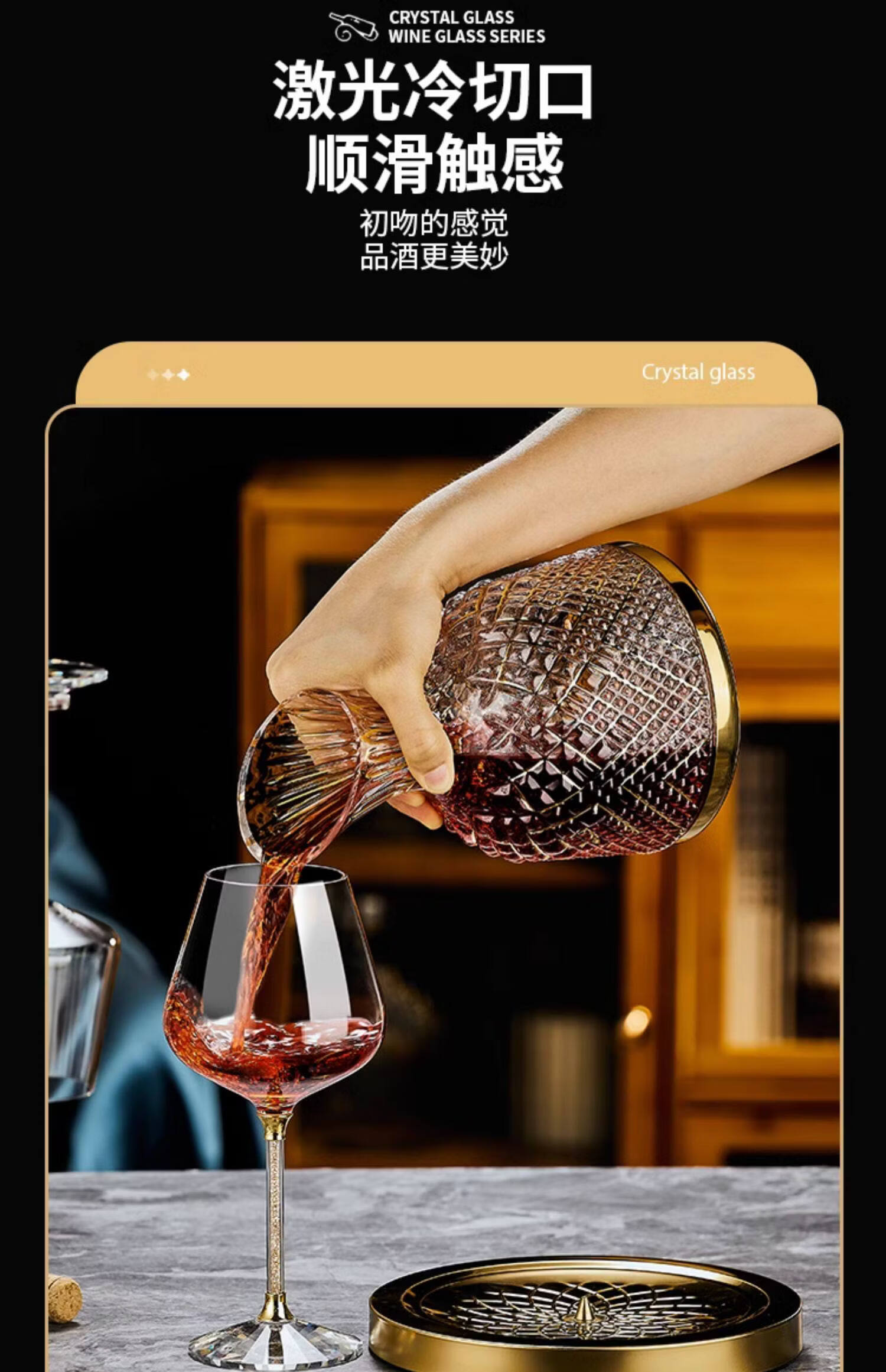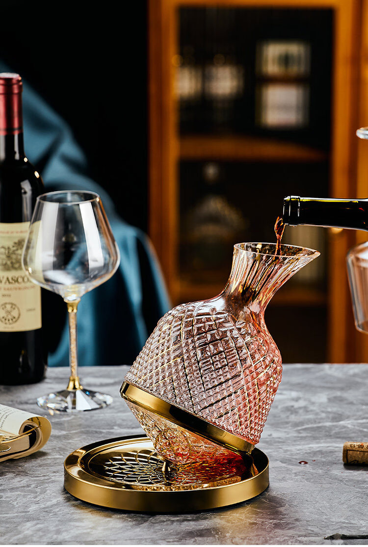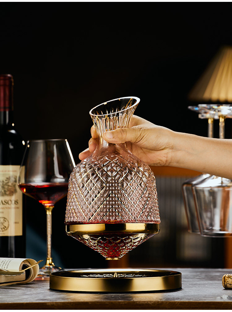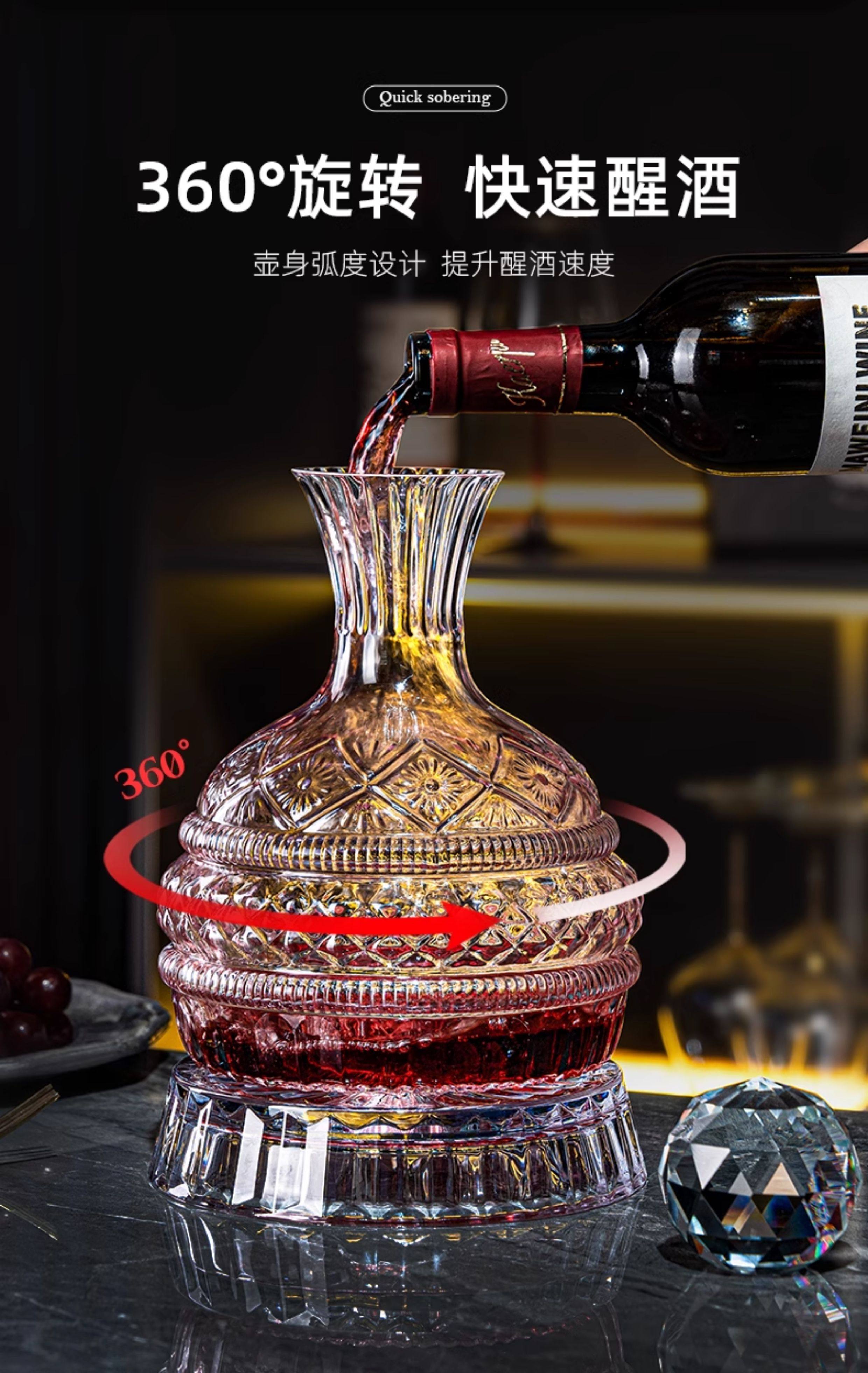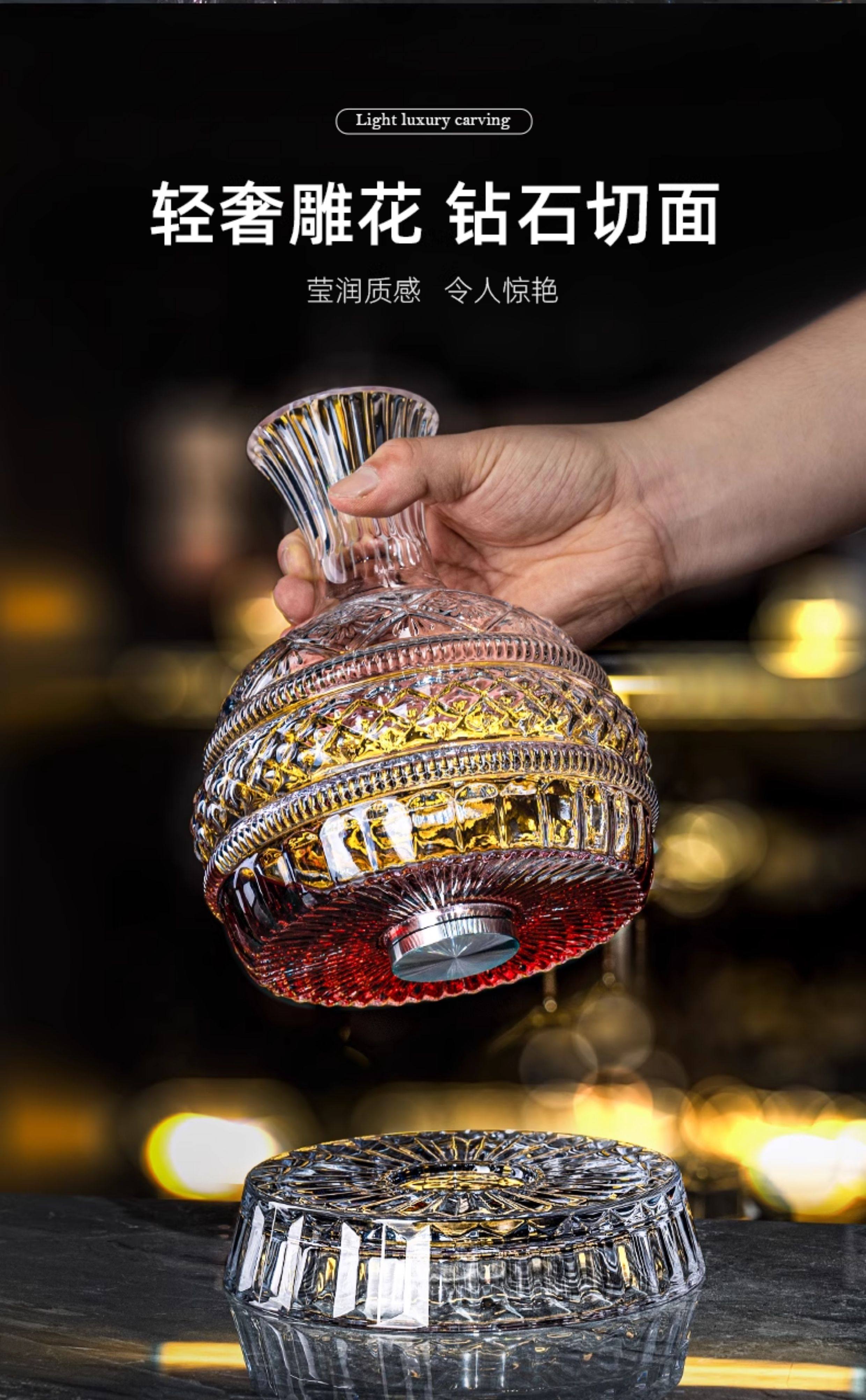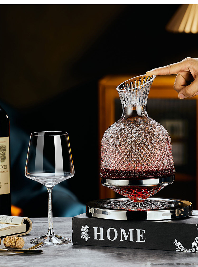 禾达拉高档红酒杯套装水晶玻璃酒杯高脚杯家用酒具高颜值醒酒器三件套 水晶450ml红酒杯6只+白钻杯架+陀螺醒酒器