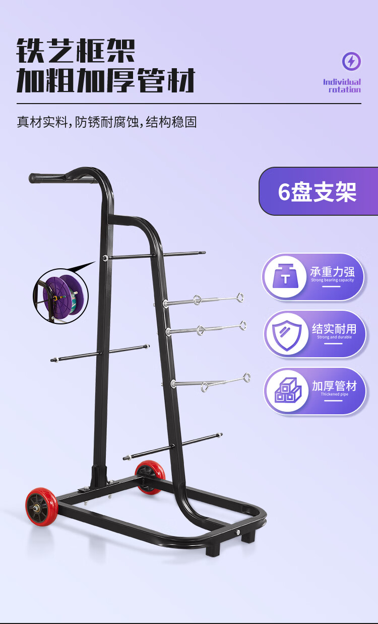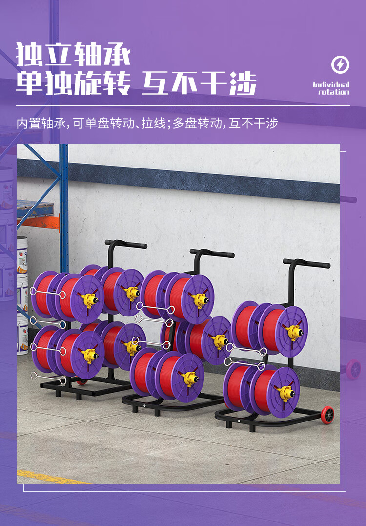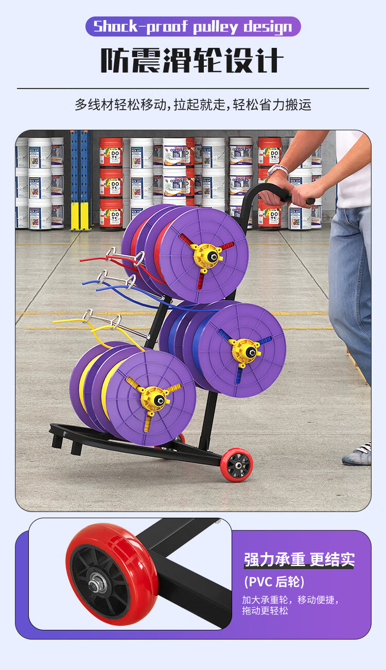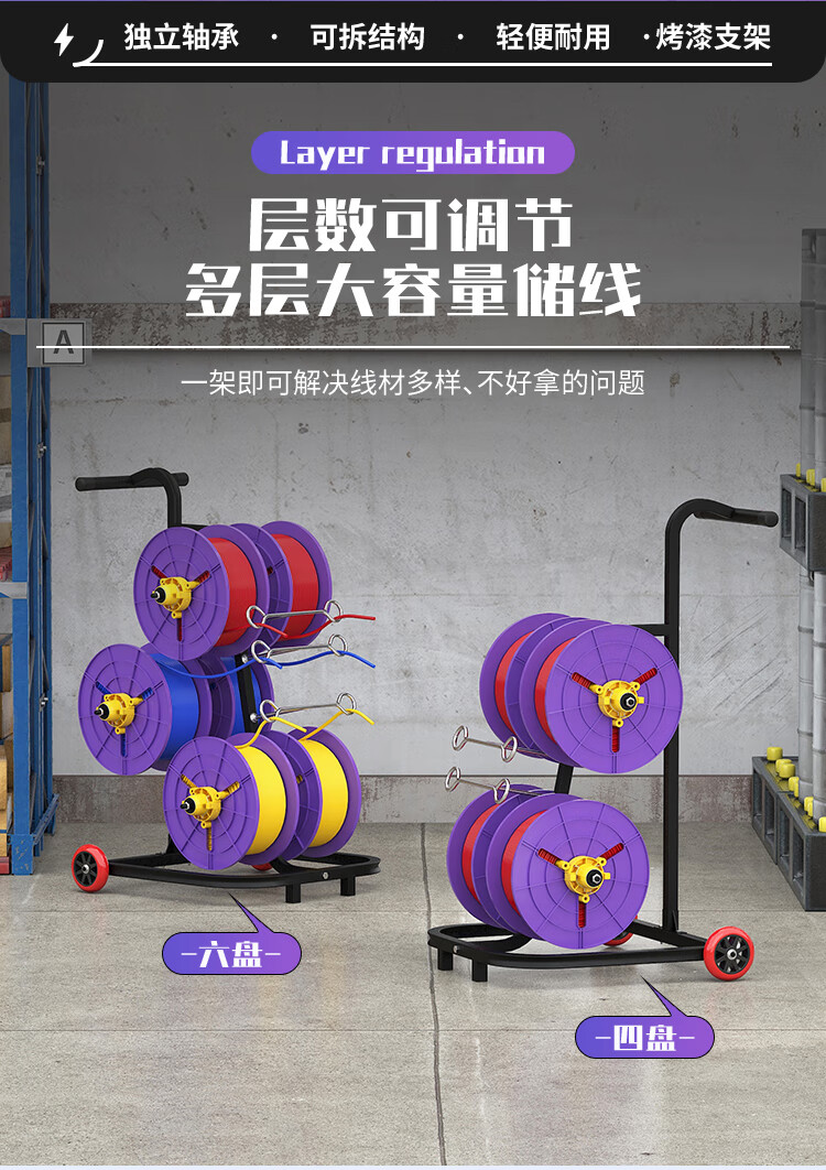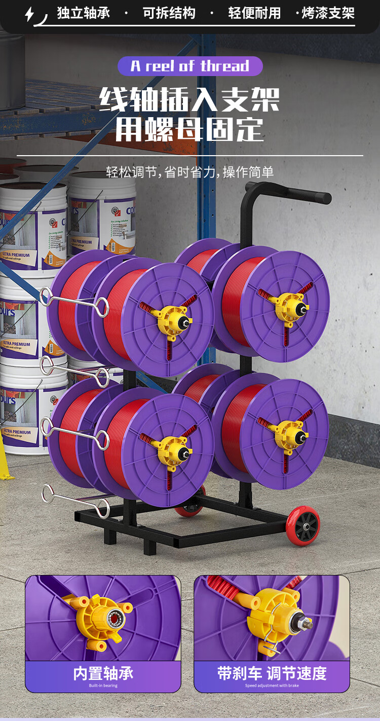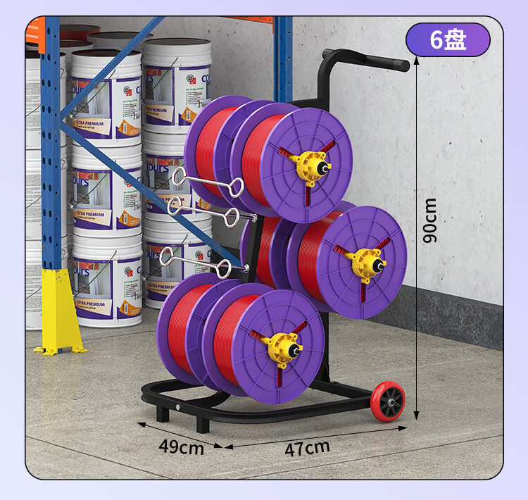新款立式电工放线器快速装线放线盘1-10平方放线神器带轮放线架 塑料盘 6盘轴承拉车款 (老款)