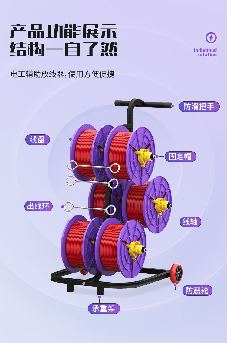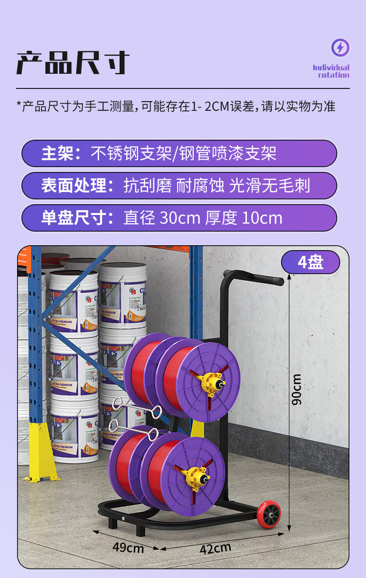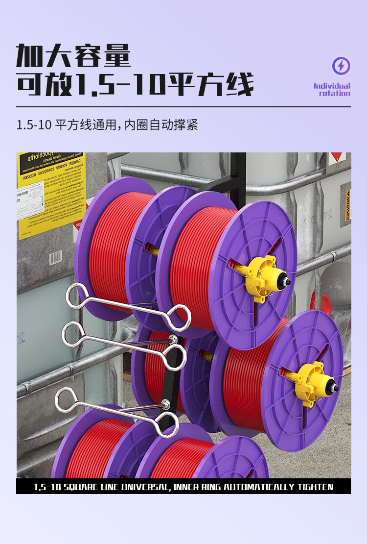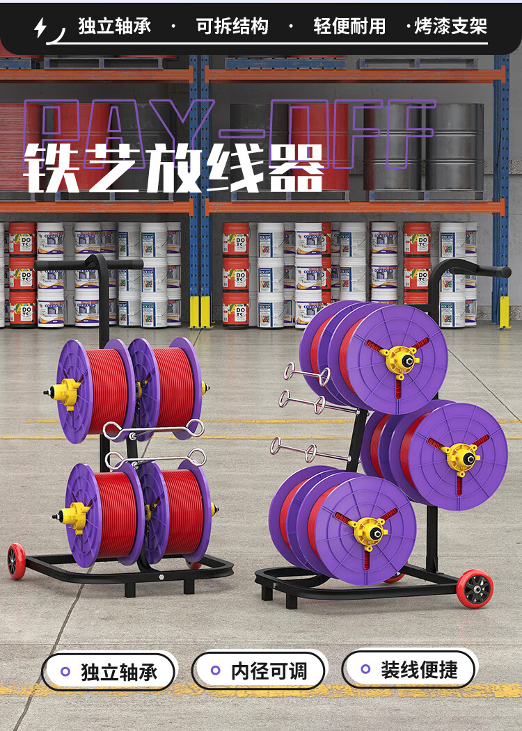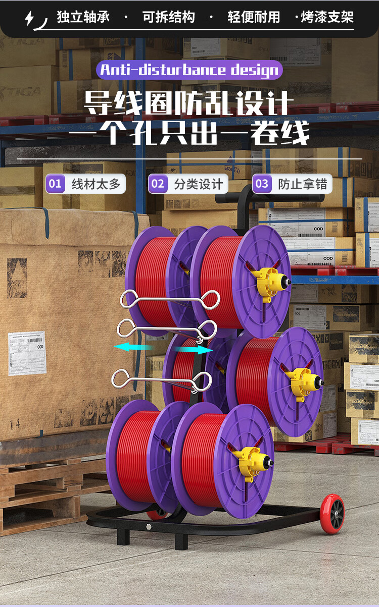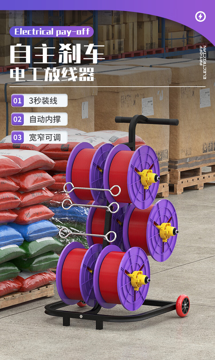 新款立式电工放线器快速装线放线盘1-10平方放线神器带轮放线架 塑料盘 6盘轴承拉车款 (老款)