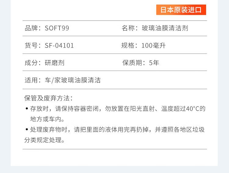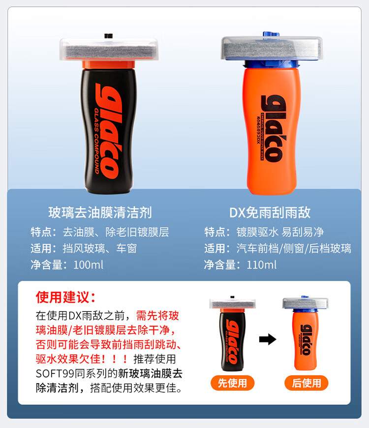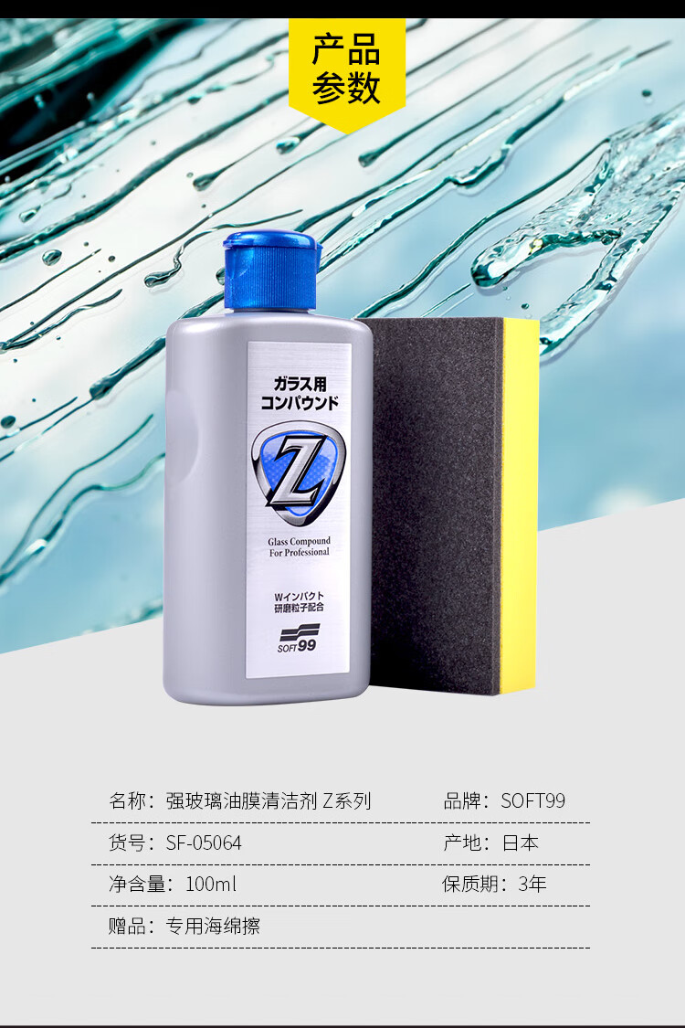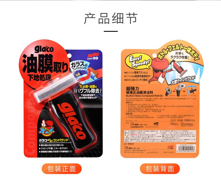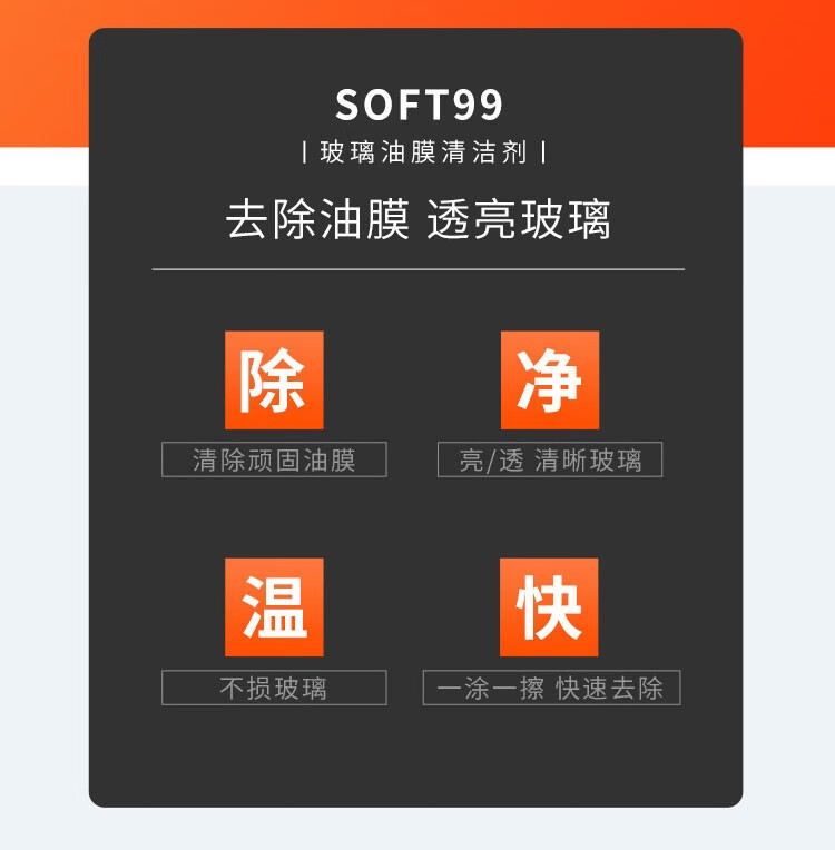 SOFT99玻璃油膜去除剂 汽车挡风玻璃去油膜清洁剂 除油膜水痕清洗剂 高浓新款(去虫胶) 270g 1瓶