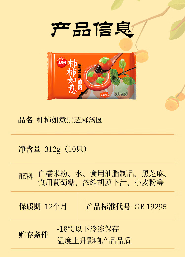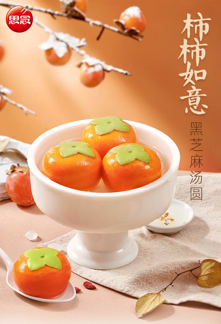 思念柿柿如意汤圆黑芝麻汤圆 招财进宝汤圆元宵汤圆速冻早餐点心 小柿也如意240g