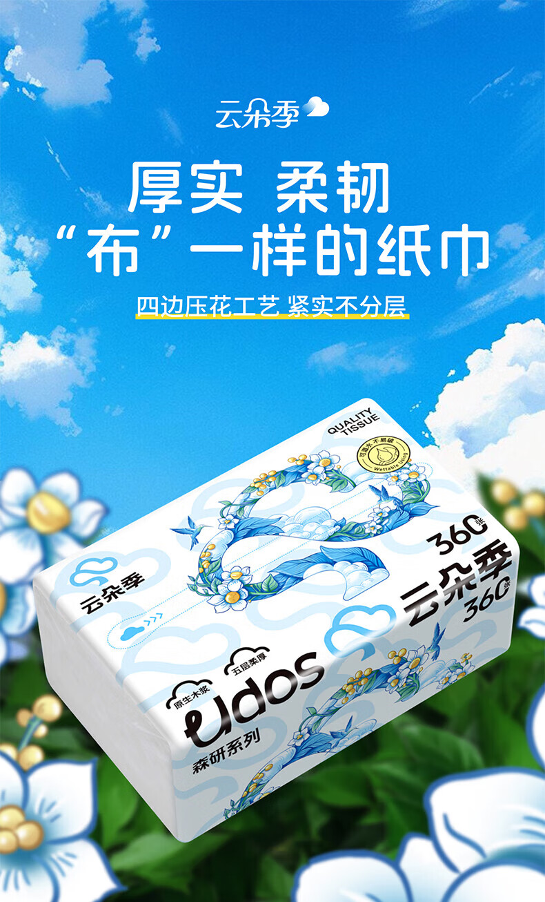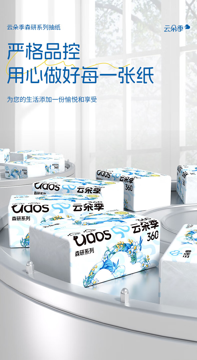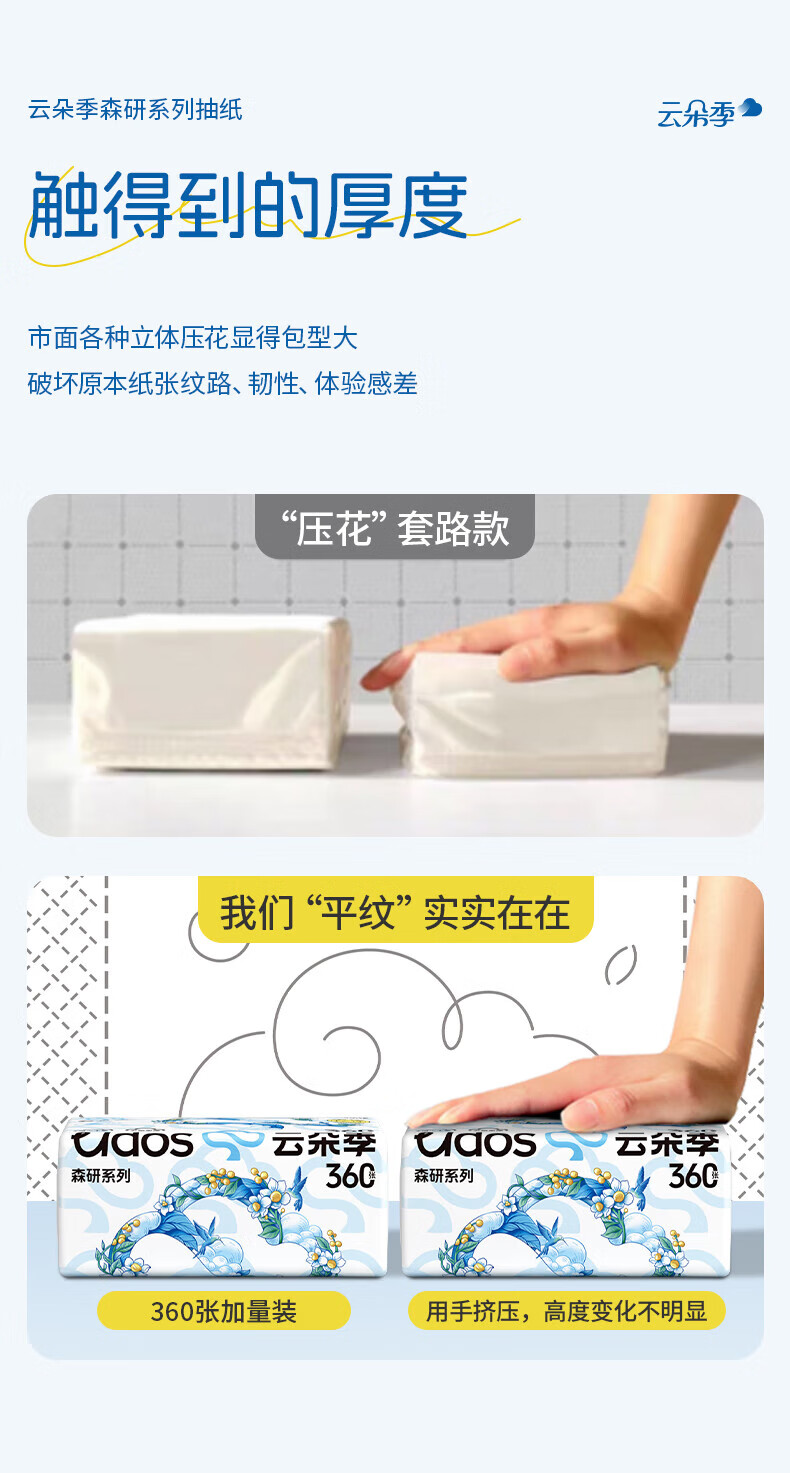 云朵季加厚大包抽纸纸巾整箱优等品质面巾纸M码医护级家用餐巾纸卫生纸 5层 360张*24包