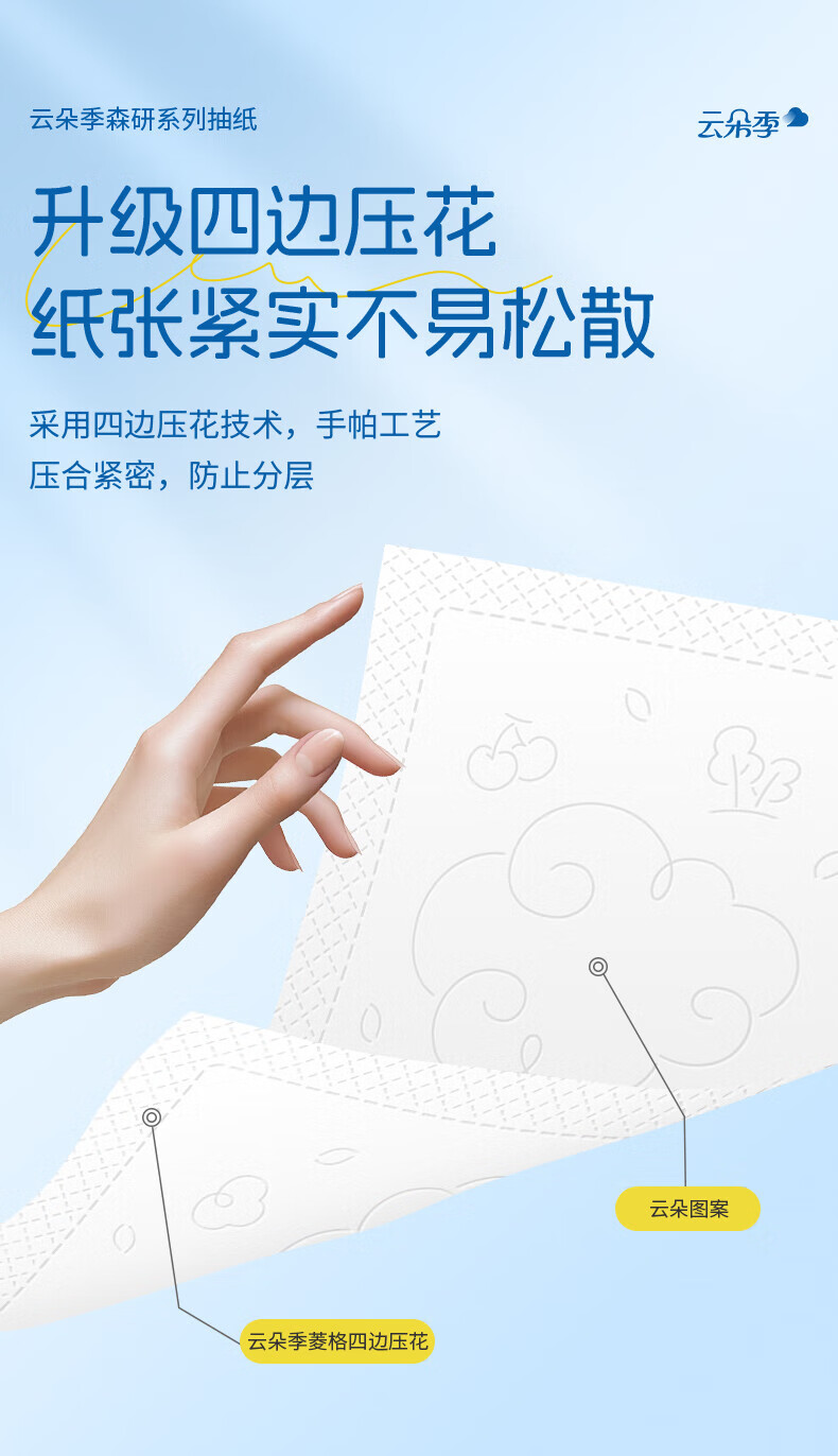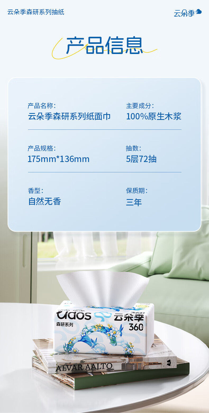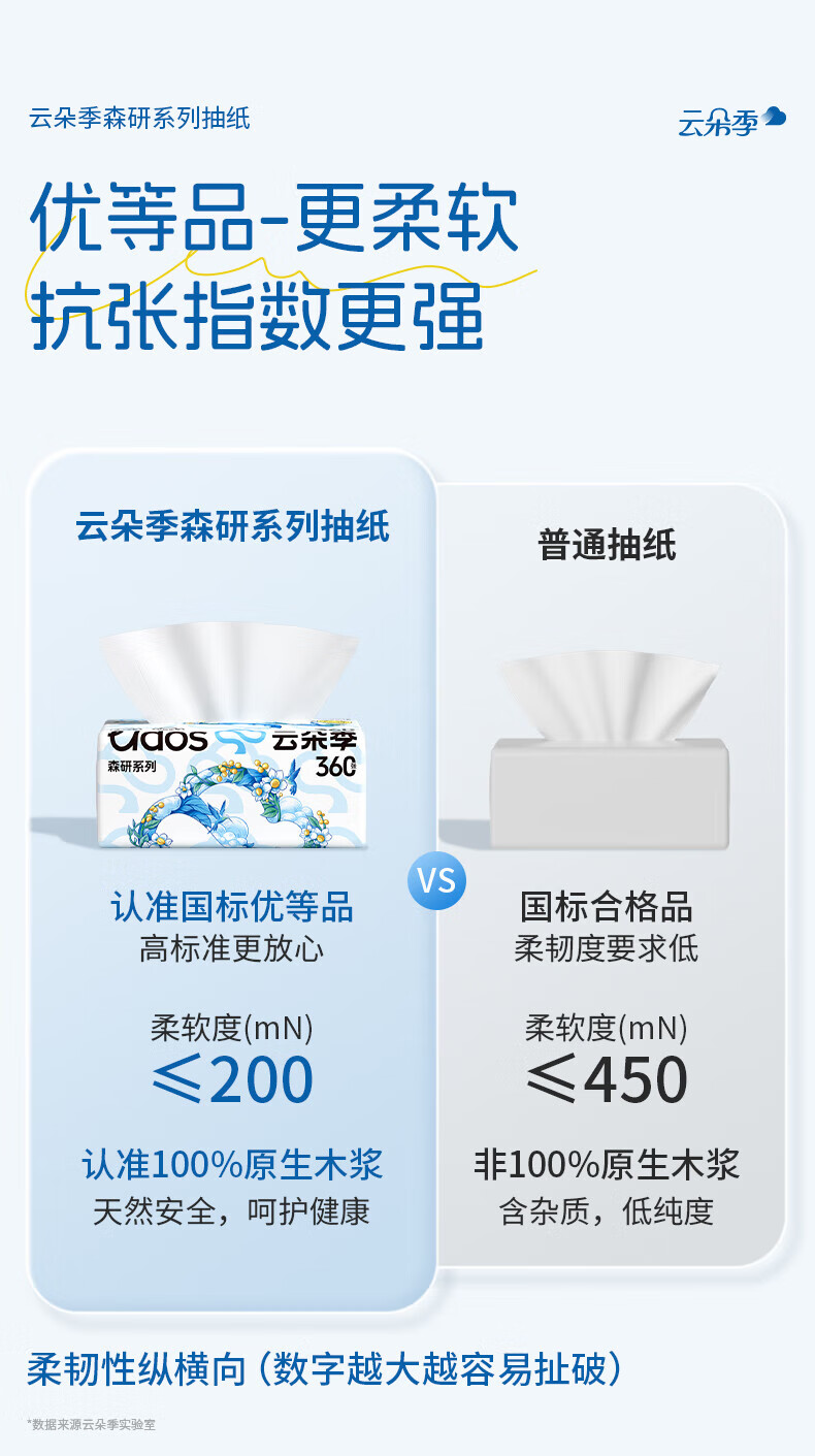 云朵季加厚大包抽纸纸巾整箱优等品质面巾纸M码医护级家用餐巾纸卫生纸 5层 360张*24包