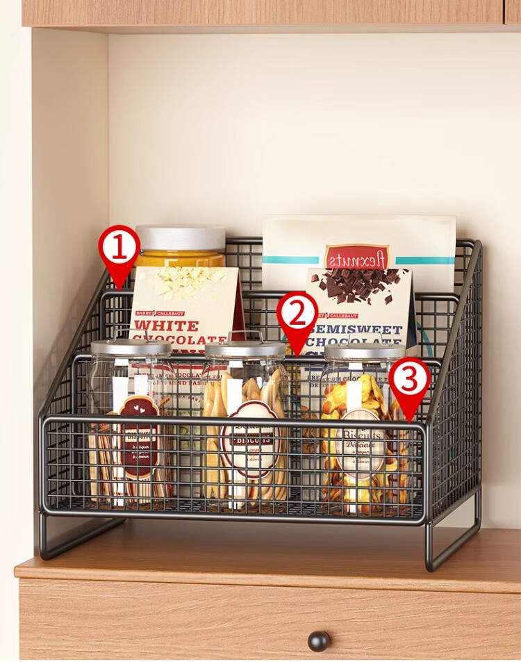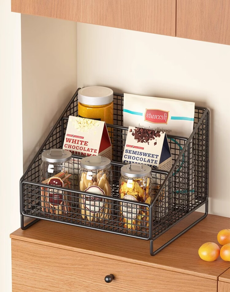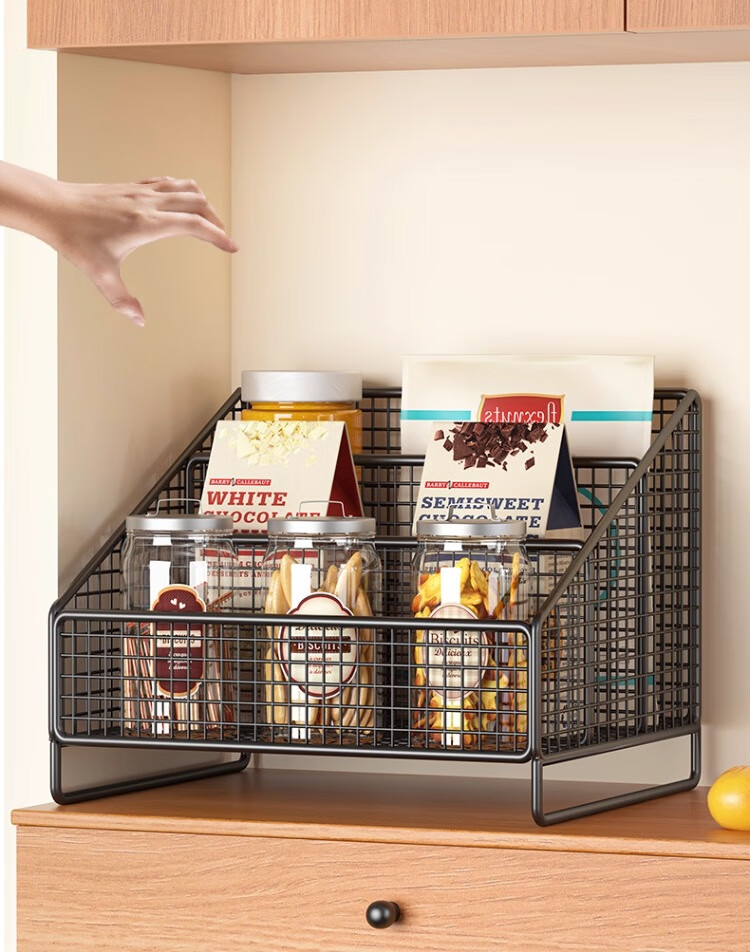 尔思家厨房置物架调料用品收纳盒家用杯架台面多功能调味品分格储物架子 黑色大号