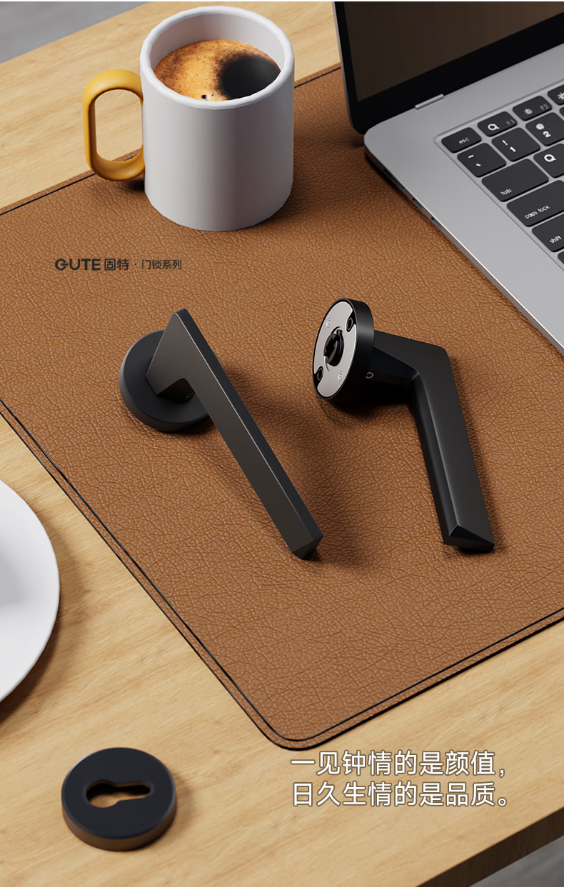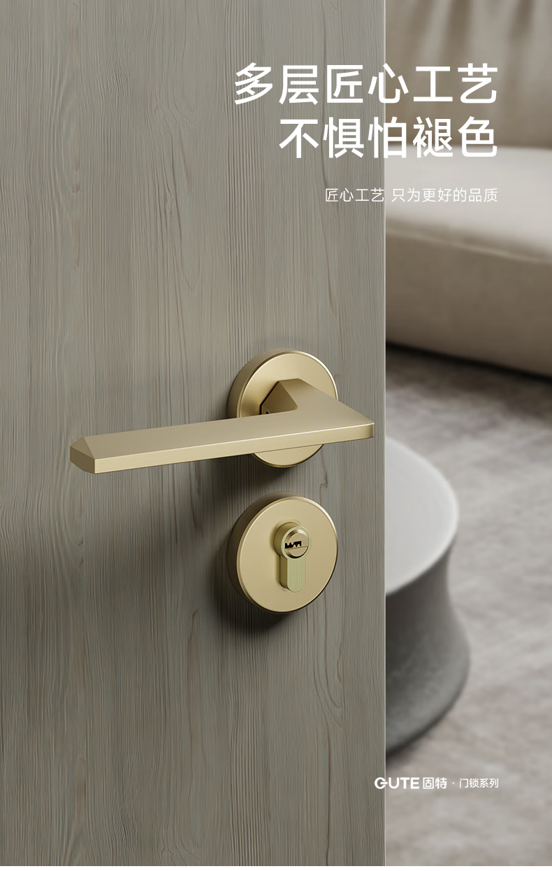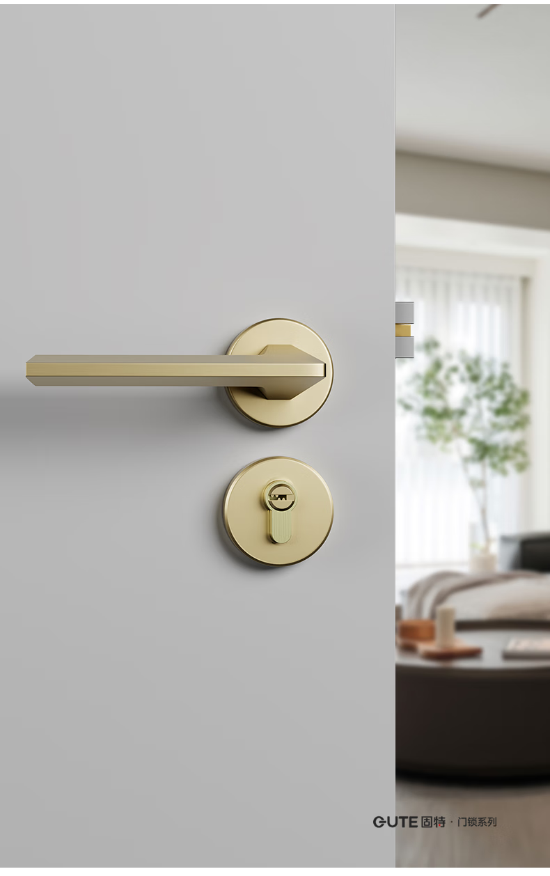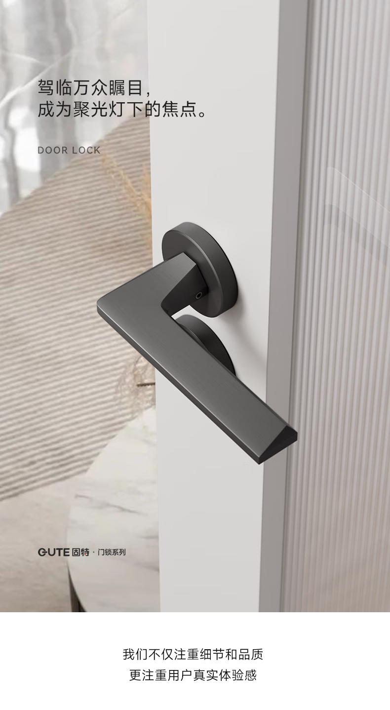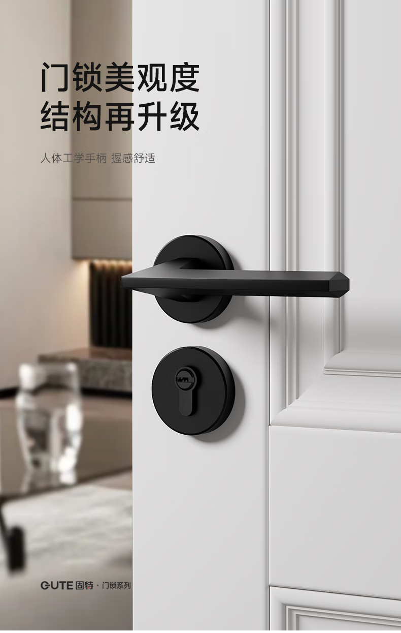 固特室内卧室现代简约执手锁入户门把手静音门锁木门卫生间分体锁具 6805黑色