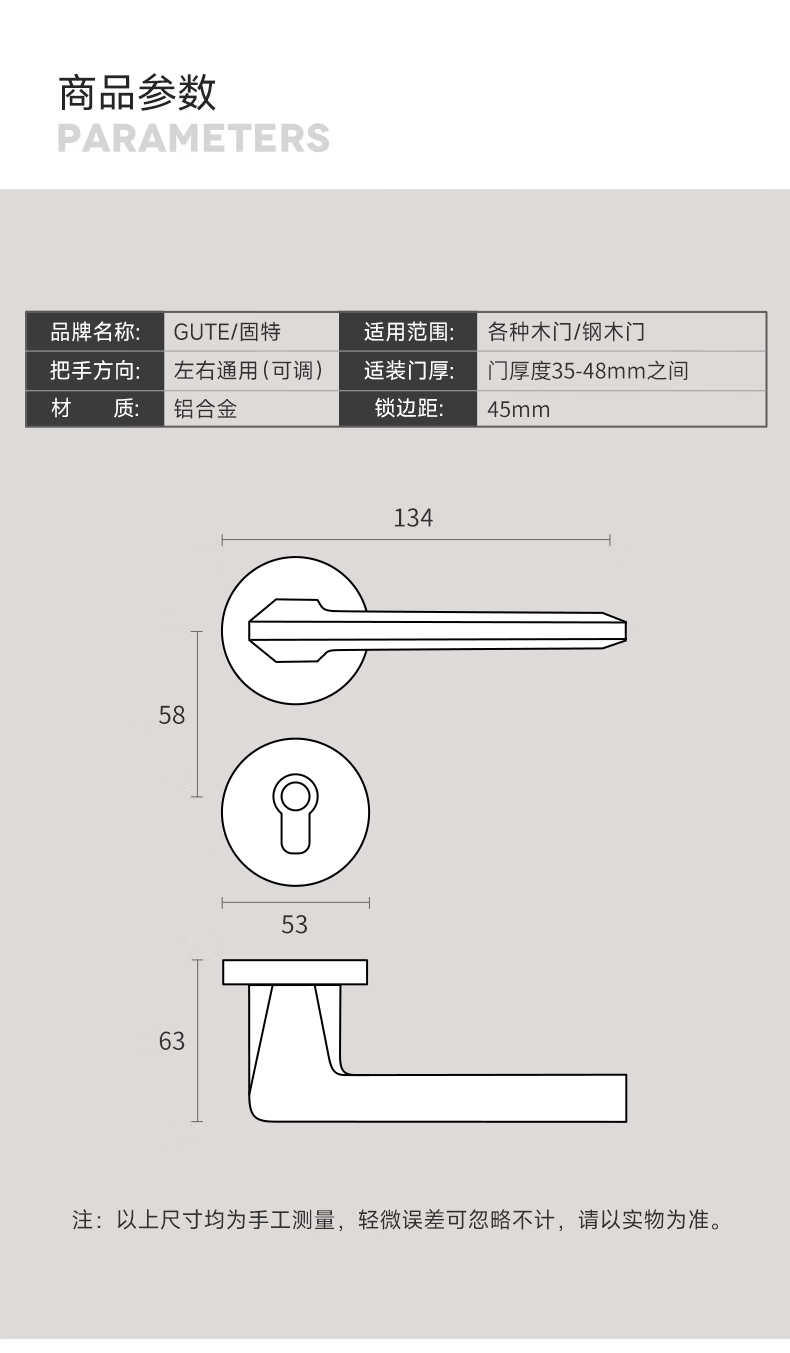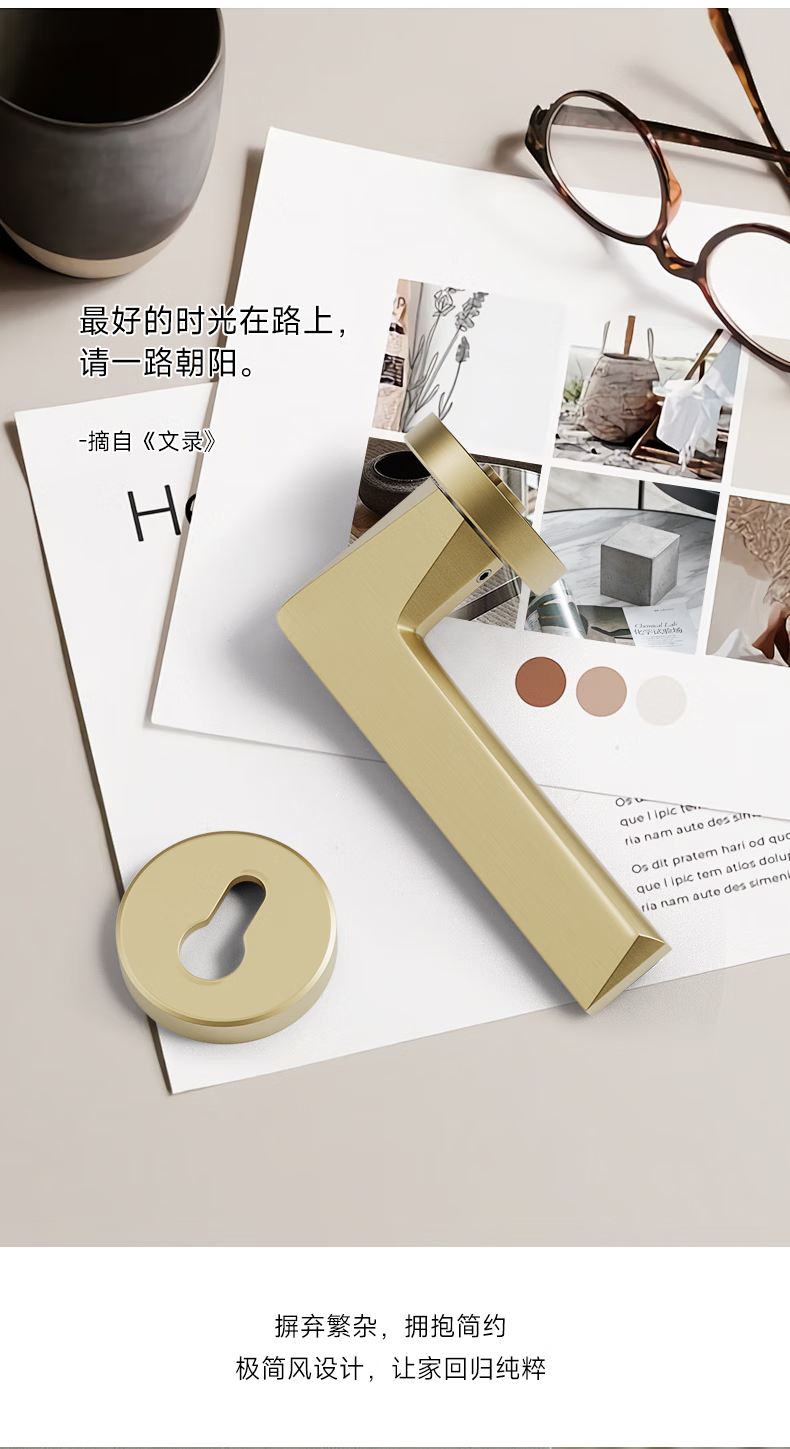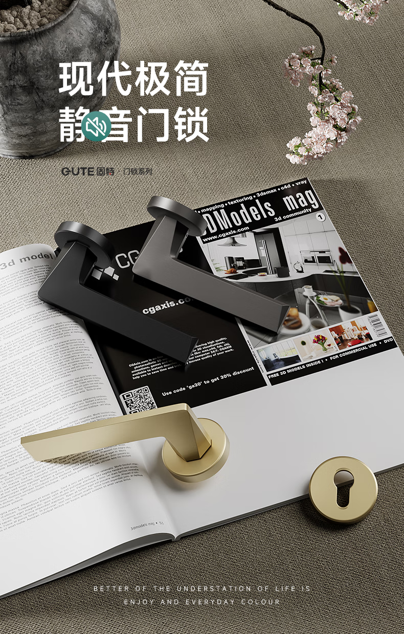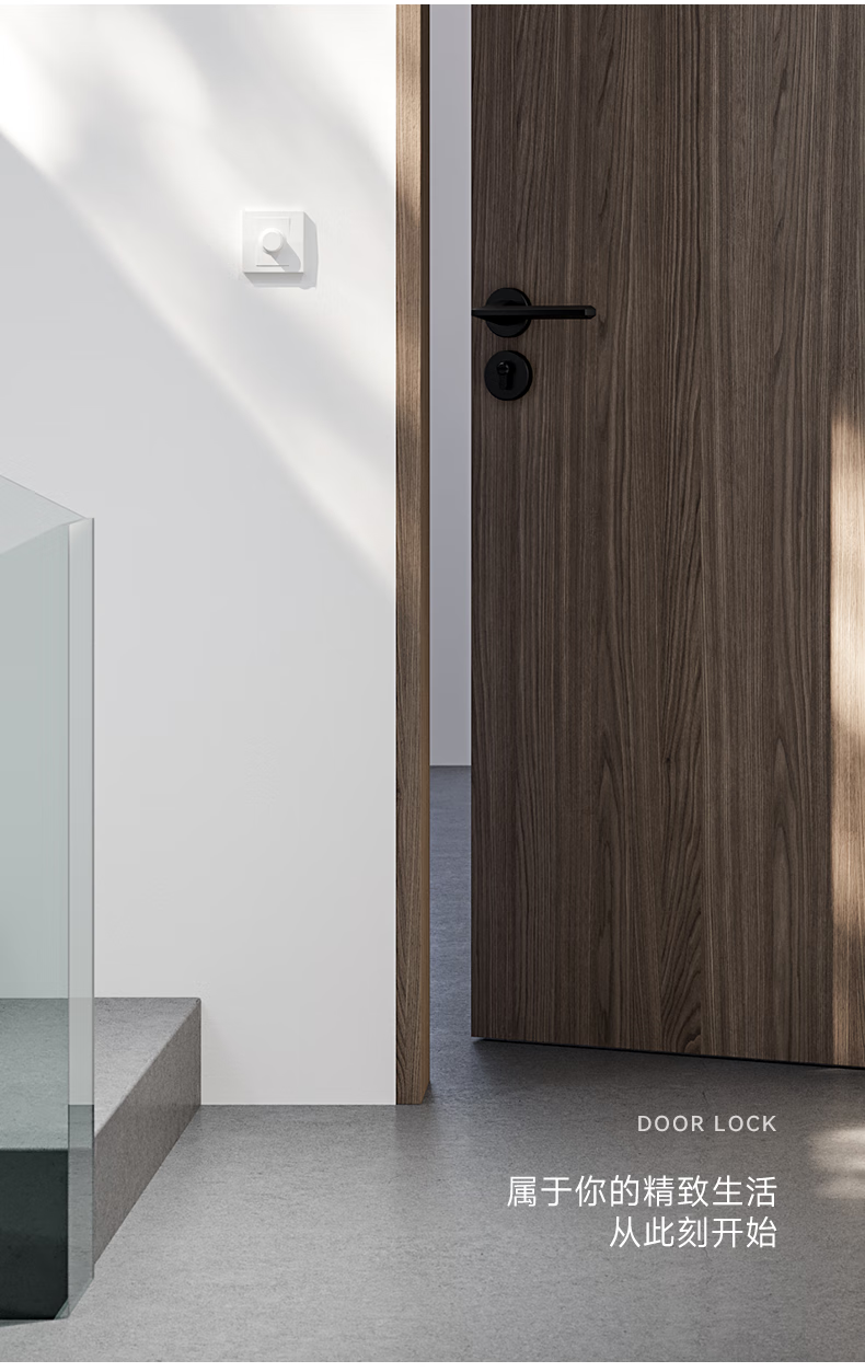 固特室内卧室现代简约执手锁入户门把手静音门锁木门卫生间分体锁具 6805黑色