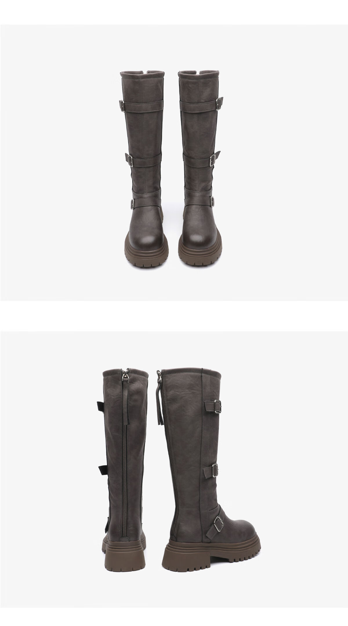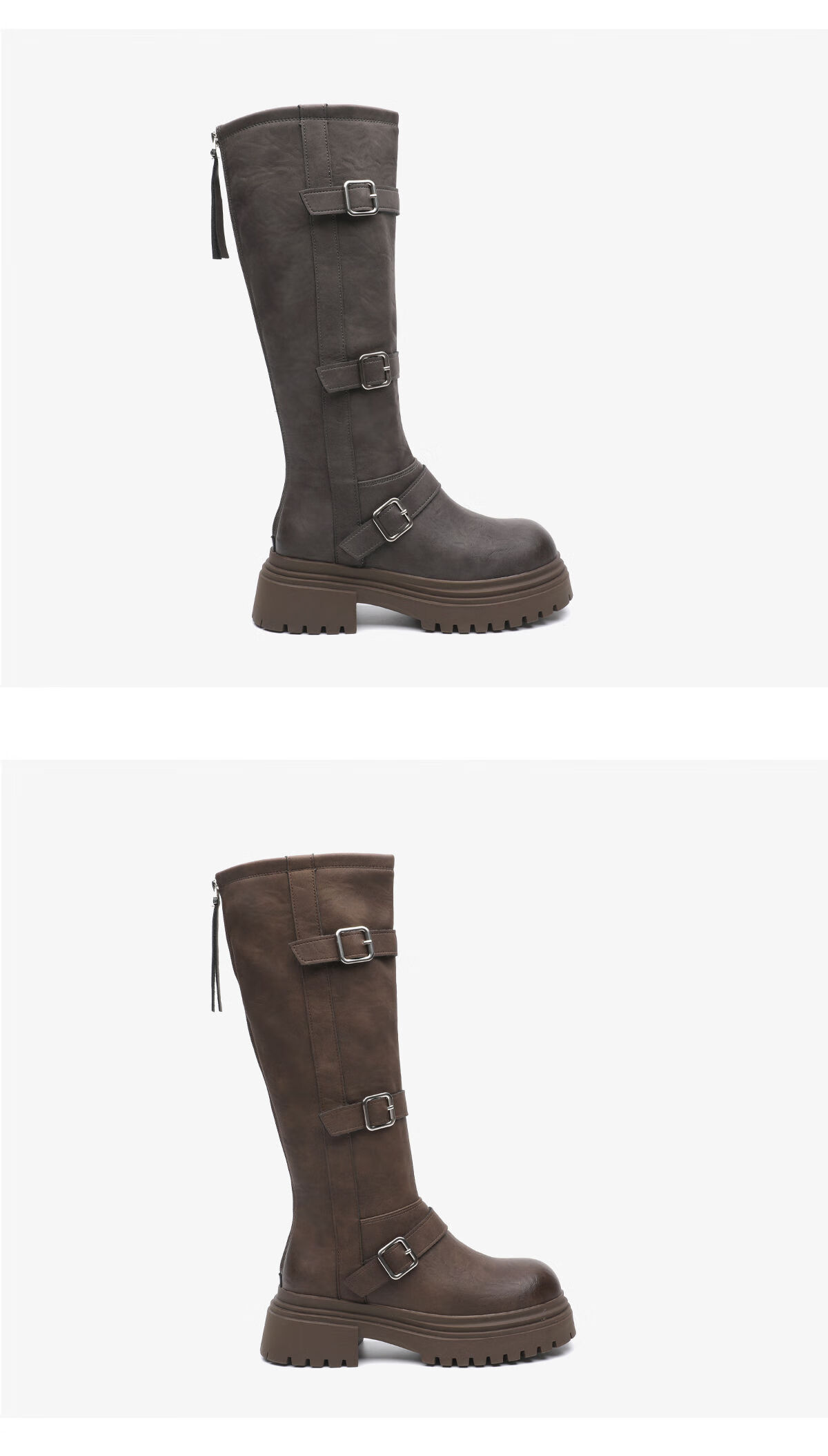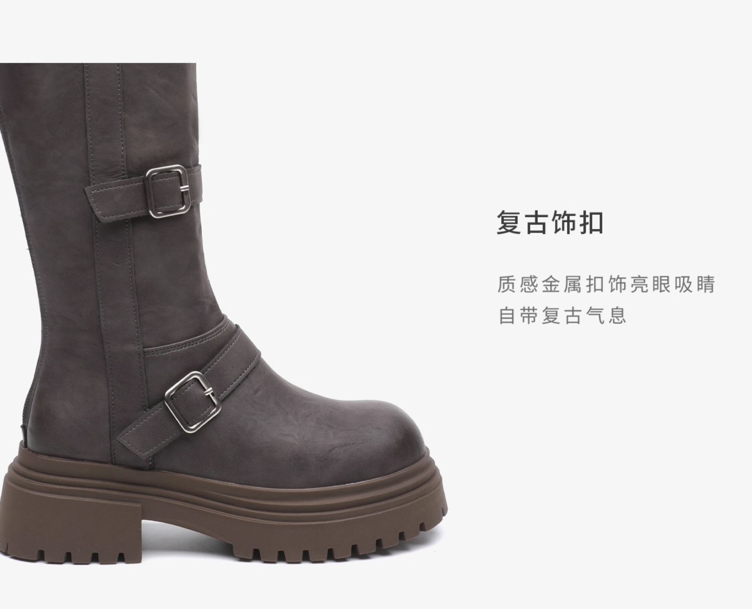 月芽儿长筒靴冬季新款2025复古显瘦靴子皮带扣百搭西部骑士靴 绒里咖啡色20T 38