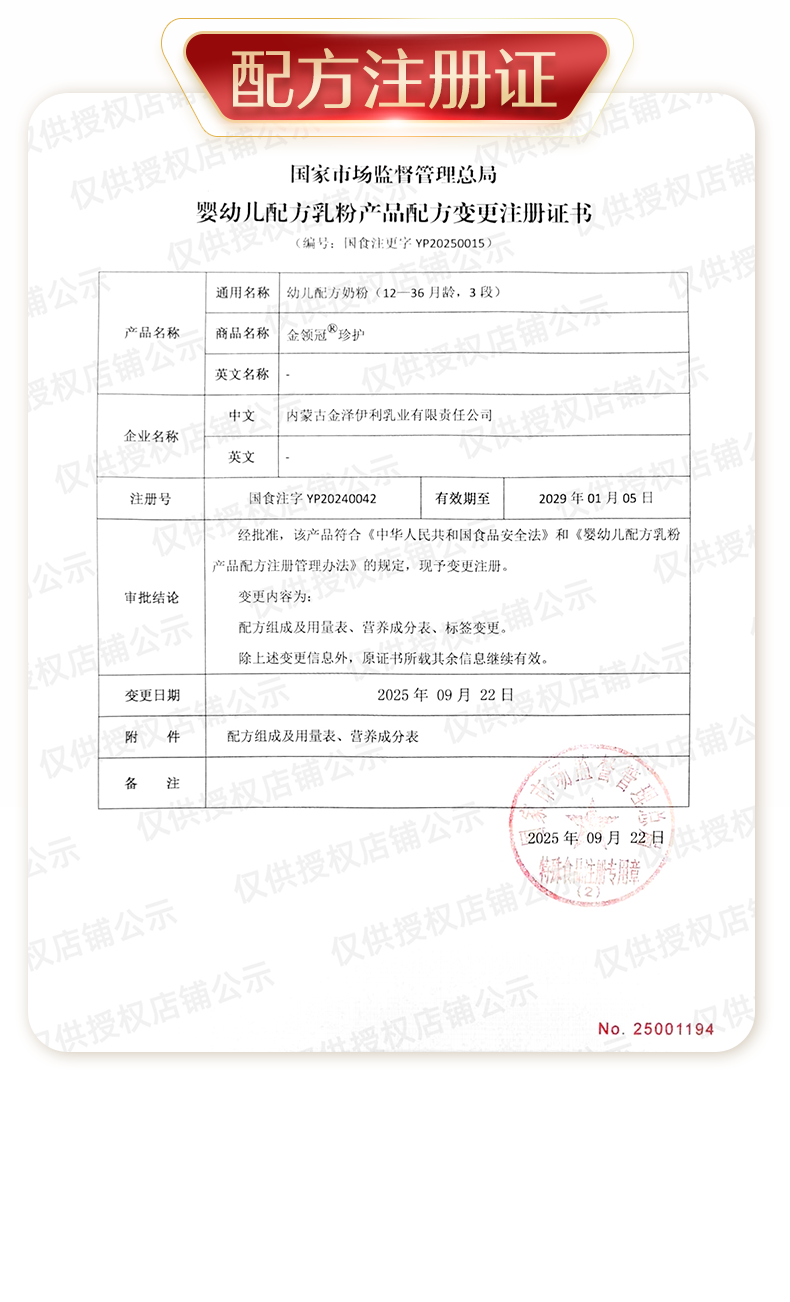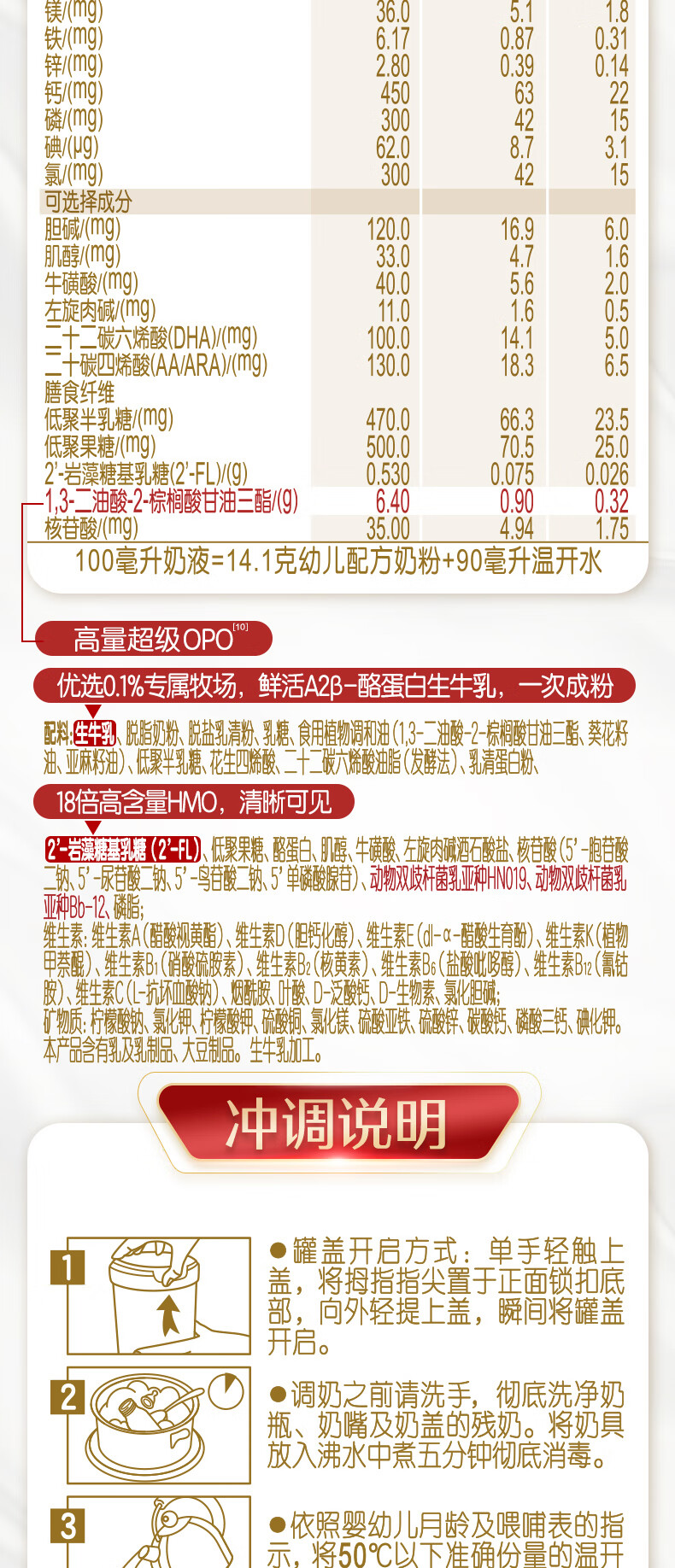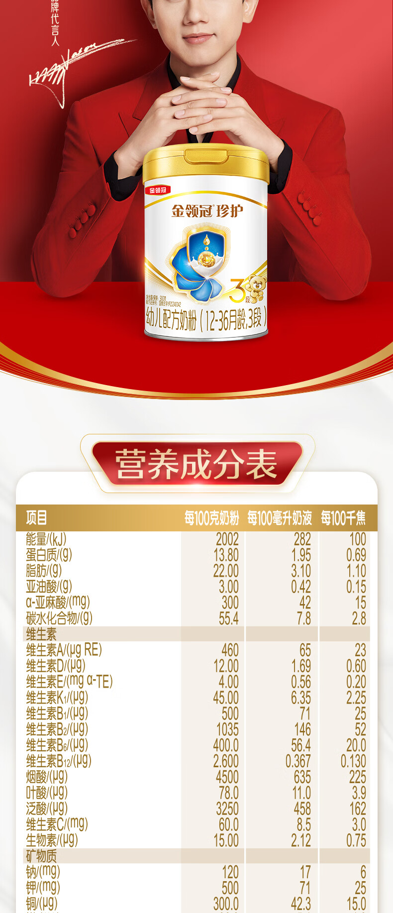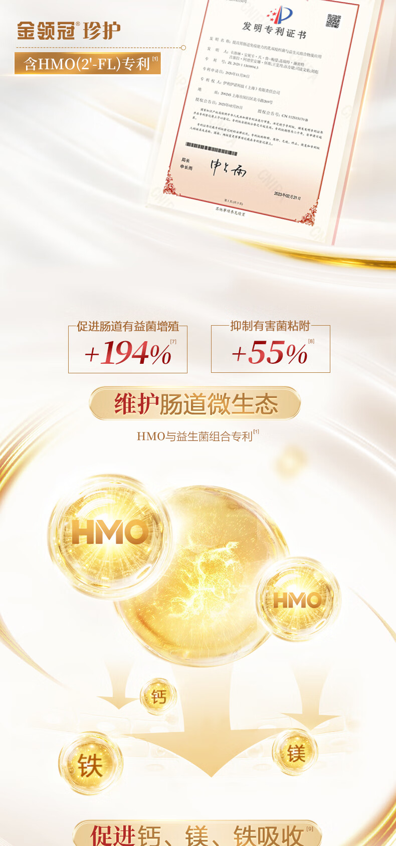 伊利金领冠珍护【三代OPO好吸收】幼儿A2β-酪蛋白奶粉3段(1-3岁)900g