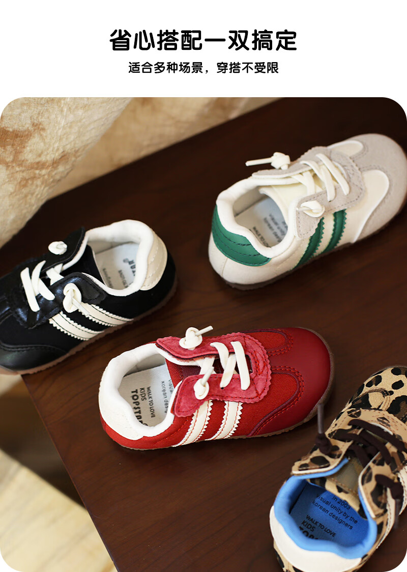 TOPSTAR儿童运动鞋男童轻便透气耐磨阿甘鞋女童休闲鞋一脚蹬室外德训鞋 红色 27 内长16.5cm