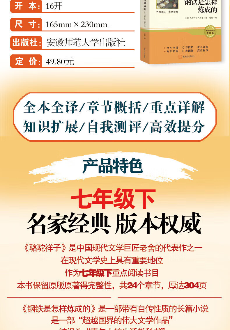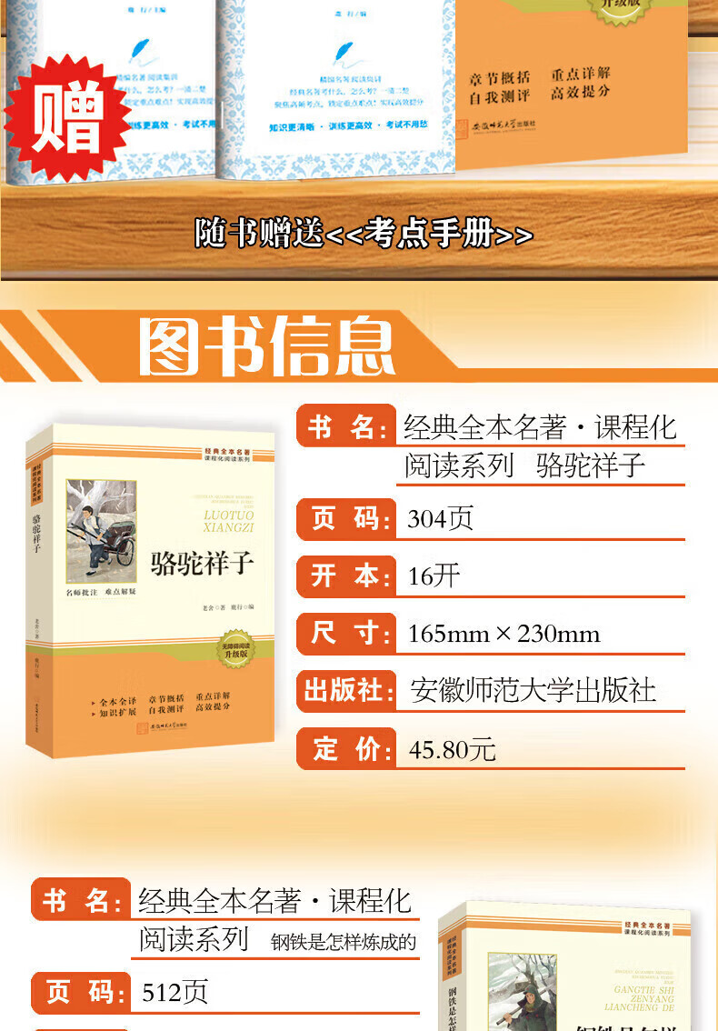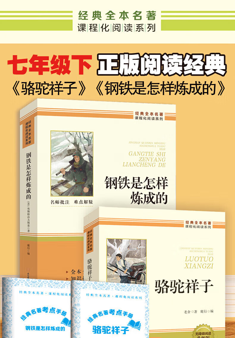 钢铁是怎样炼成的骆驼祥子七年级必读正版原著初中生初一下册必读课外书完整版无删减配套人教版人民教育出版社钢铁是怎样练成的 【配套人教版】骆驼祥子+钢铁 赠配套手册