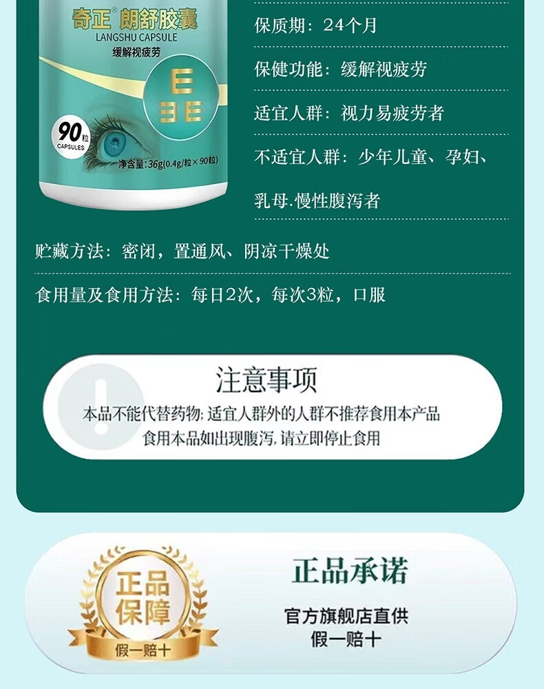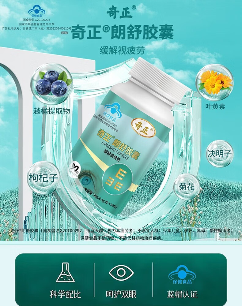 奇正朗舒胶囊越菊叶黄素护眼疲劳舒缓神器缓解视疲劳成人中老年人 4瓶(约60天,巩固调理周期)