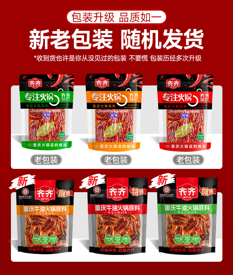 齐;齐齐餐饮重庆特产正宗齐齐重庆牛油手工火锅底料400g商用串串香麻辣烫调料 手工麻辣400g