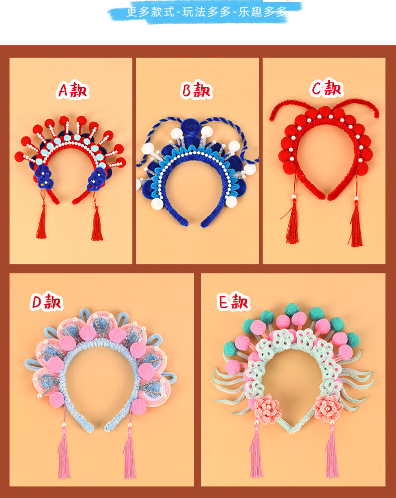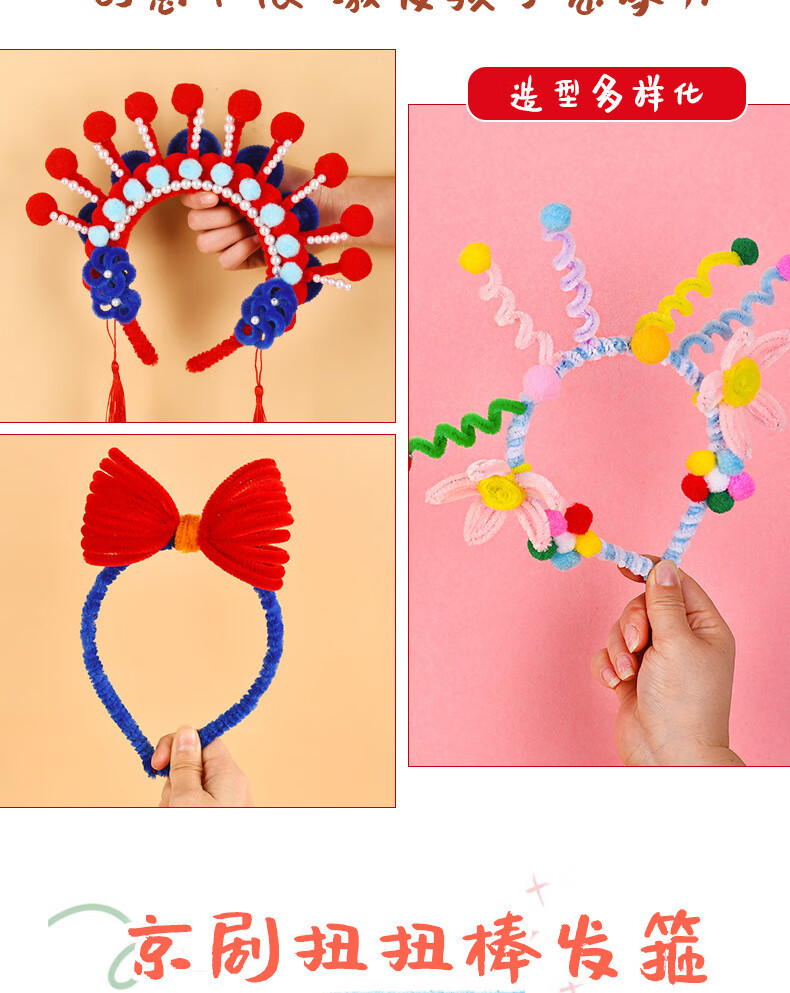 星恒梦春节古风京剧扭扭棒diy京剧发箍儿童戏曲非遗手工材料包团建暖场diy活动头花昆曲发卡 蓝色京剧扭扭棒发箍