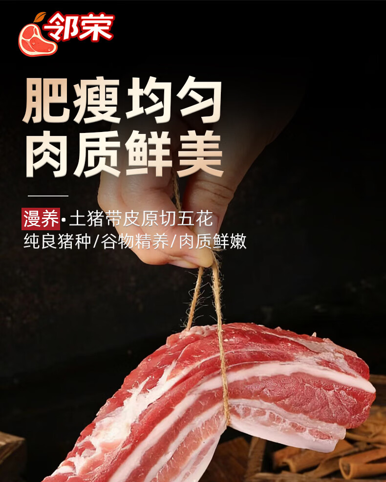 邻荣 8斤原切带皮五花肉中段肥瘦相间新鲜速冻年货正宗猪肉 8斤带皮五花肉