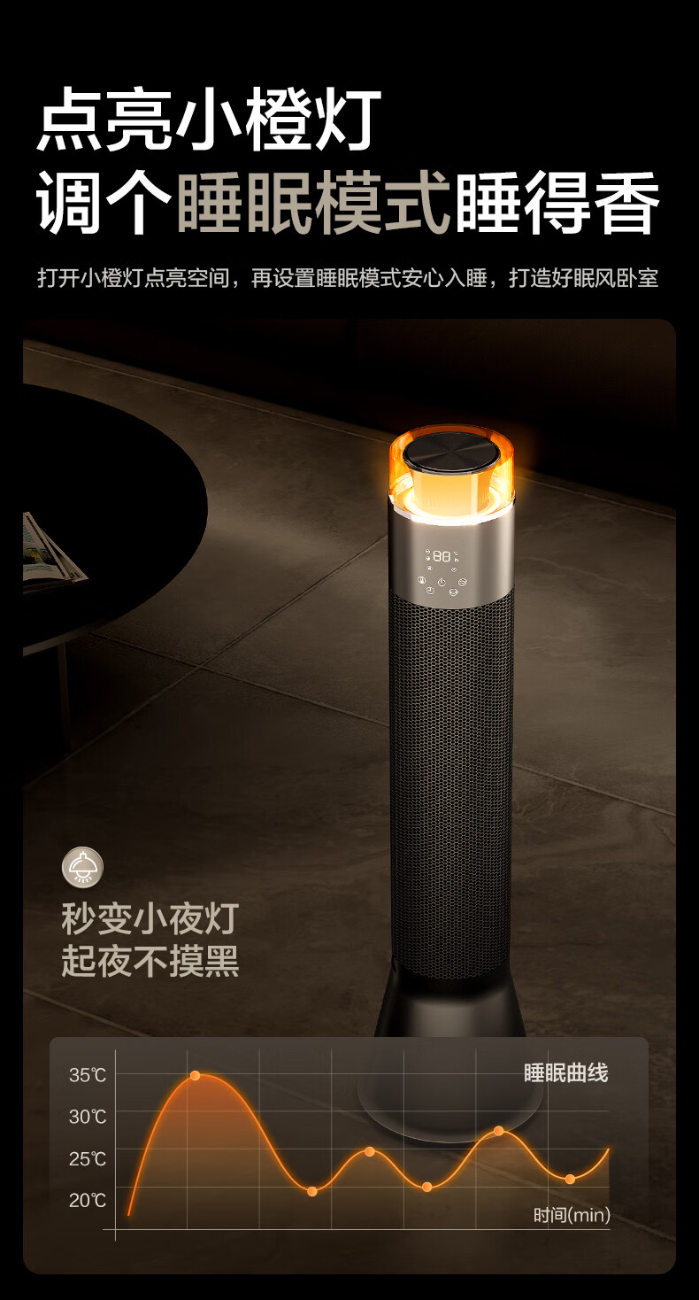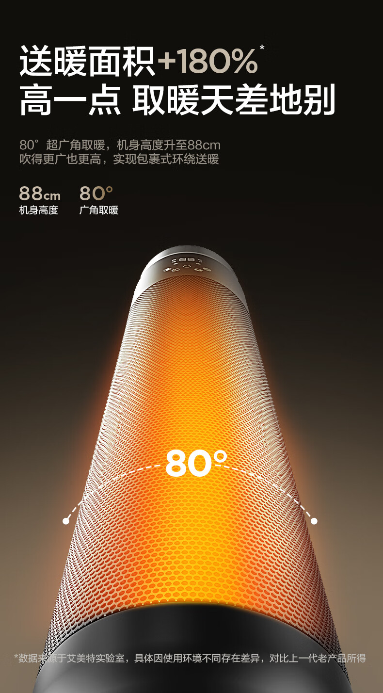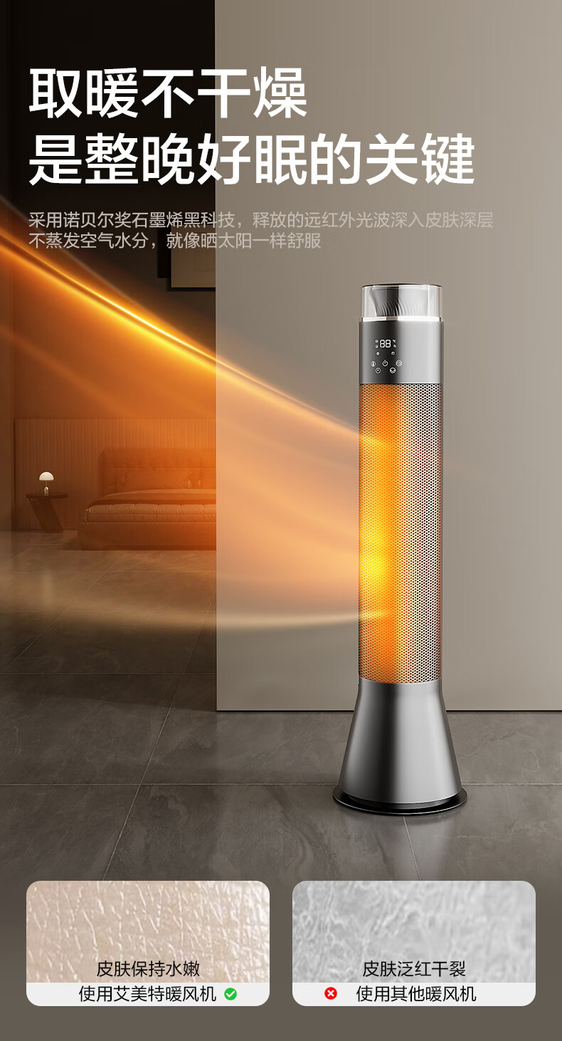 艾美特(AIRMATE)【别墅级取暖】石墨烯暖风机/取暖器/电暖器/电暖气片家用/热风机 88cm语音橙光塔大面积速热