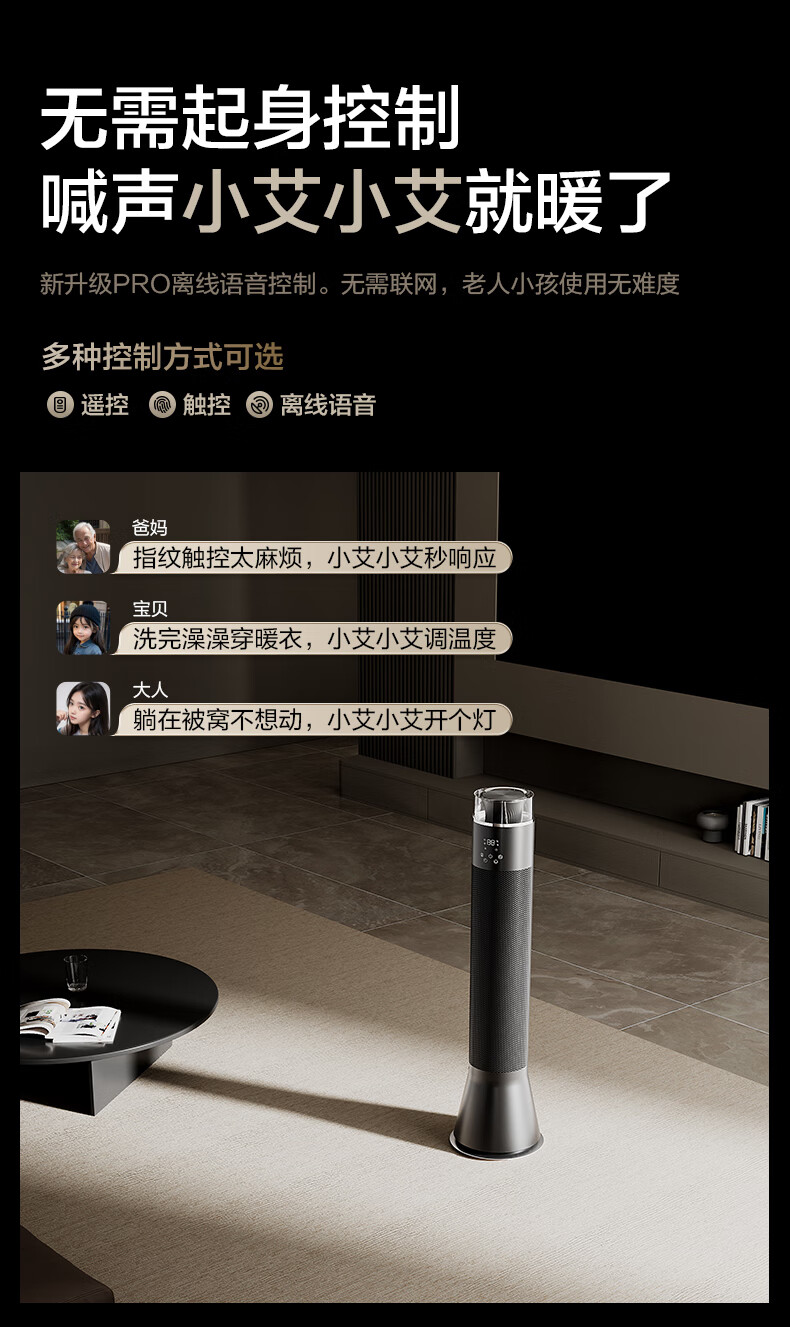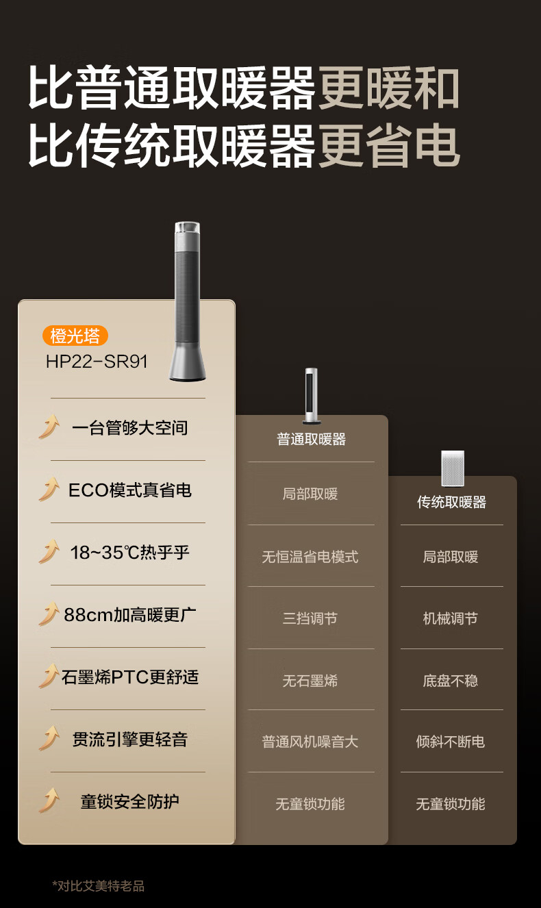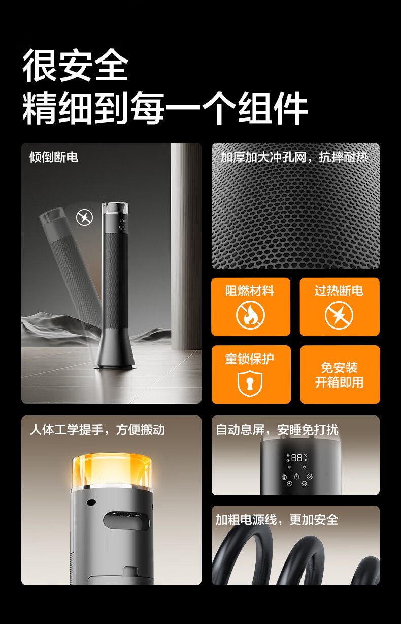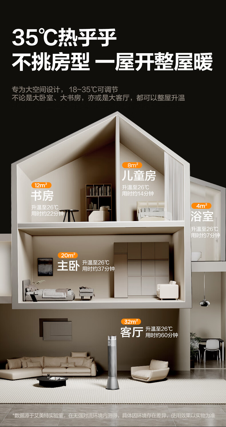 艾美特(AIRMATE)【别墅级取暖】石墨烯暖风机/取暖器/电暖器/电暖气片家用/热风机 88cm语音橙光塔大面积速热