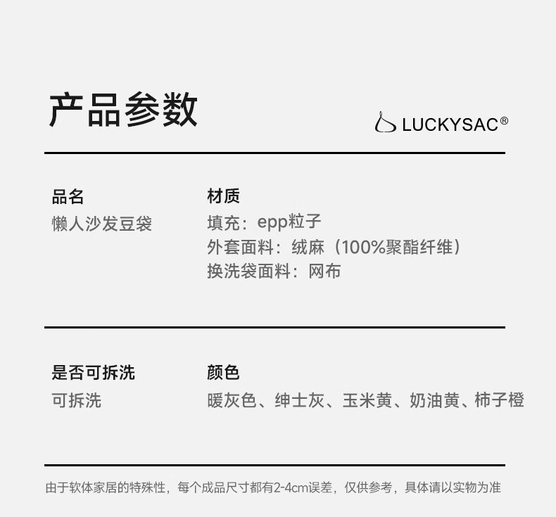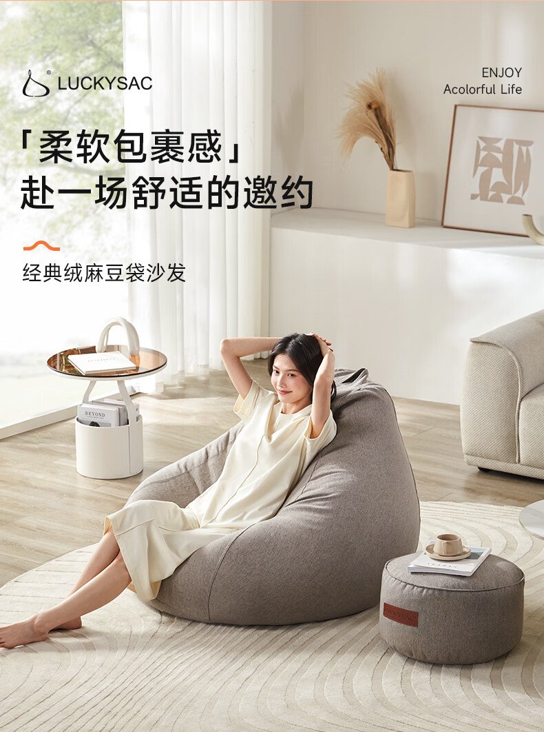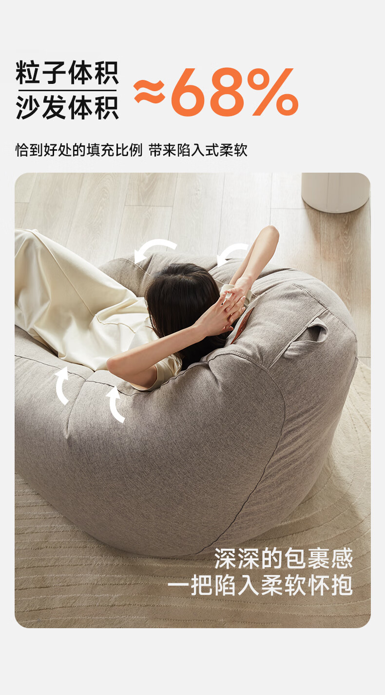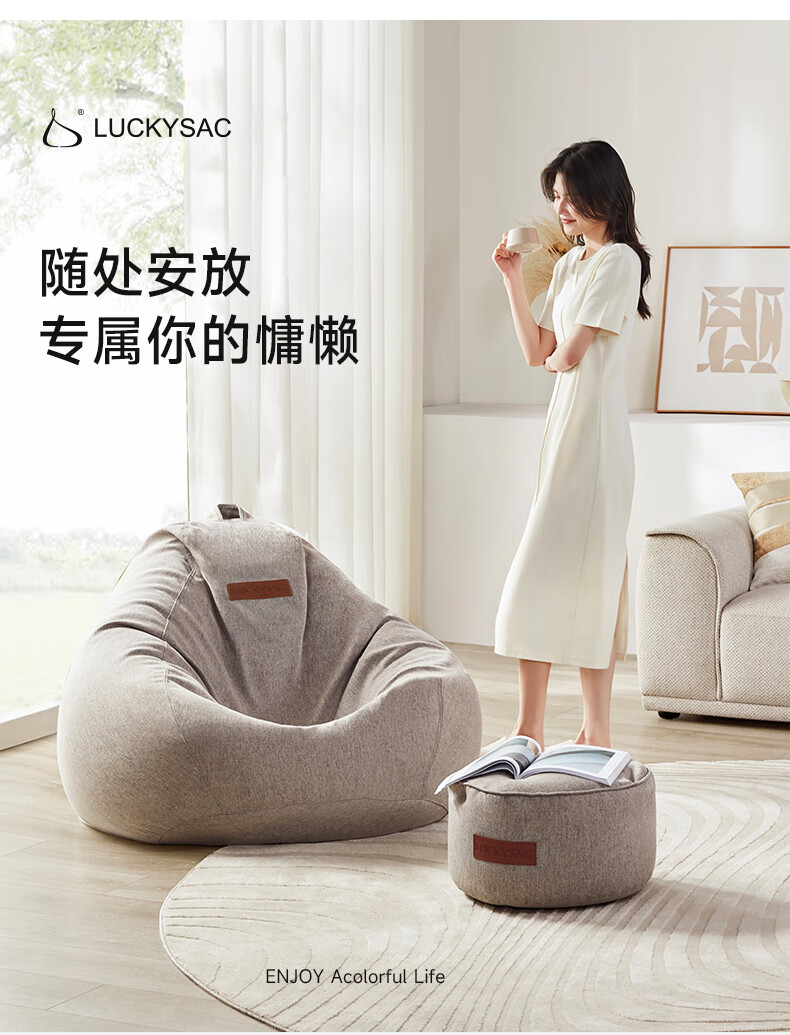 LUCKYSAC懒人沙发豆袋EPP 客厅卧室阳台单人榻米小沙发椅 舒适款暖灰色